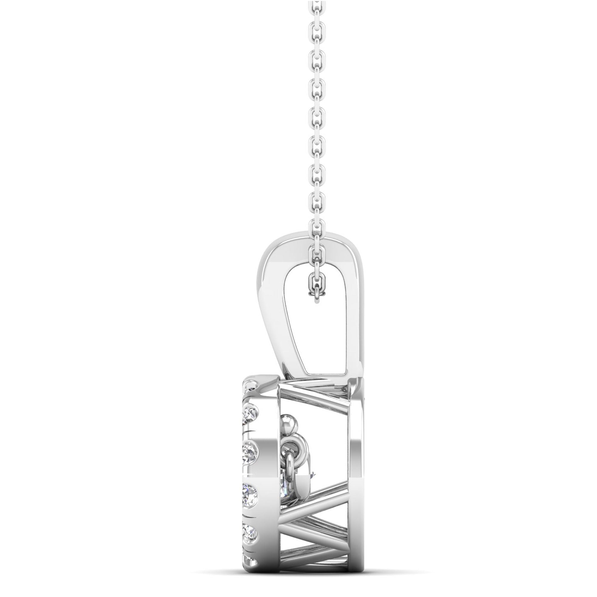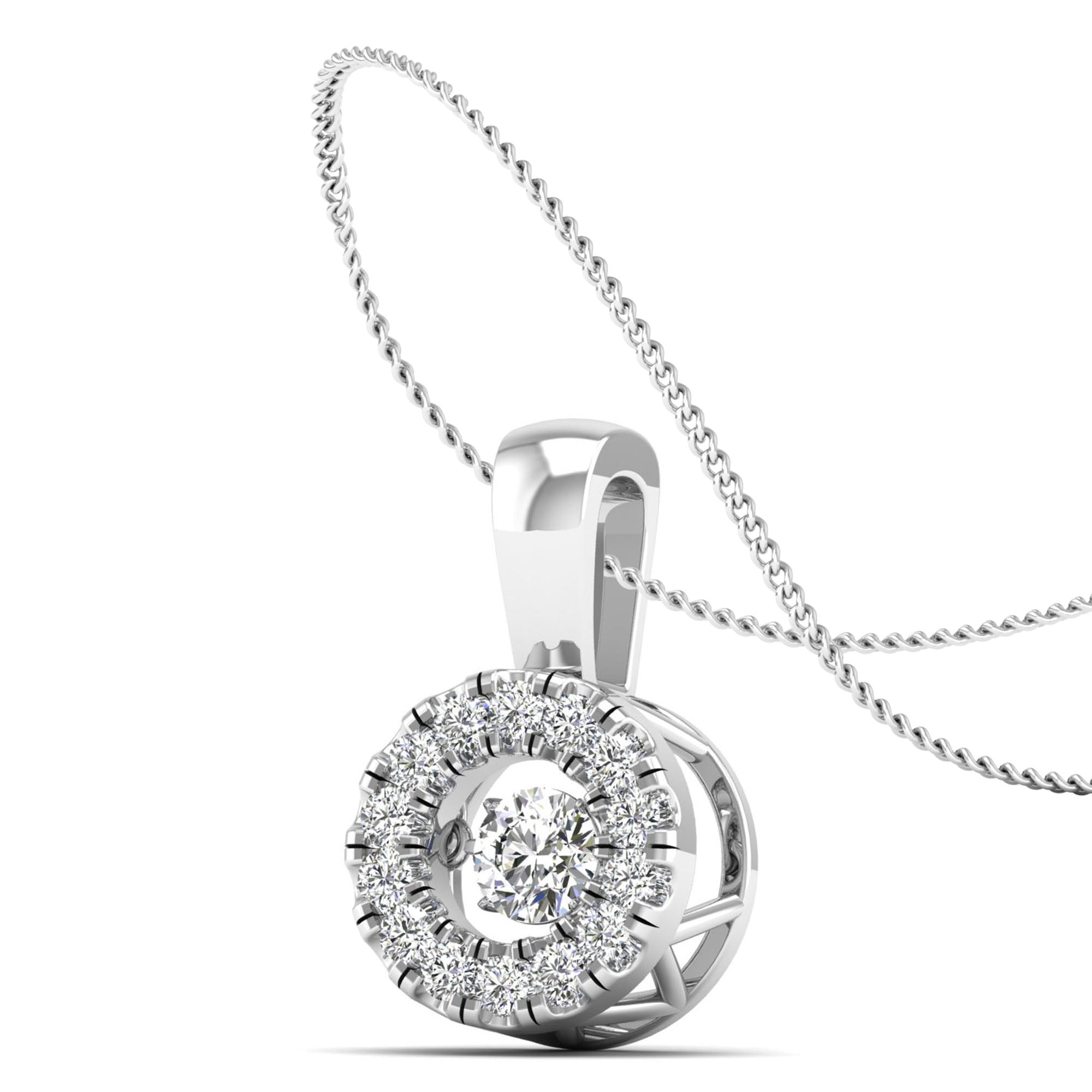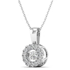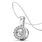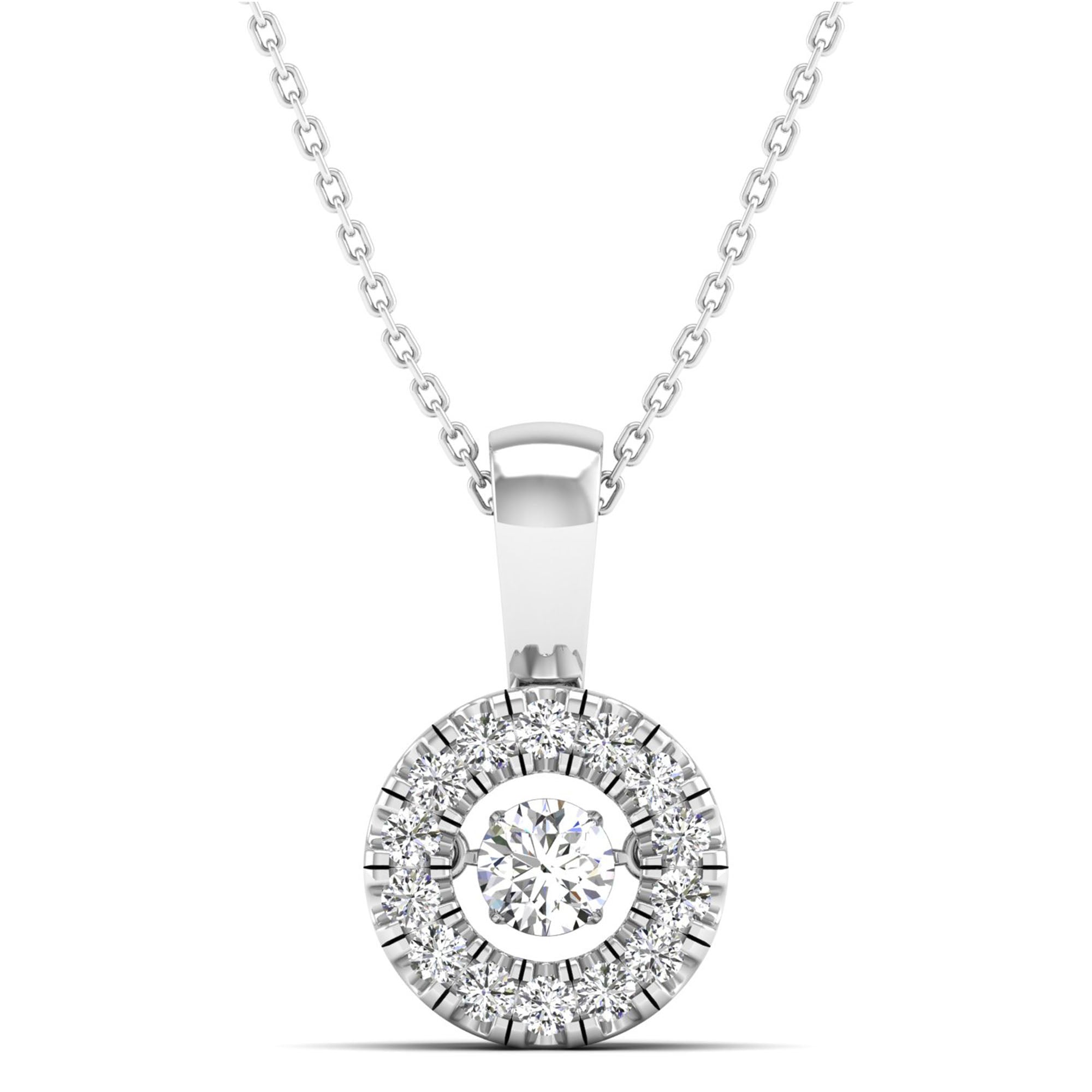 Expertly crafted from 14k white gold, this Halo Solitaire Dancing Diamond Pendant is sure to dazzle and impress. The unique dancing design allows the center diamond to move with every breath, creating a sparkle that will catch anyone's eye.