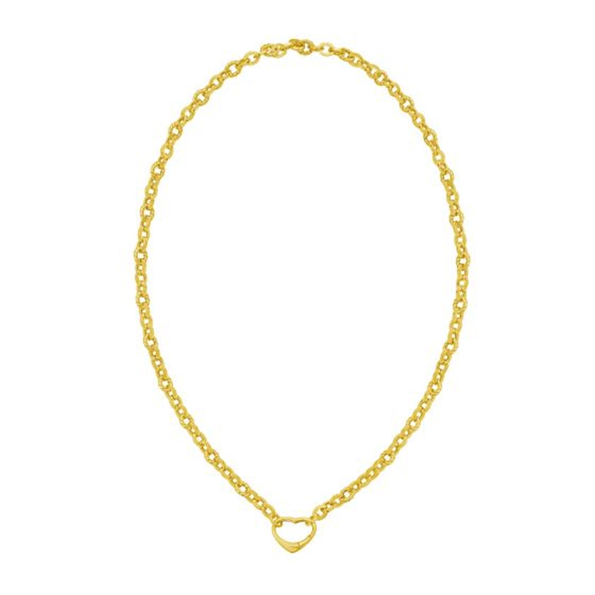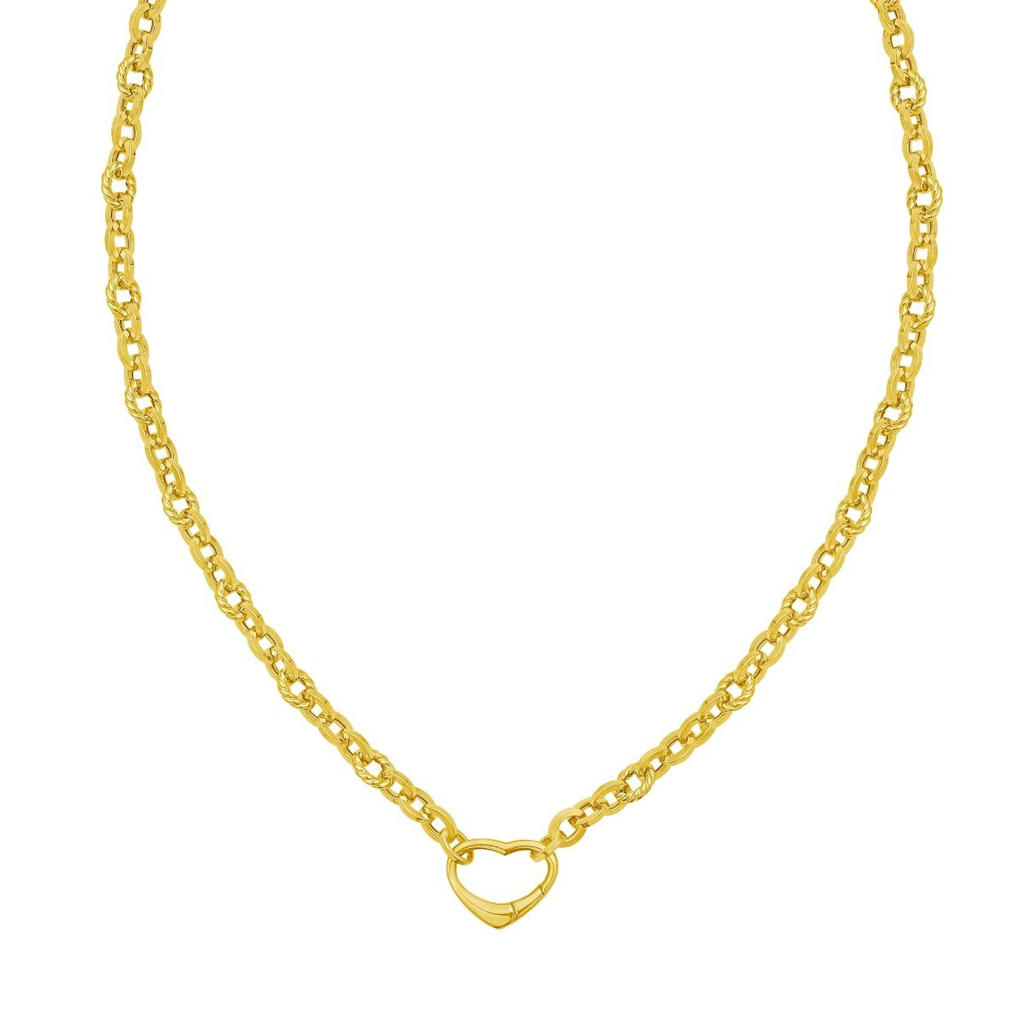 Heart on Alternating Twist + Smooth Link Necklace with Heart Shaped Lobster Clasp