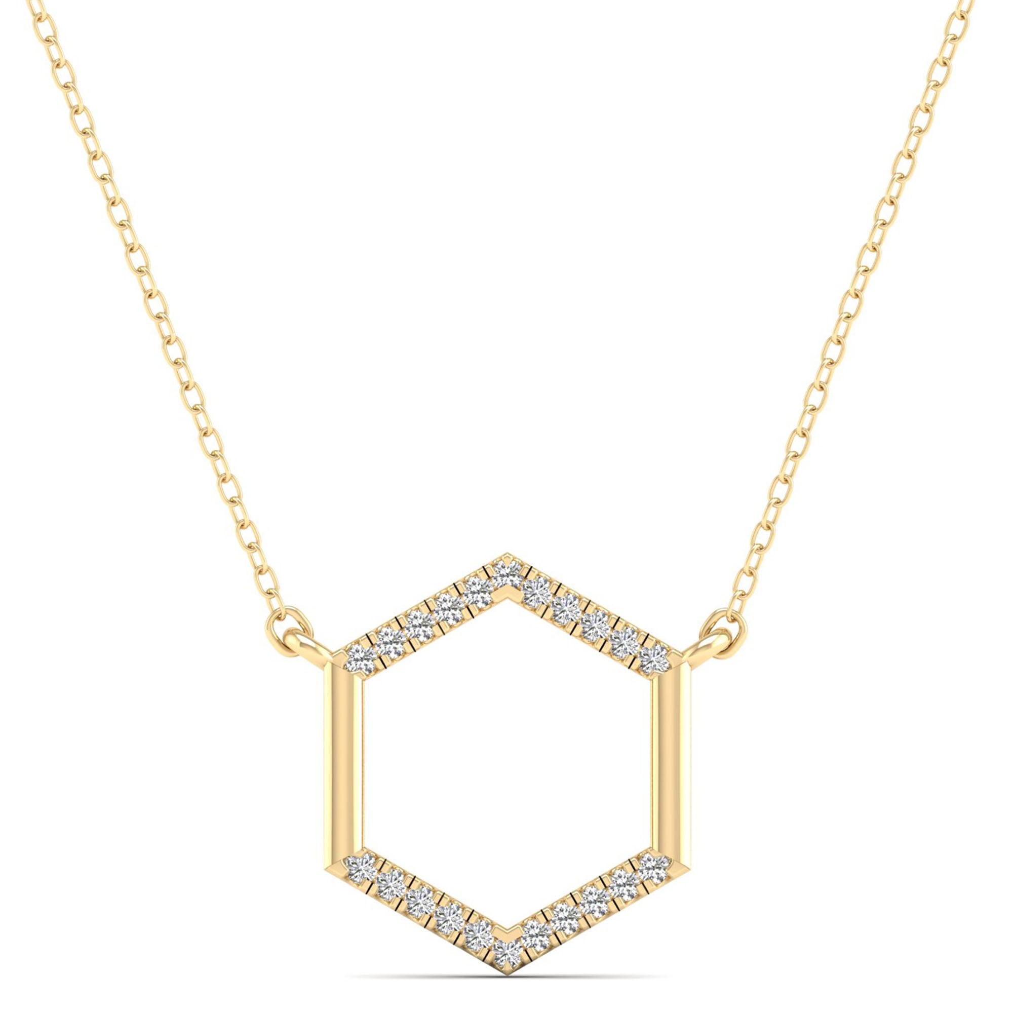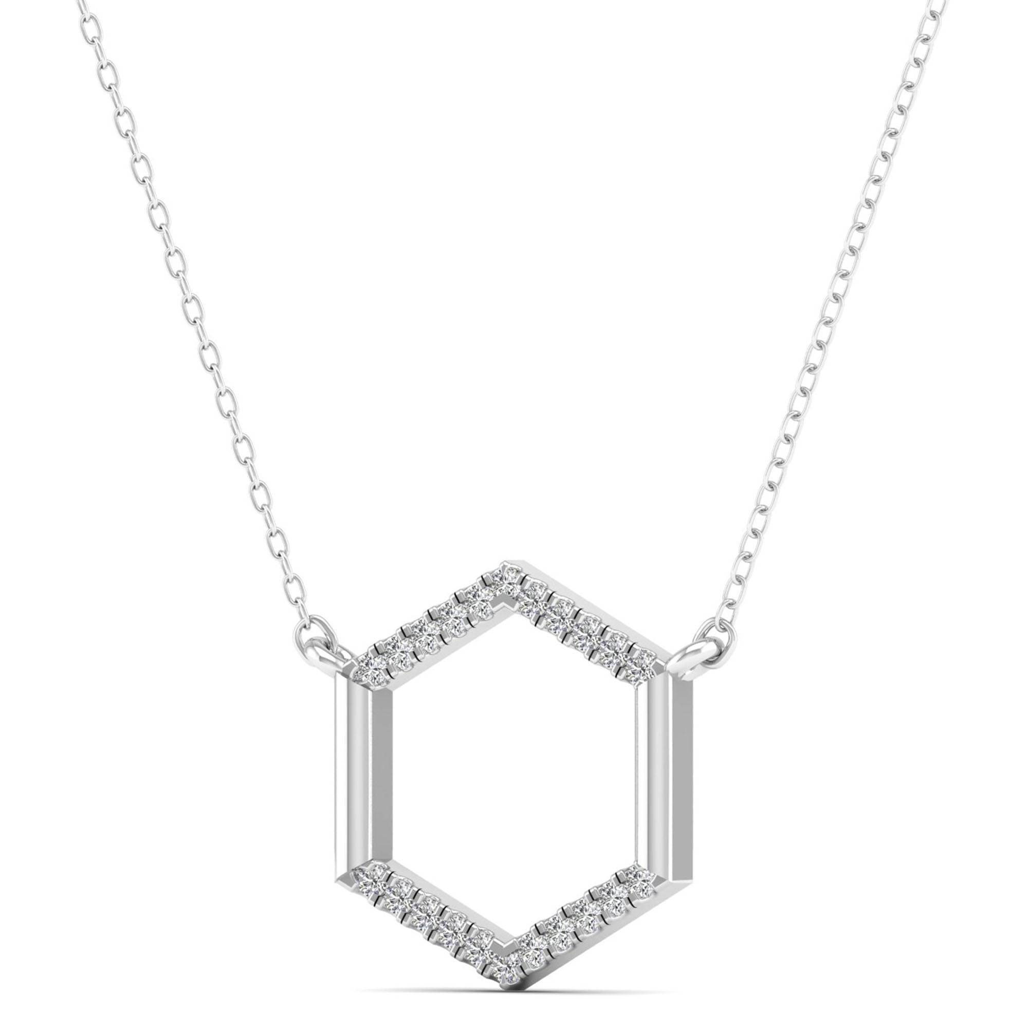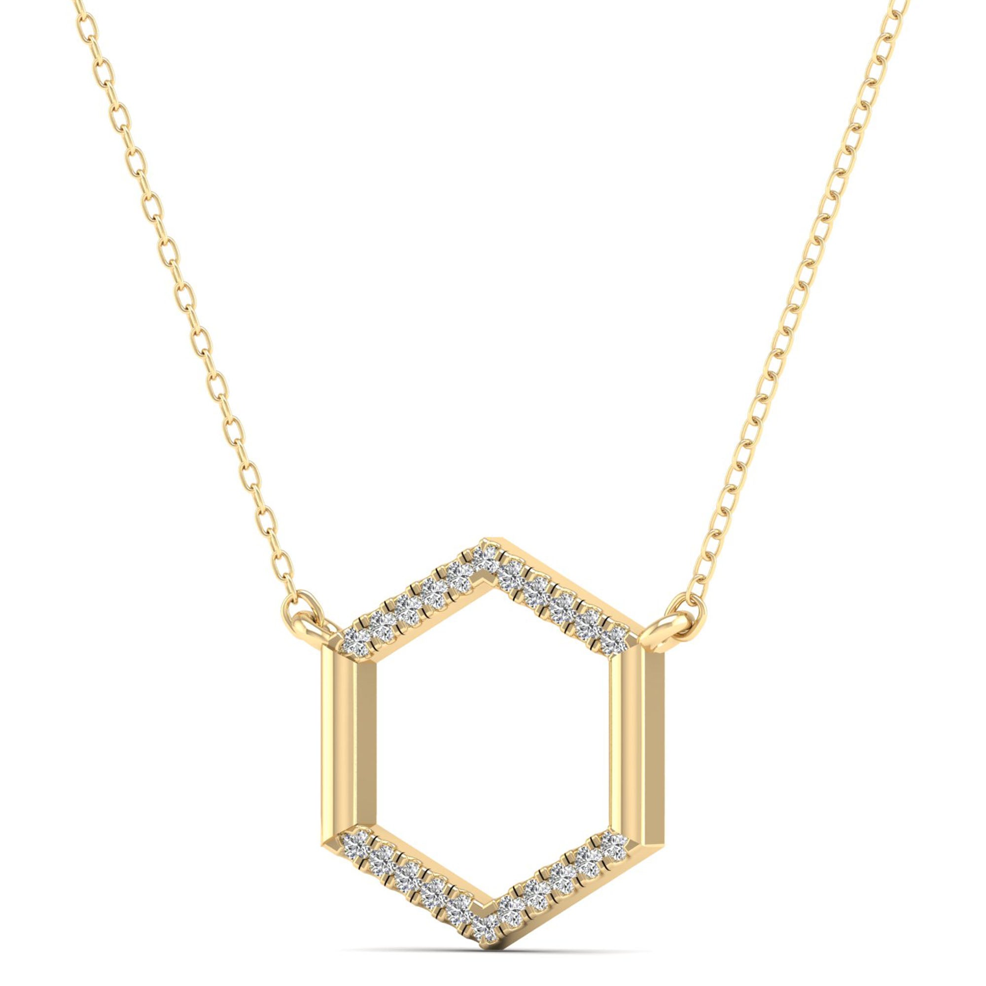 This Hexagon Diamond Necklace boasts a unique and elegant design that will make a statement. With its sparkling diamonds and expertly crafted hexagon shape, this necklace is sure to catch the eye of anyone who sees it.