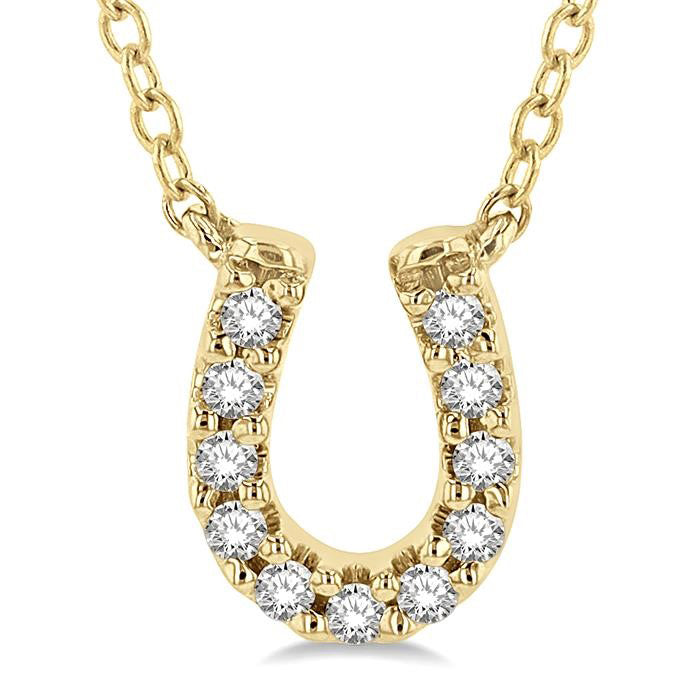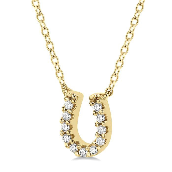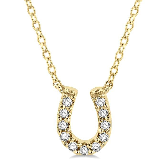 In many cultures around the world, the horseshoe symbolizes good luck and protection. Horseshoe charm jewelry is worn for the very purpose, to bring you luck. This diamond fashion pendant comes from the Petite collection and is one of the many delicate designs in this assemblage, which has been a hot favorite this season. It features a horseshoe shape pendant, with round cut diamonds decorating it. There is a total of 11 prong set round cut diamonds embellishing the pendant face.