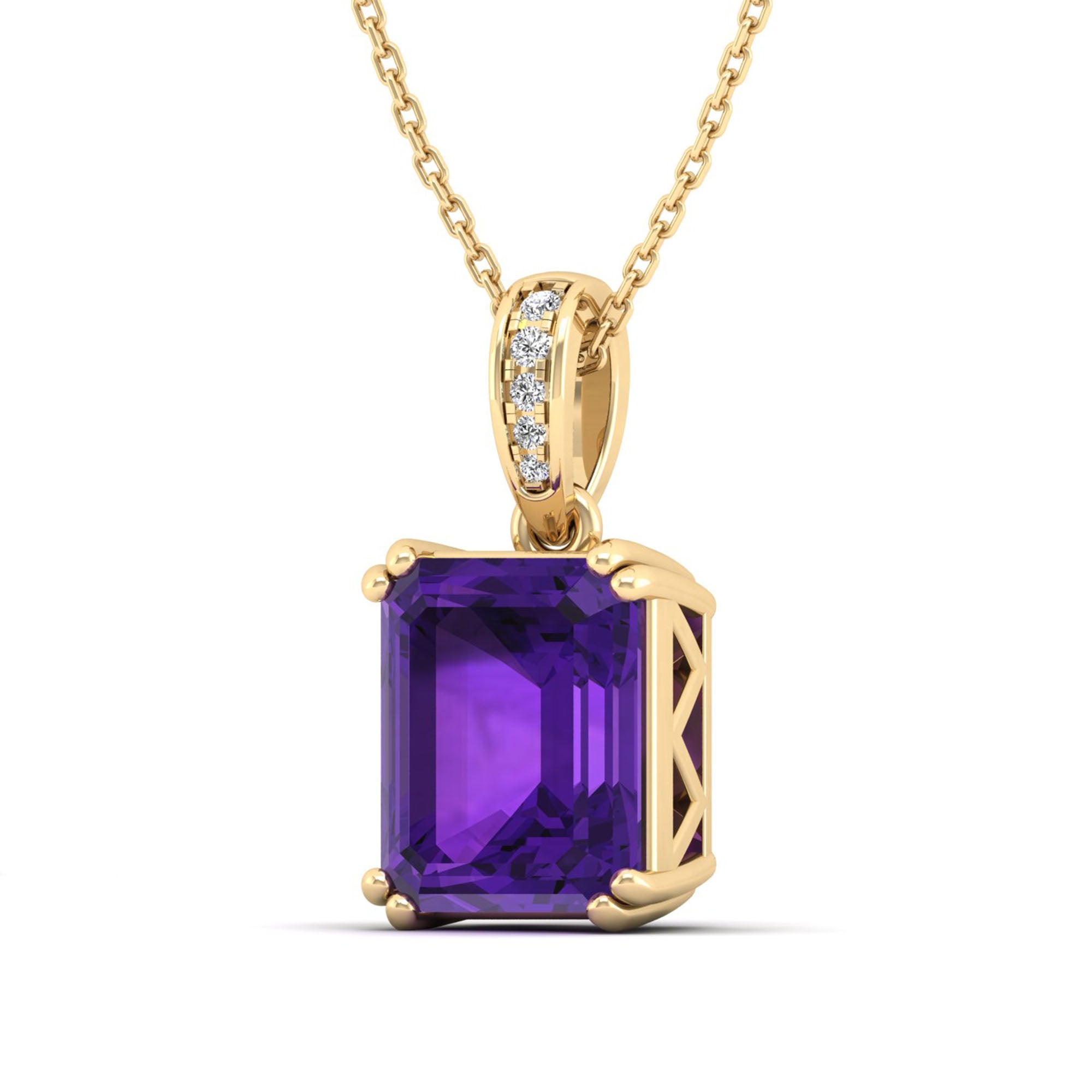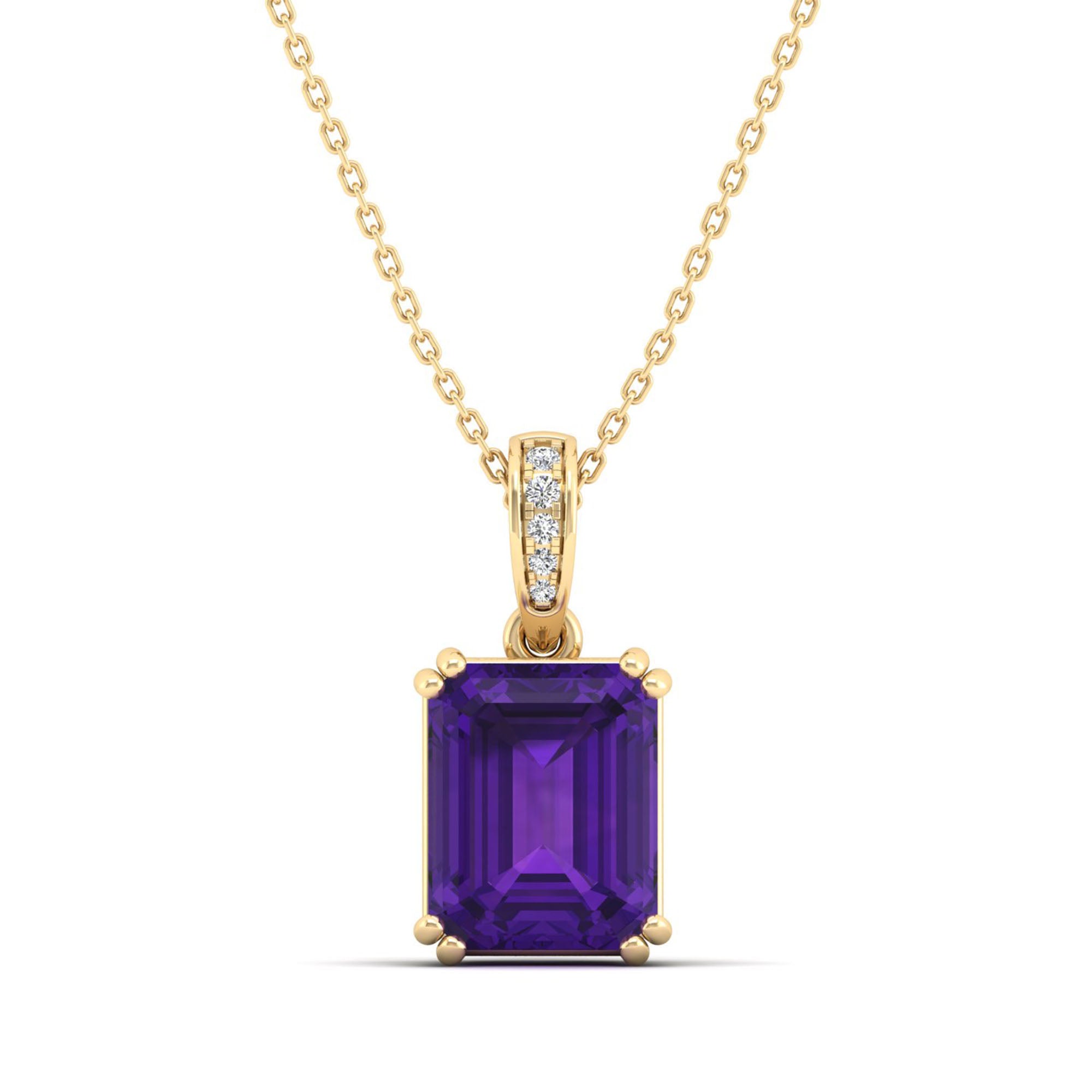 Crafted in radiant gold, this exquisite pendant showcases a stunning 3 carat amethyst, accented with delicate diamonds. A masterpiece that captures the allure of purple hues and the brilliance of diamonds, perfect for adding a touch of elegance to any ensemble.