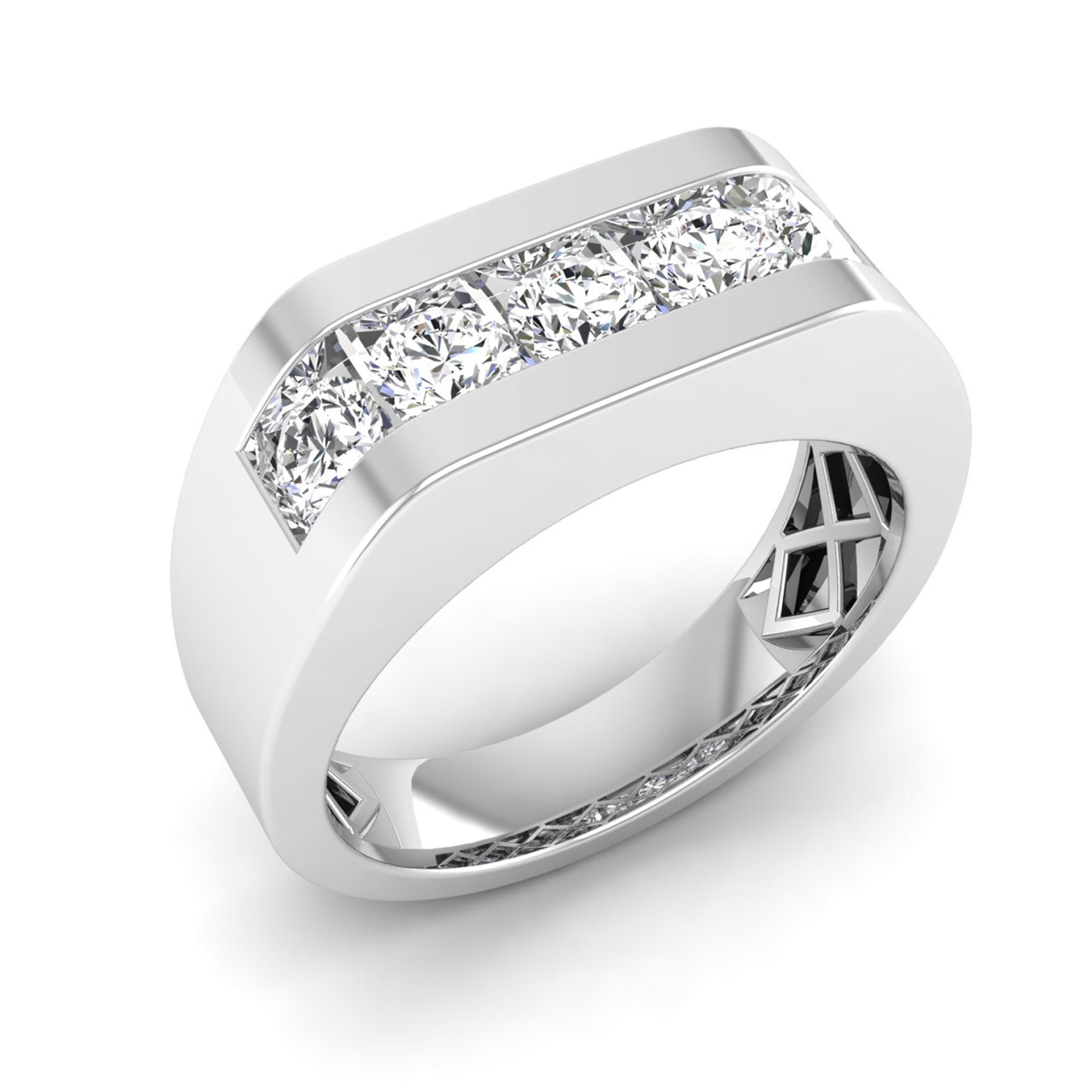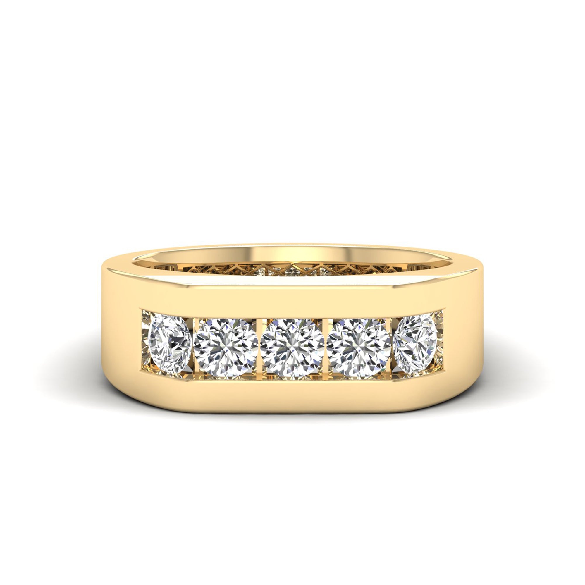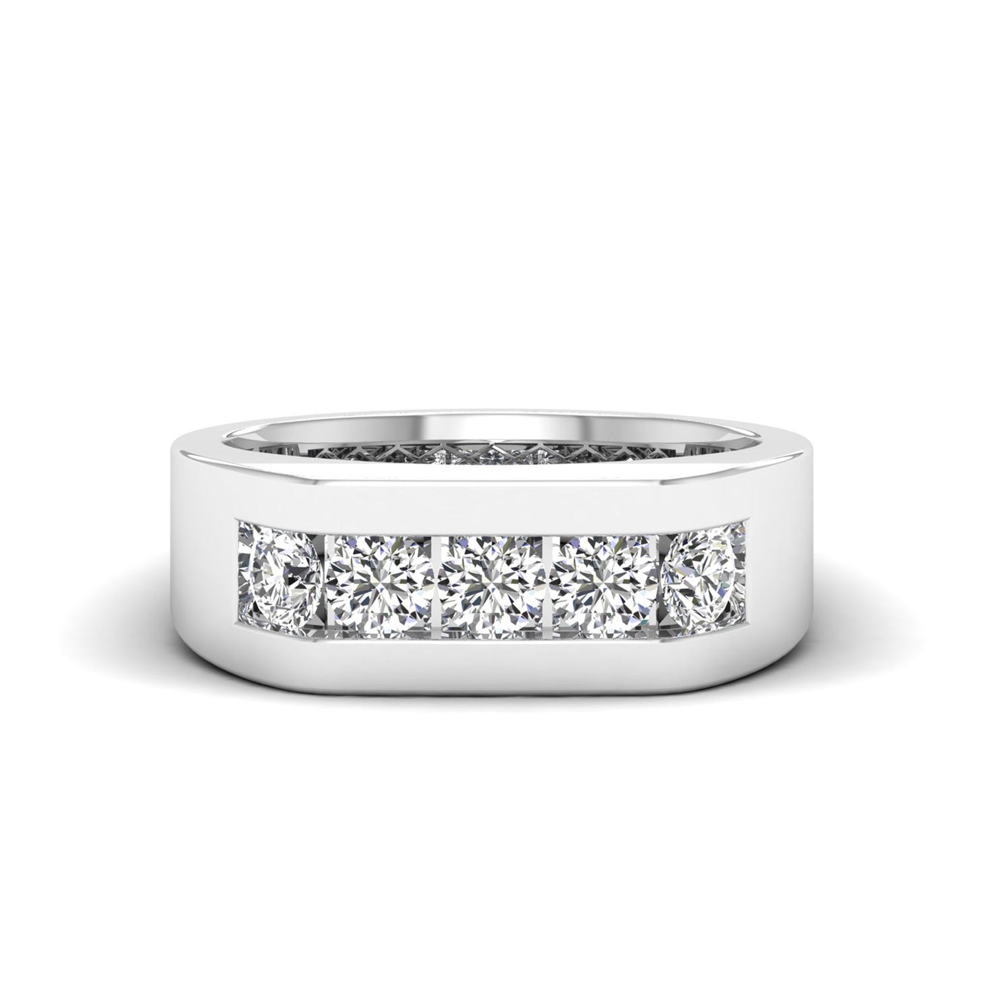 This Men's Five Stone Channel Set Diamond Ring demonstrates superior engineering with five precisely calibrated diamonds secured within a meticulously crafted channel setting.