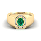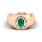 Men's Oval Emerald Bezel-Set Halo Diamond Ring