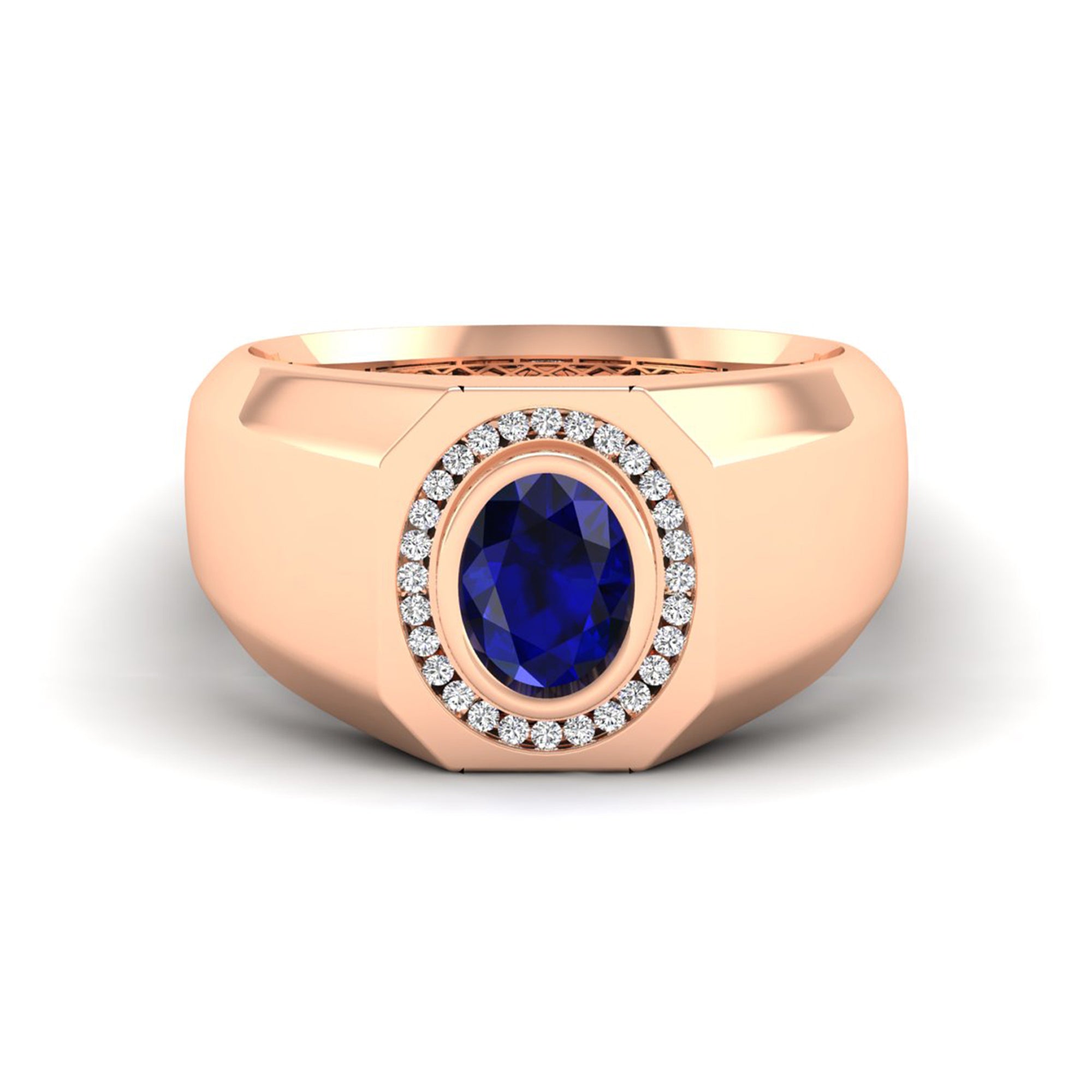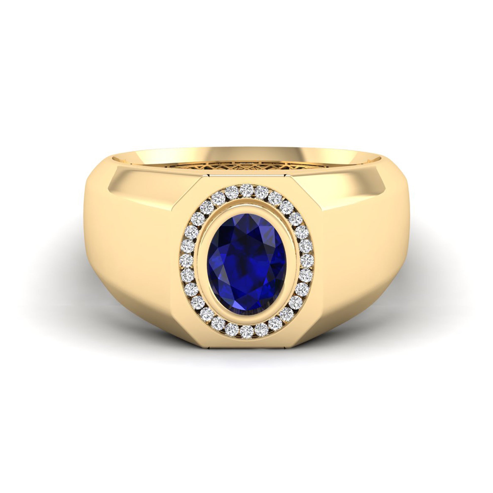 Men's Oval Sapphire Bezel-Set Halo Diamond Ring