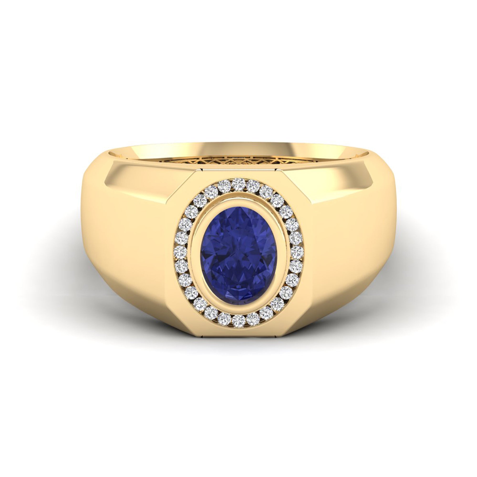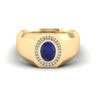 Men's Oval Tanzanite Bezel-Set Halo Diamond Ring