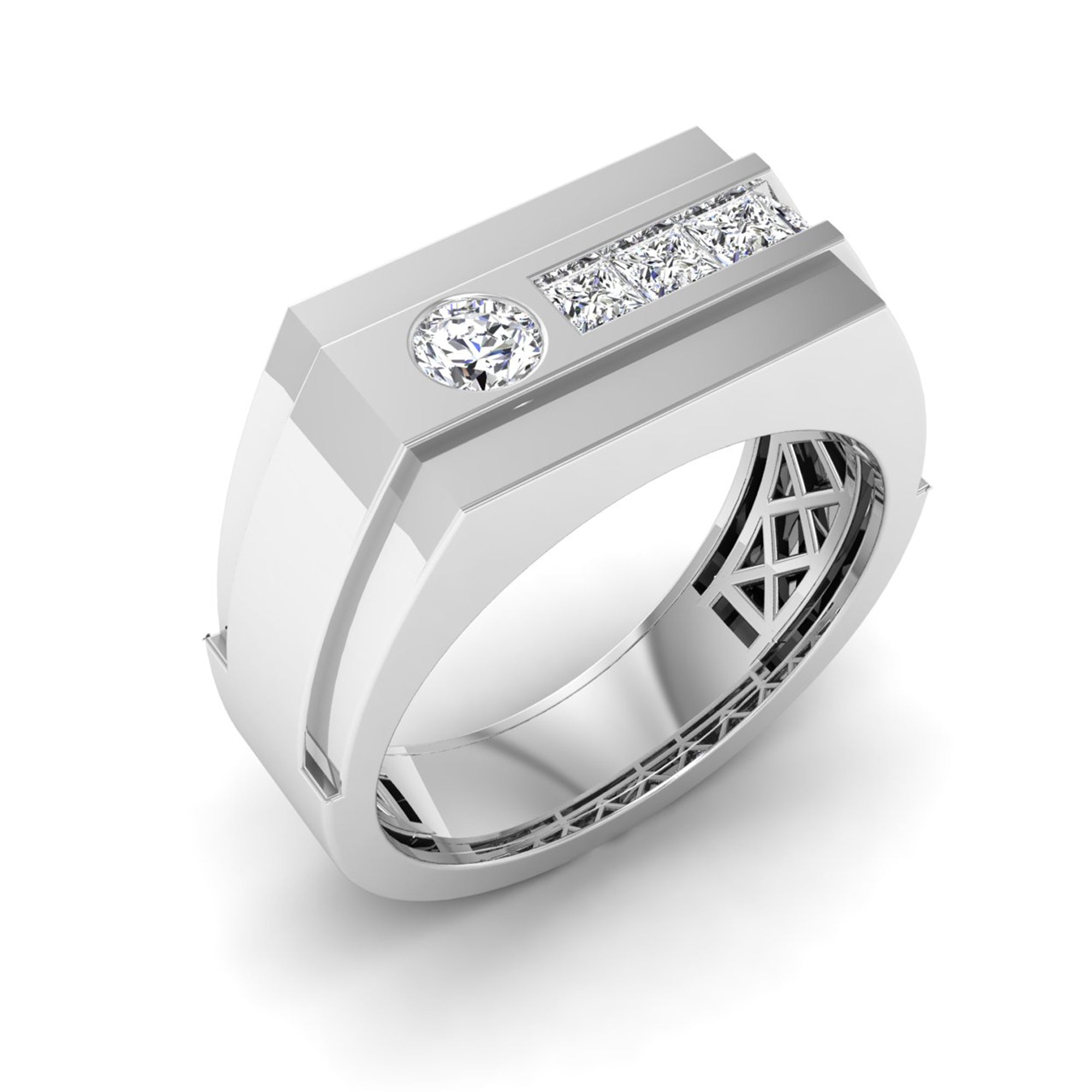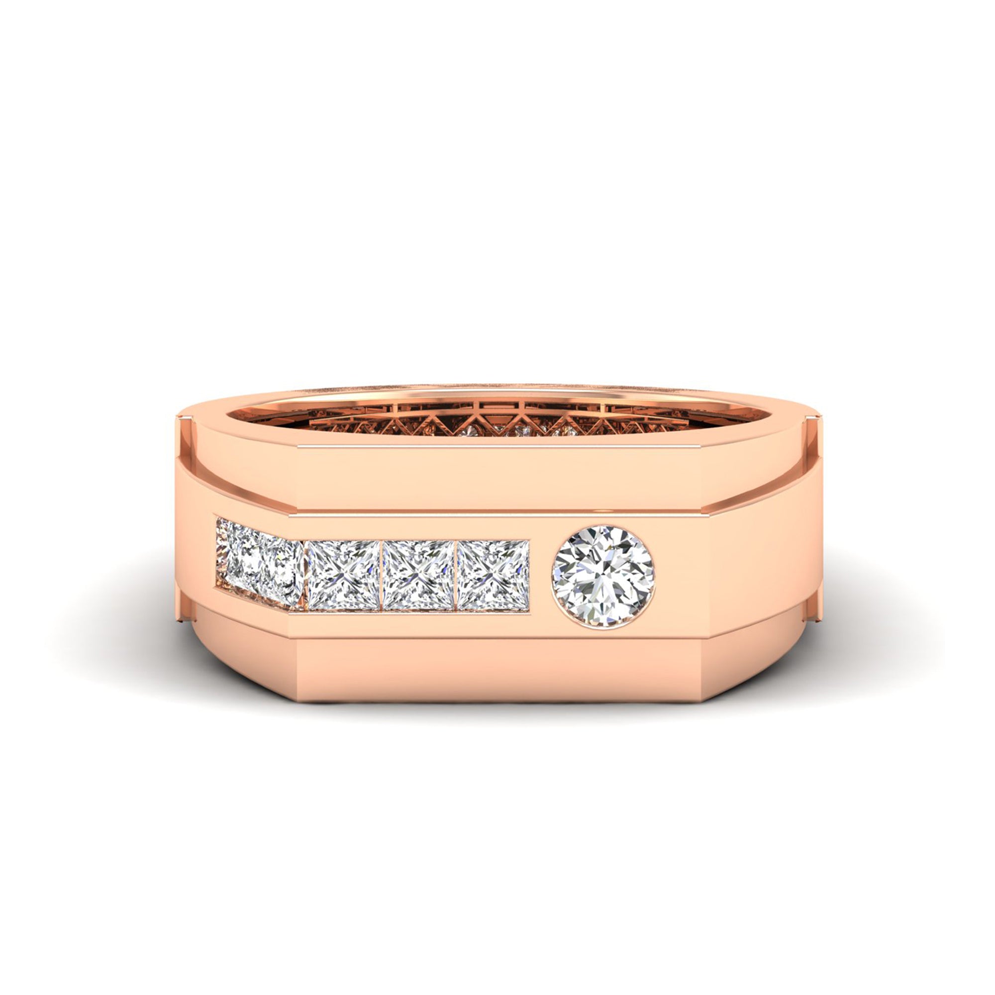 Men's Princess Cut Bezel Set Round and Diamond Ring