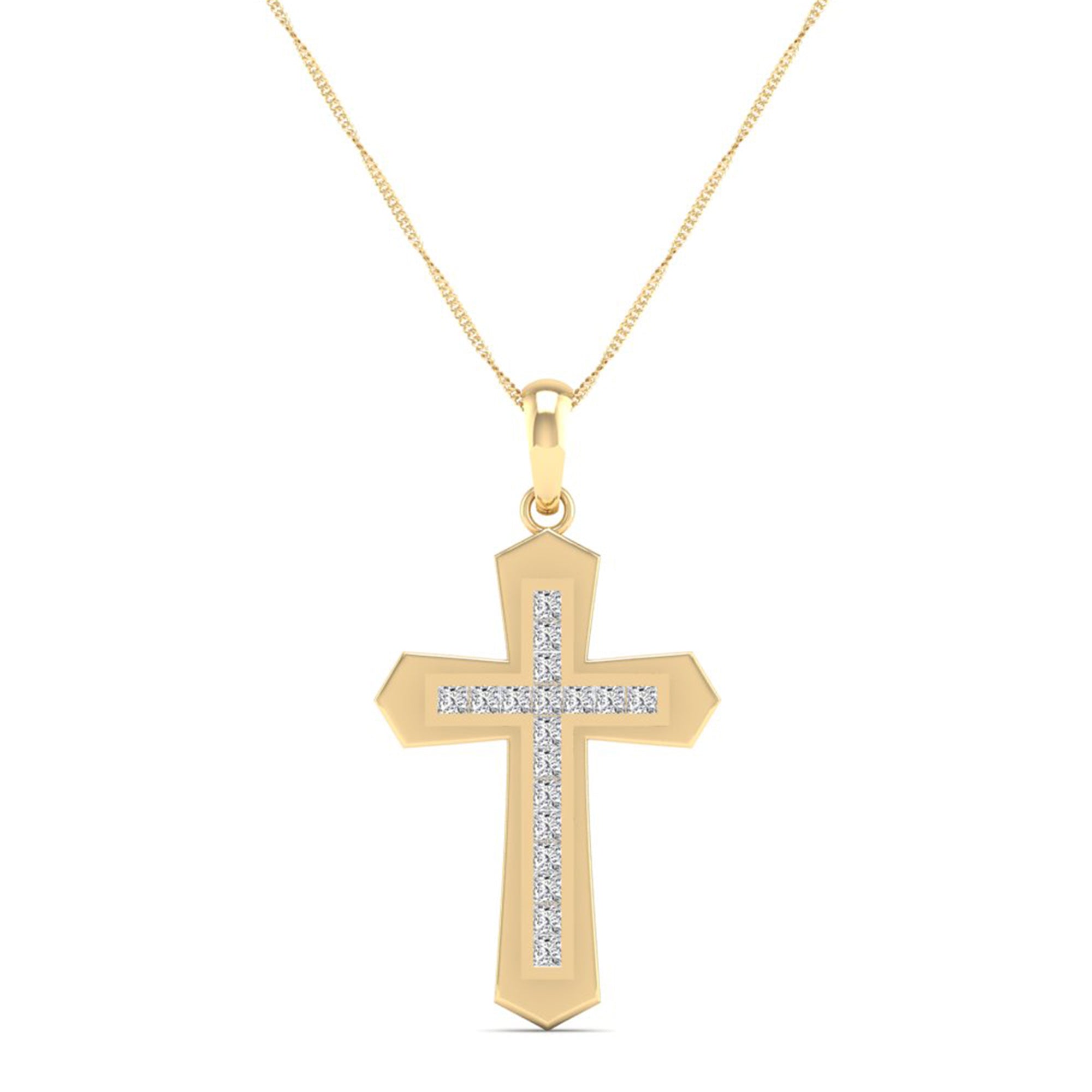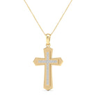 This sophisticated men's pendant features a double cross configuration with precision-set diamonds integrated into the architectural design.