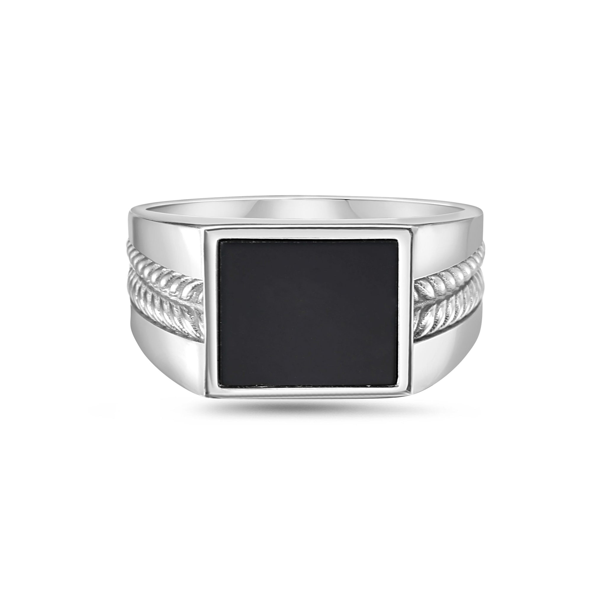 Sterling Silver with Rhodium Finish Polished Wheat Ring with Rectangular Black Onyx.