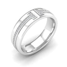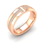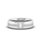This Men's Narrow T Diamond Ring showcases innovative architectural design with a distinctive T-shaped profile that optimizes both aesthetics and structural integrity.