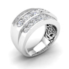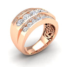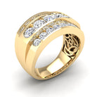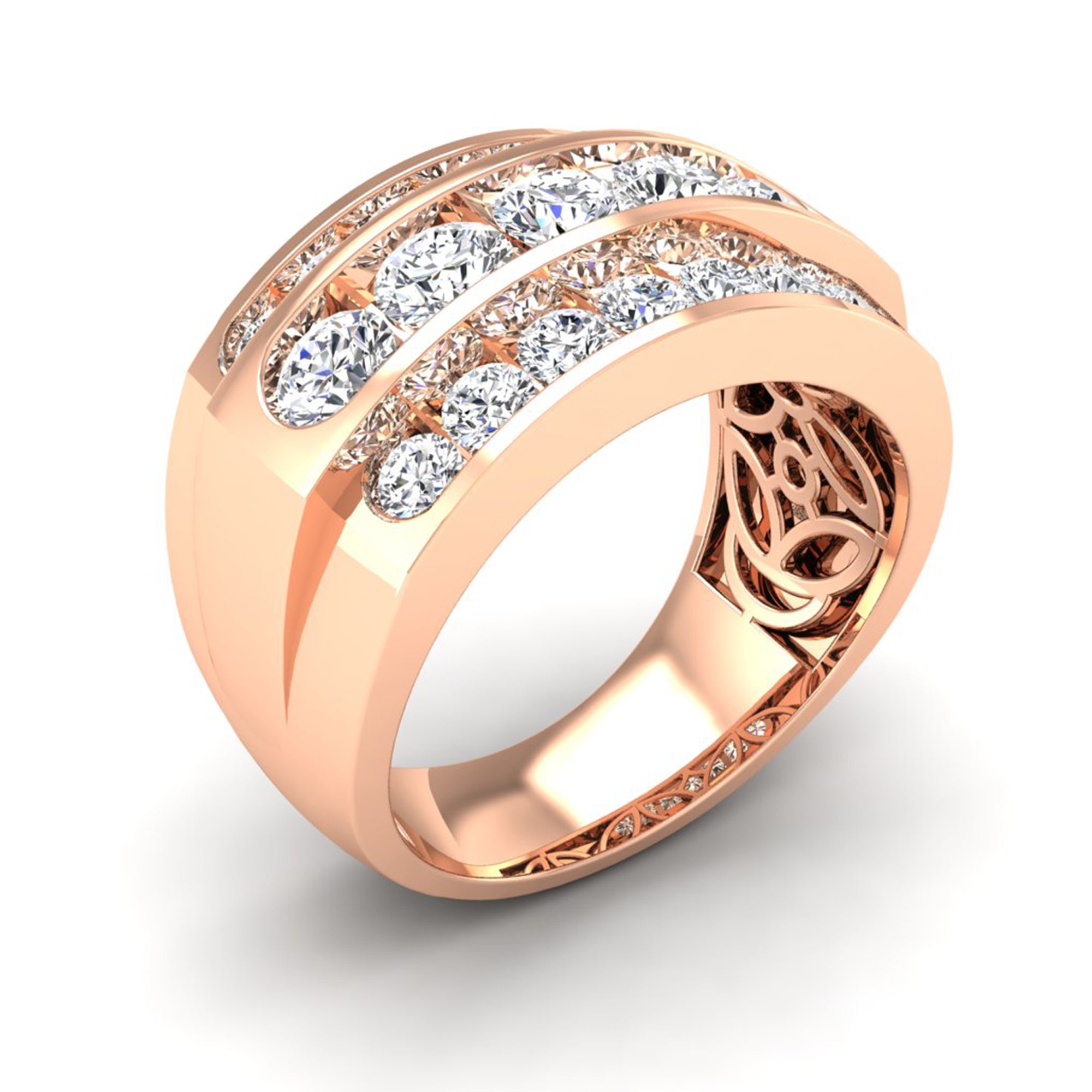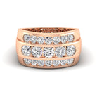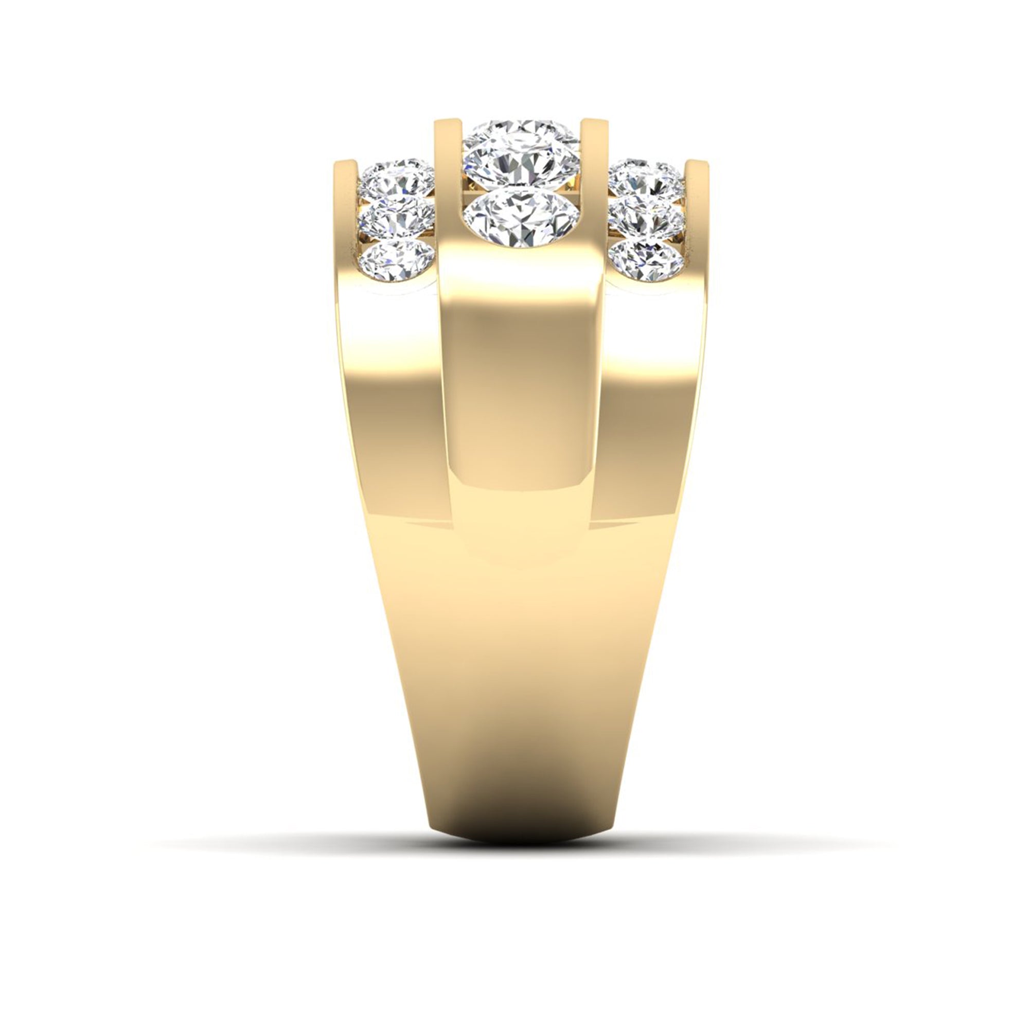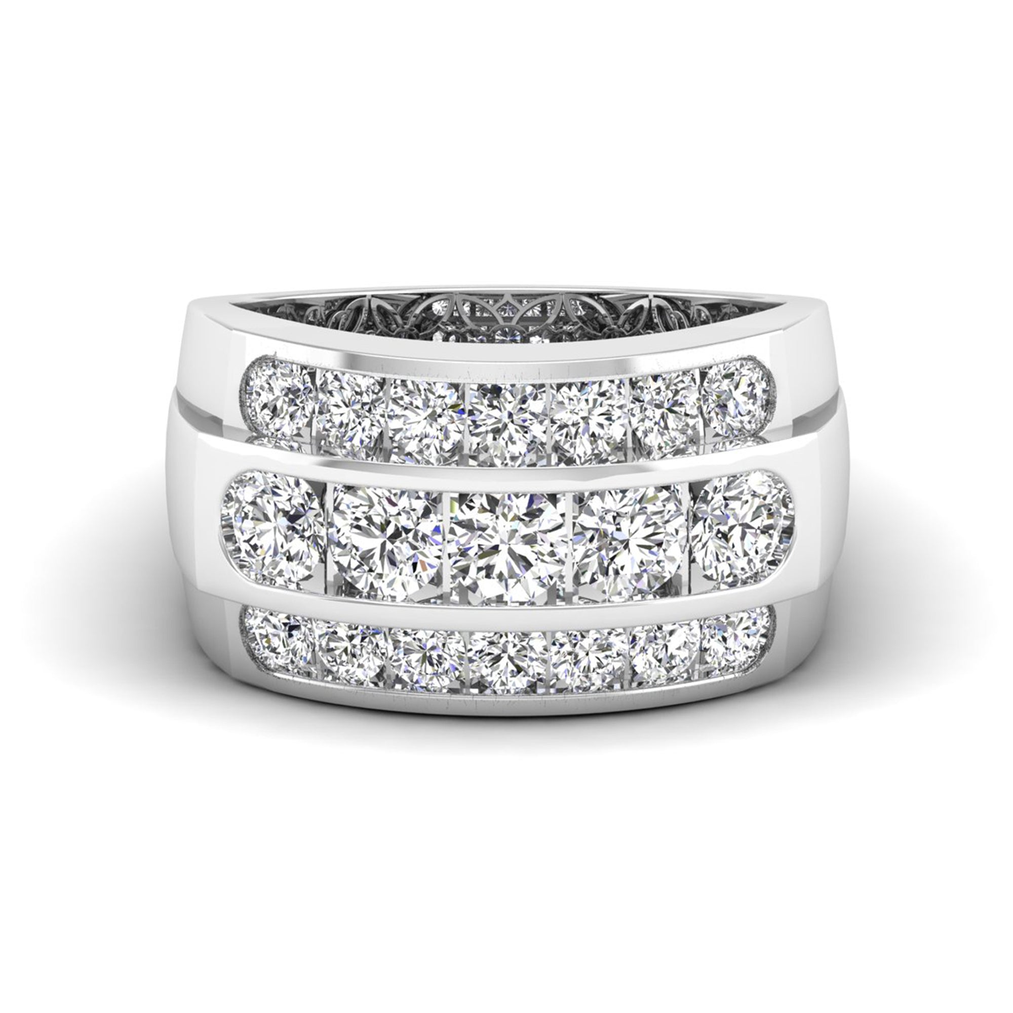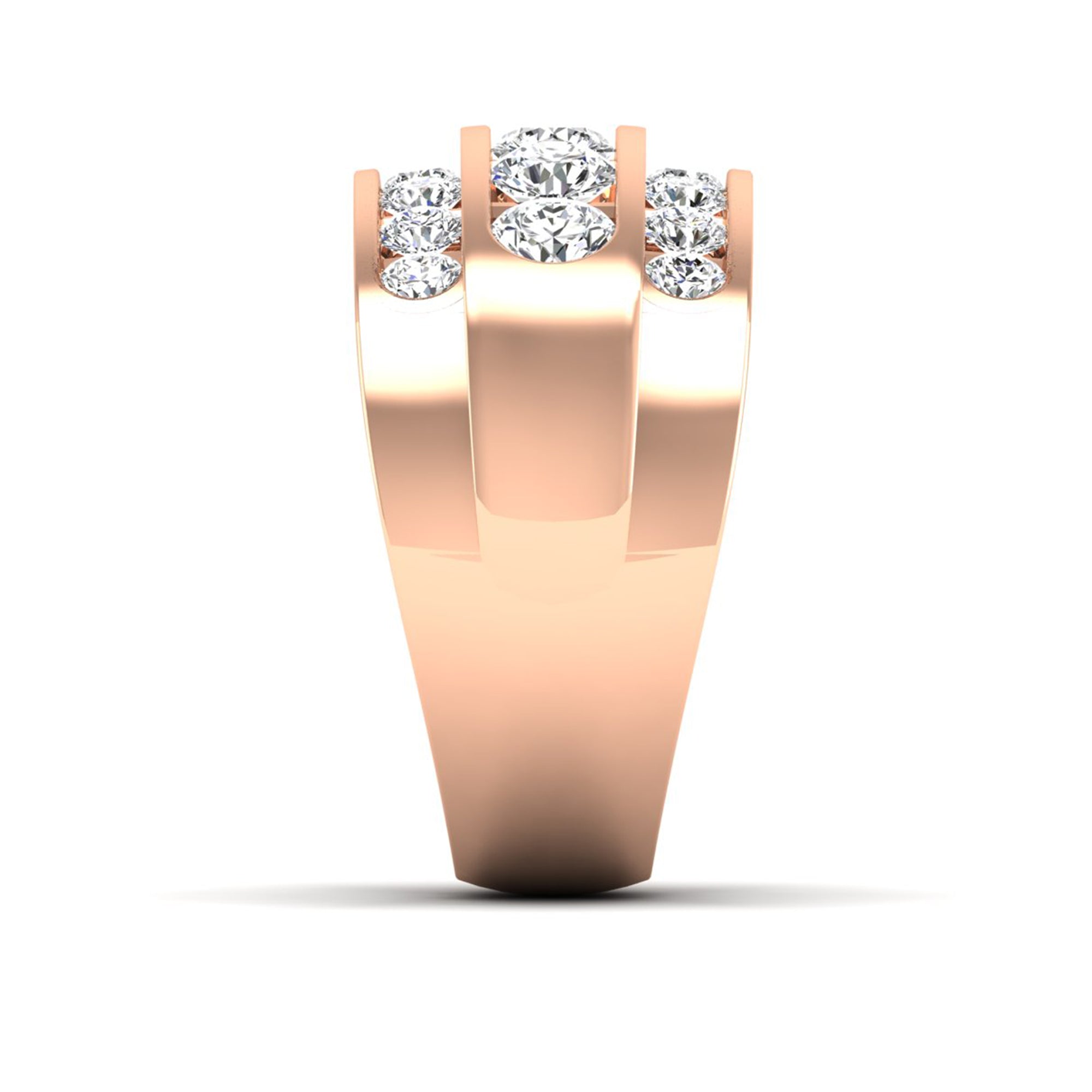 This sophisticated men's band features three precisely engineered channel rows containing meticulously calibrated diamonds. The channel setting architecture provides superior diamond security while creating clean, architectural lines across the band's surface.