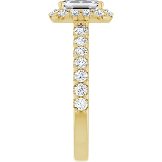 Crafted with precision, the Milano 1.0Ct Emerald Halo Lab Diamond Ring features an expertly cut lab-grown diamond.
