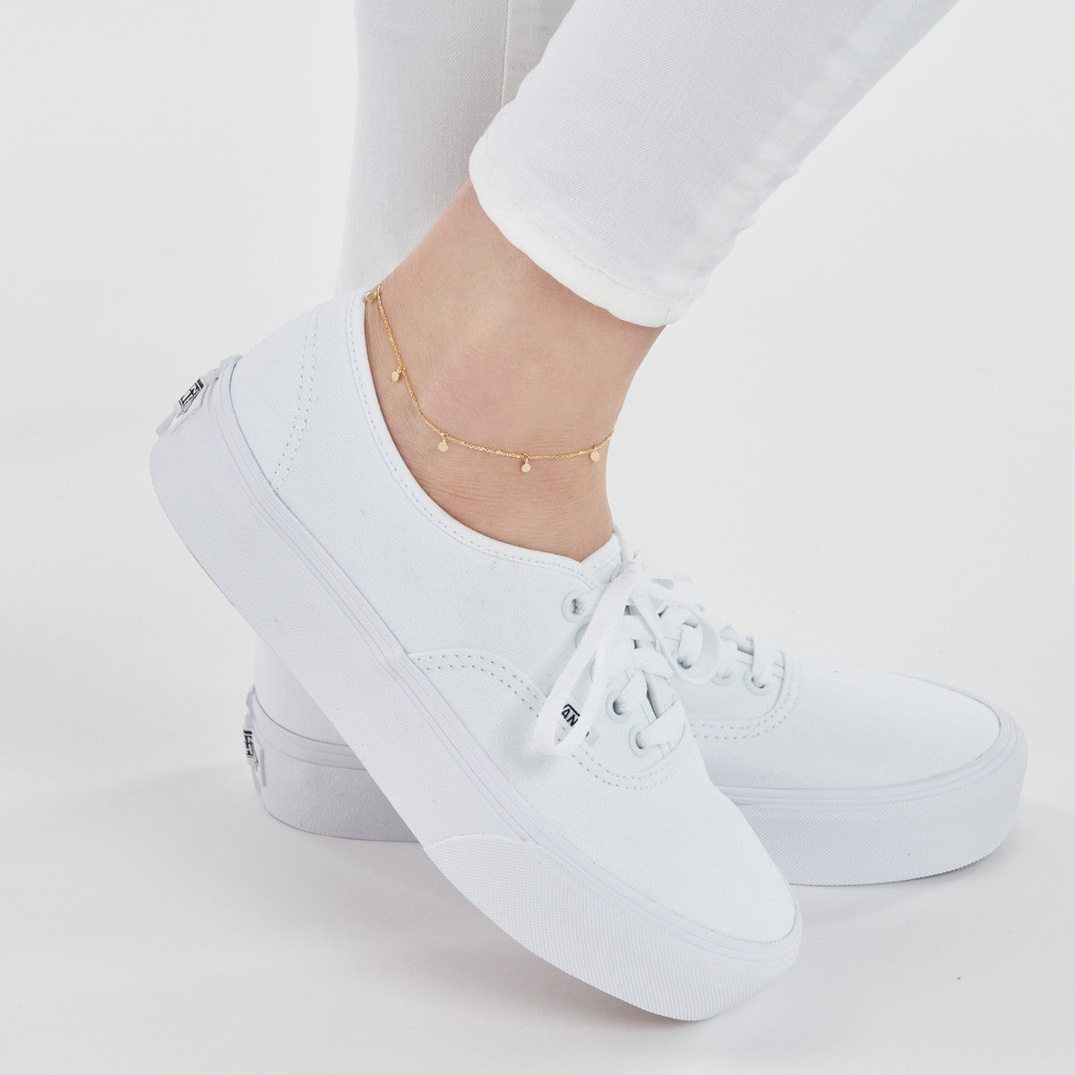 This mini disc dangle anklet is the perfect complement to any outfit. The piece is adjustable from 9-10 inches and clasps with a lobster lock.