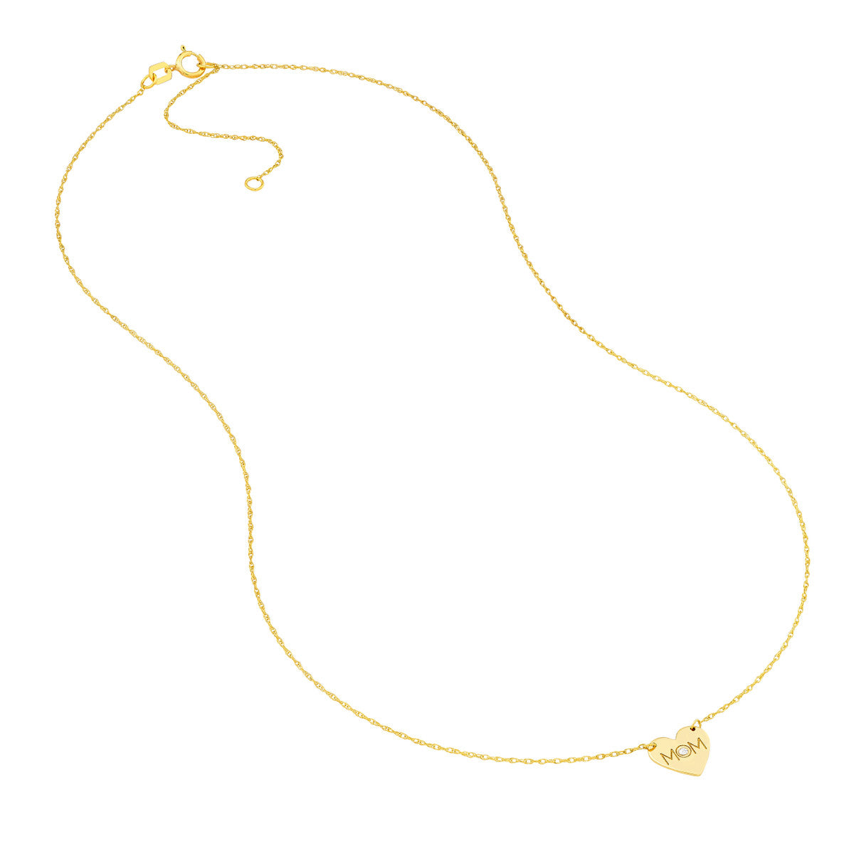 It's got her name written all over it! This 1.2pt diamond heart necklace with 'MOM' written over it is made in 14K gold and adjusts 16-18 inches.