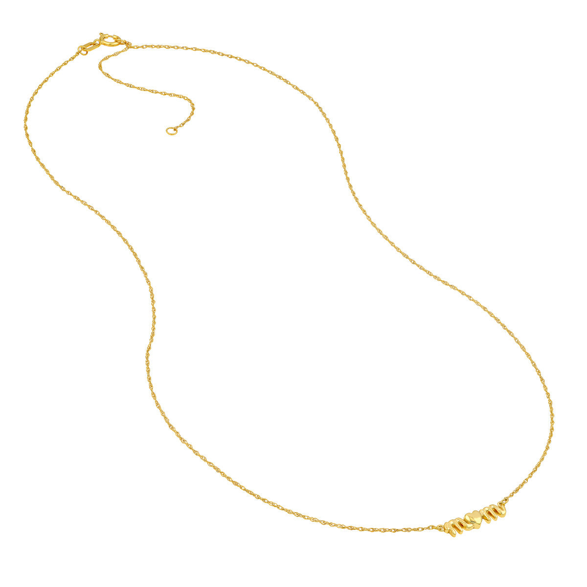 The Mom Heart Necklace, crafted in 14k solid gold, is a heartfelt tribute to love and family. Its timeless design makes it a perfect, meaningful gift for any mother.
