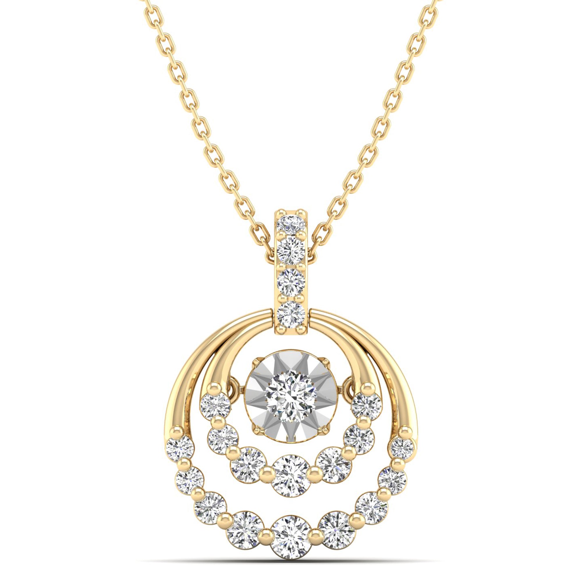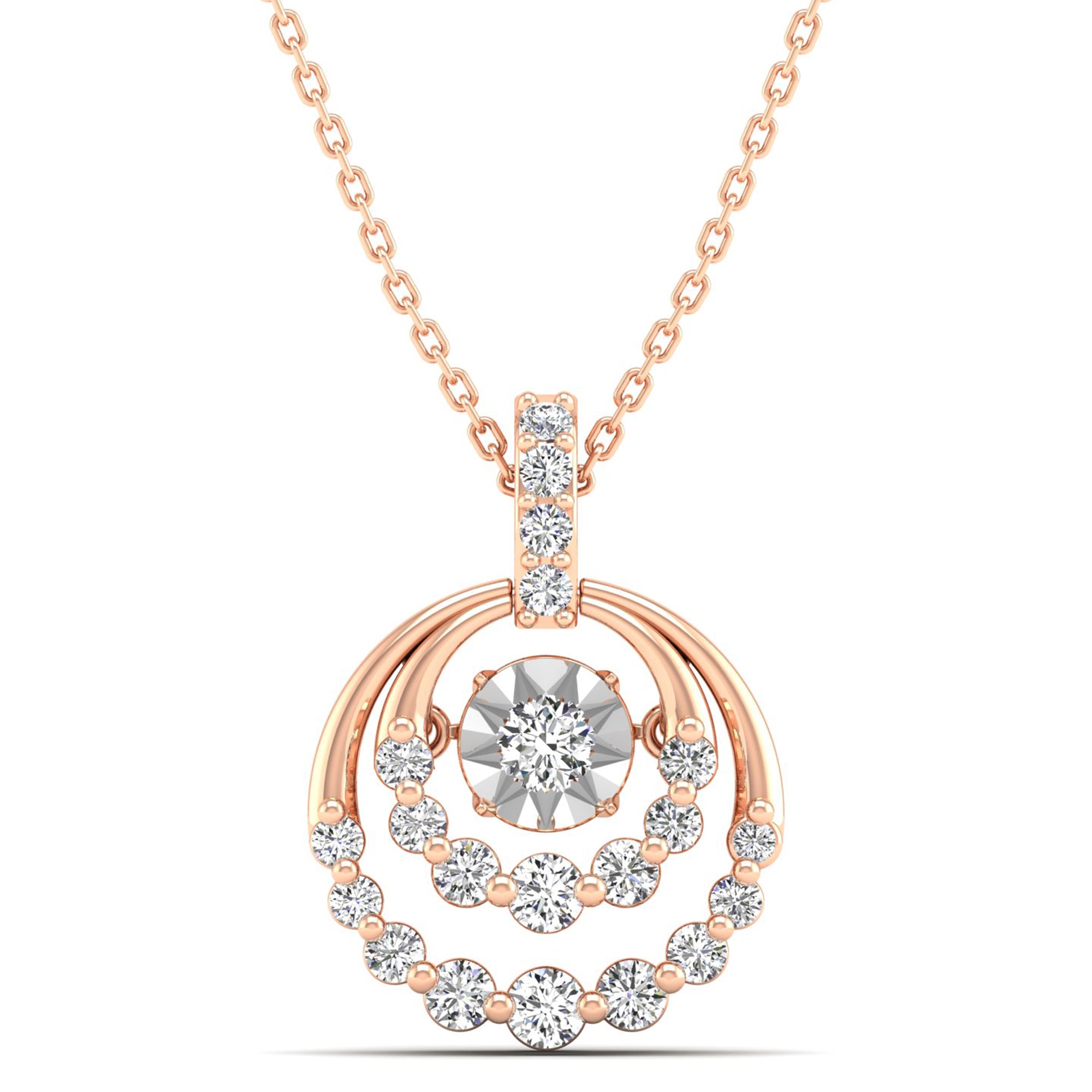 Elevate your style with our Nested Moon Cluster Dancing Diamond Pendant. The intricately designed pendant features multiple diamonds that dance in the light, creating a stunning and unique effect.