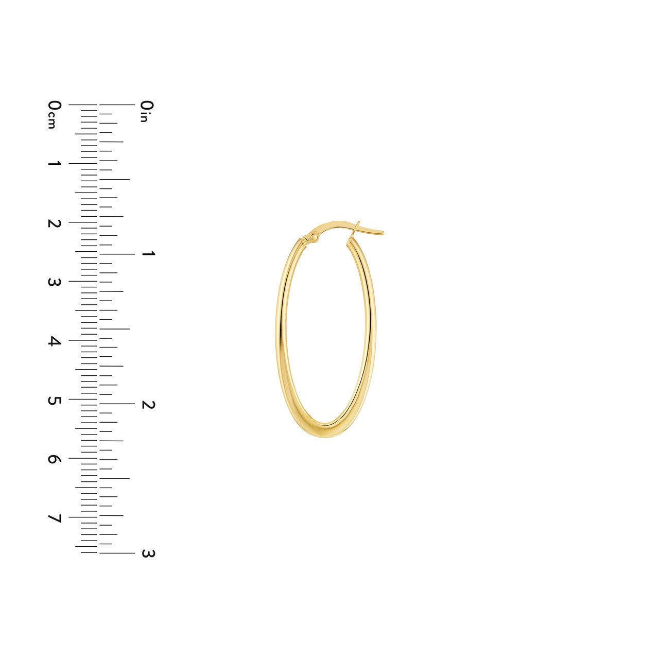 Have all eyes on you with these large oval hoop earrings. Crafted in 14K gold, these polished hoops are lightweight and versatile.