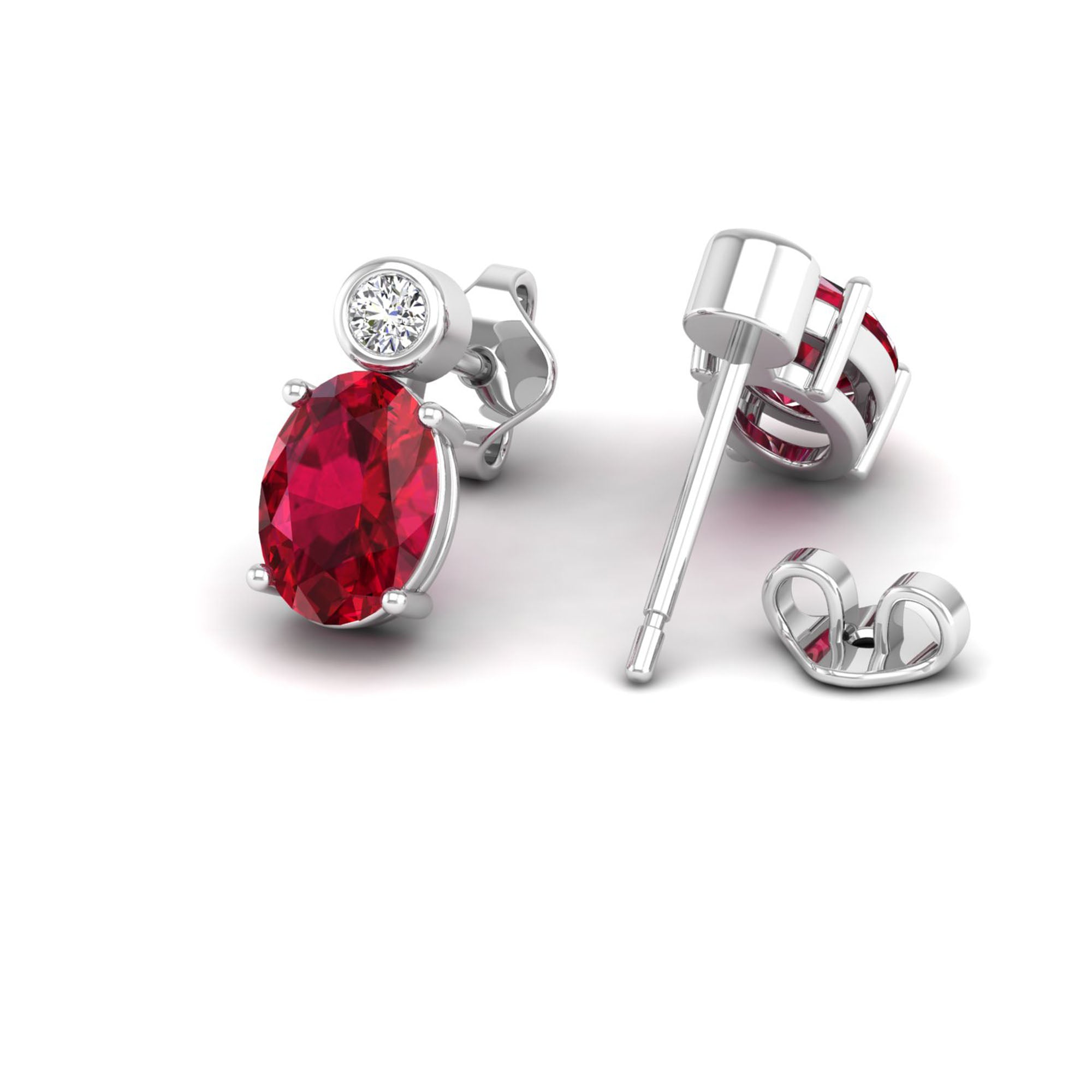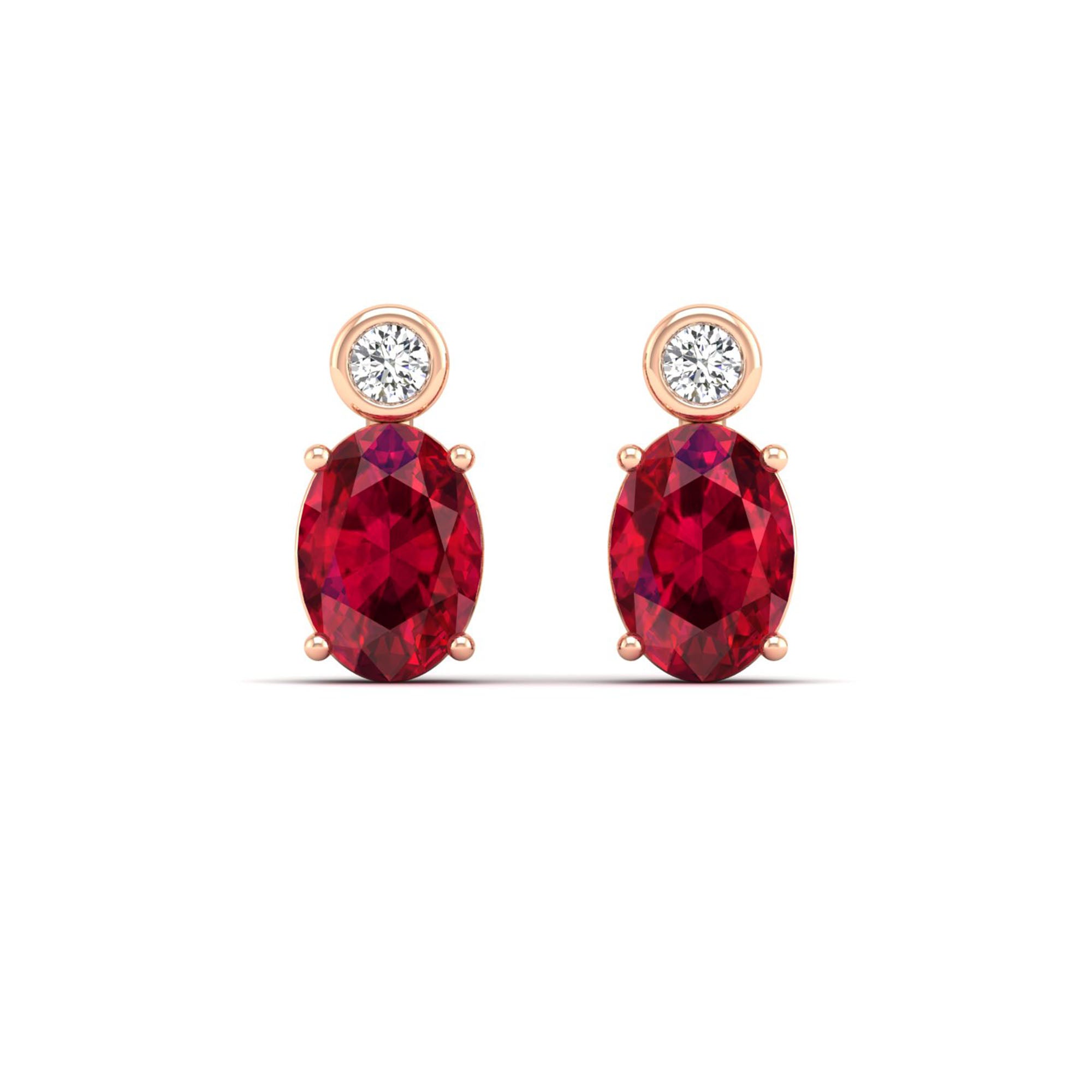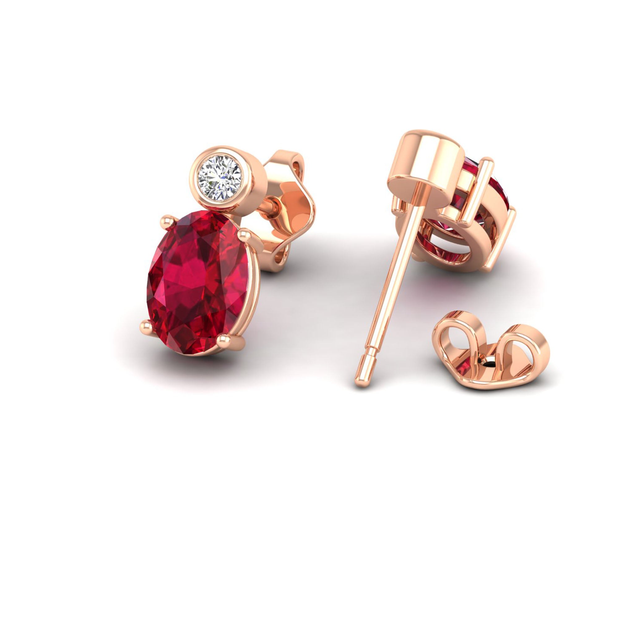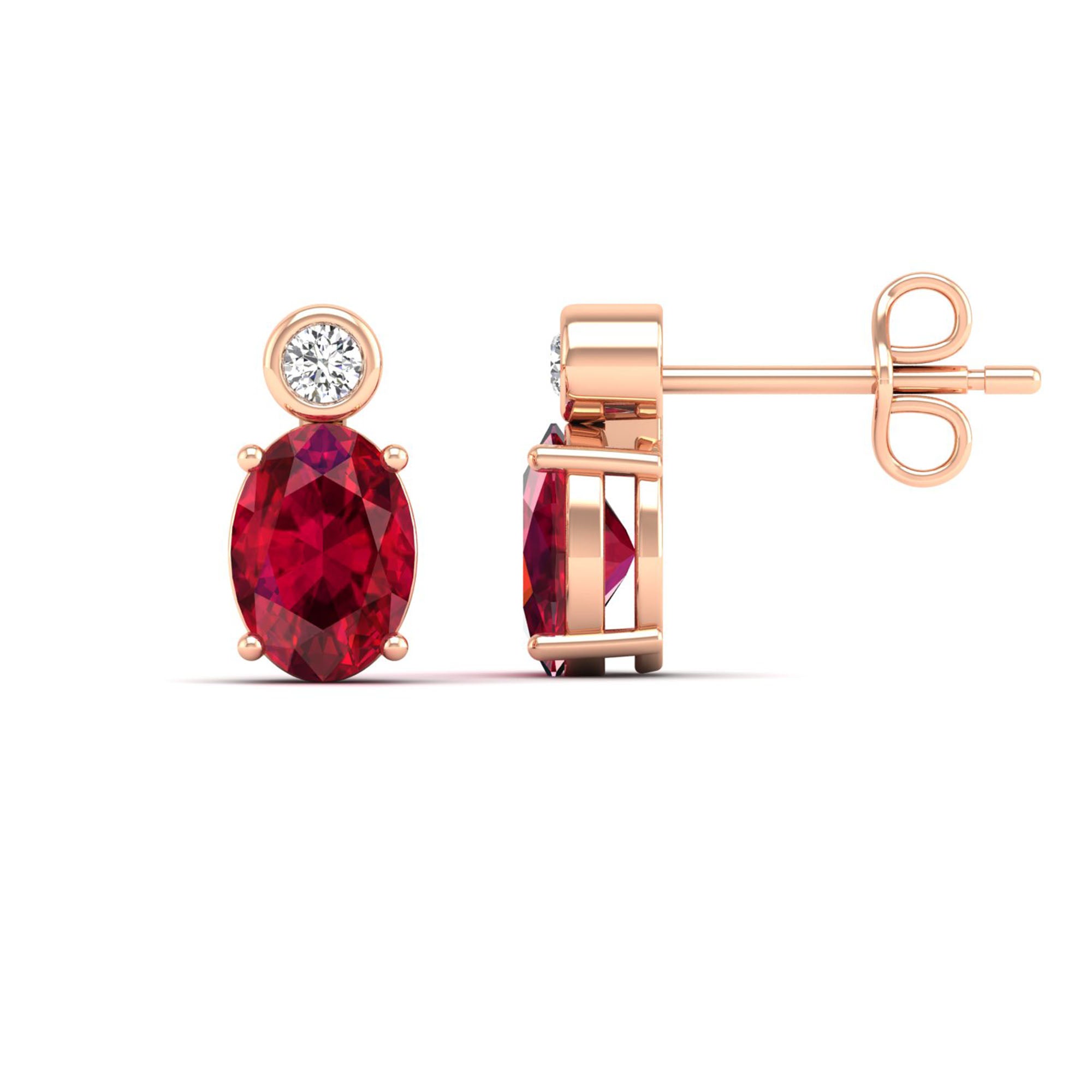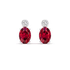 Oval Ruby and Bezel-Set Diamond Studs Earrings