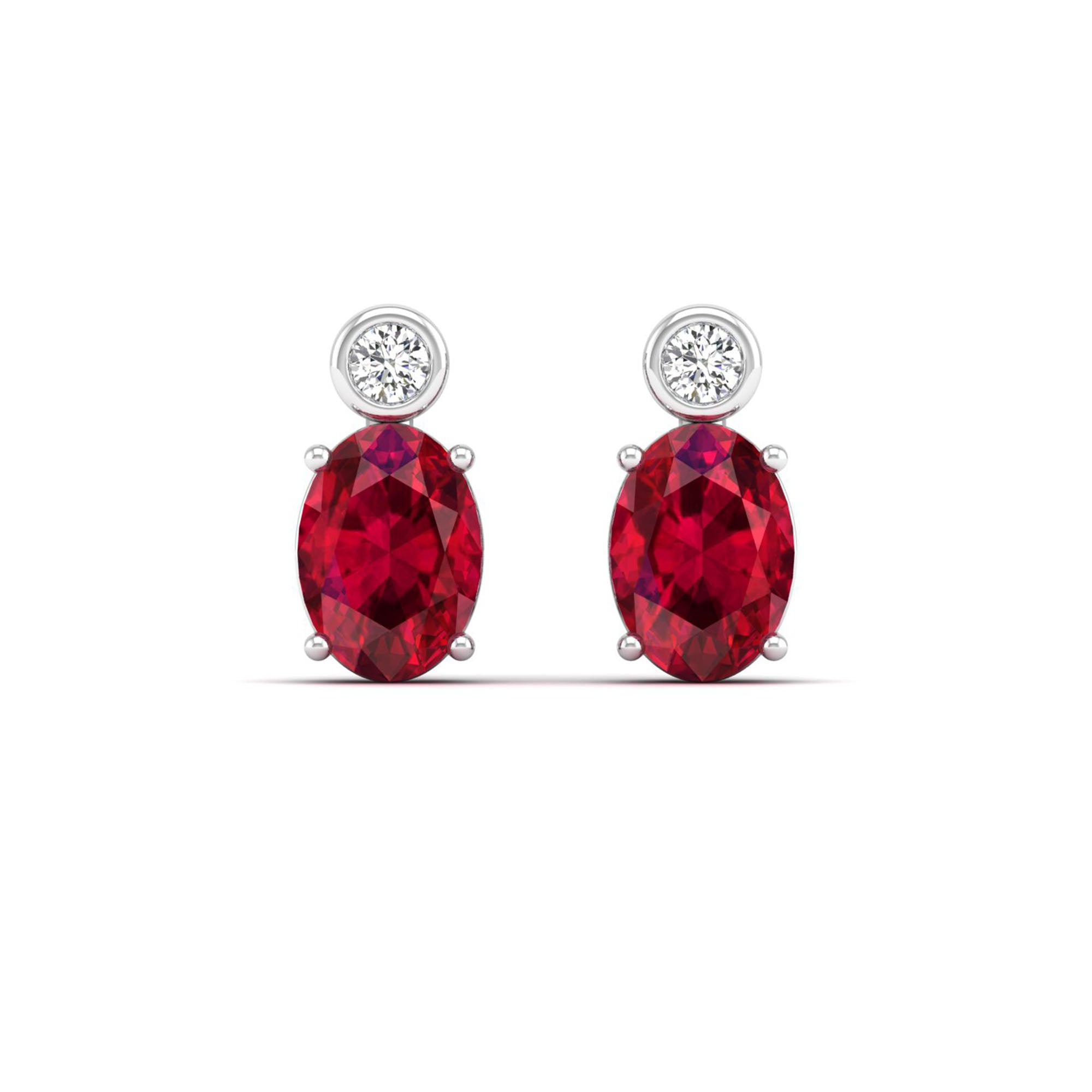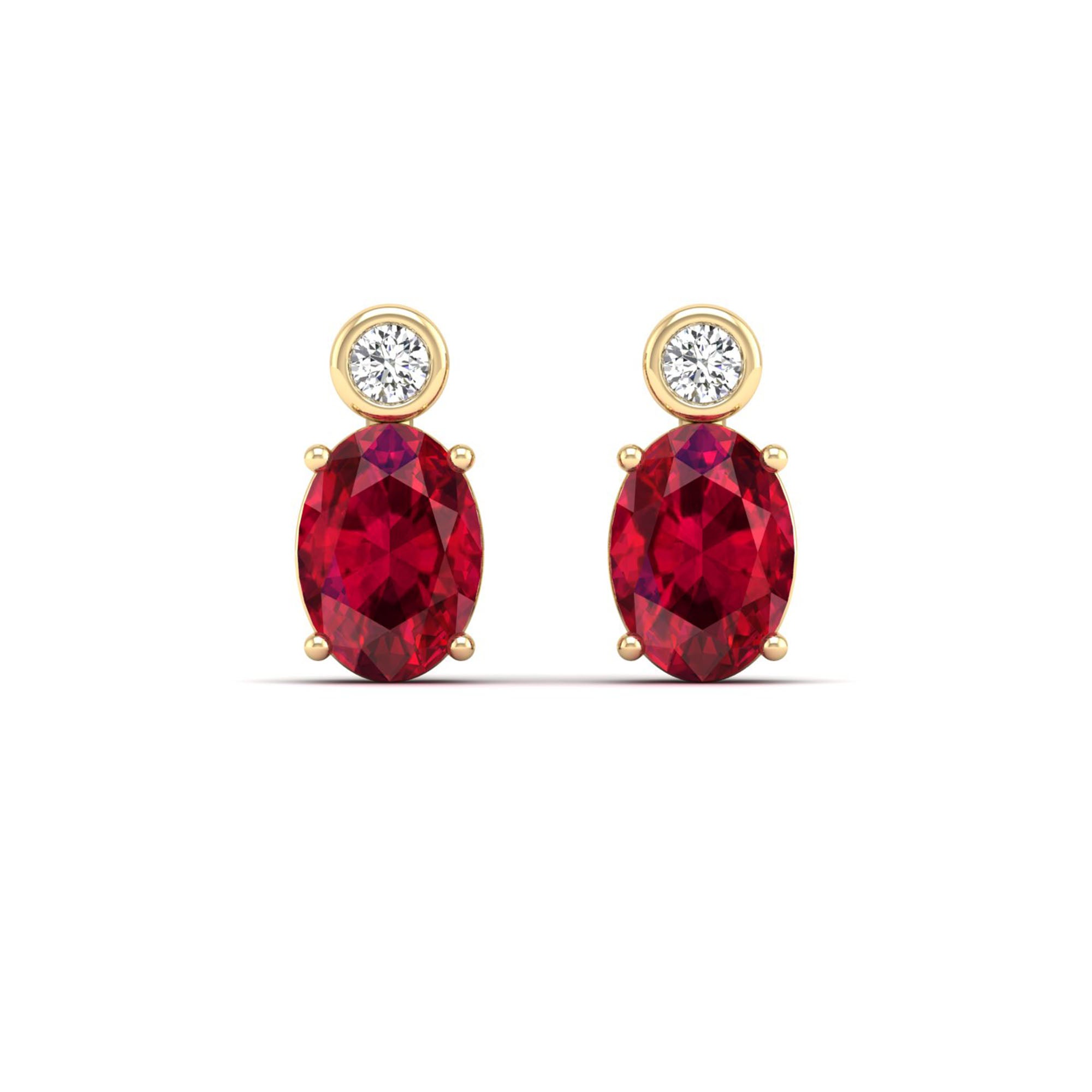 Add a touch of elegance to your jewelry collection with our Oval Ruby and Bezel-Set Diamond Studs Earrings. Crafted with precision, these stunning earrings feature a vibrant oval ruby enclosed by a bezel-set diamond.