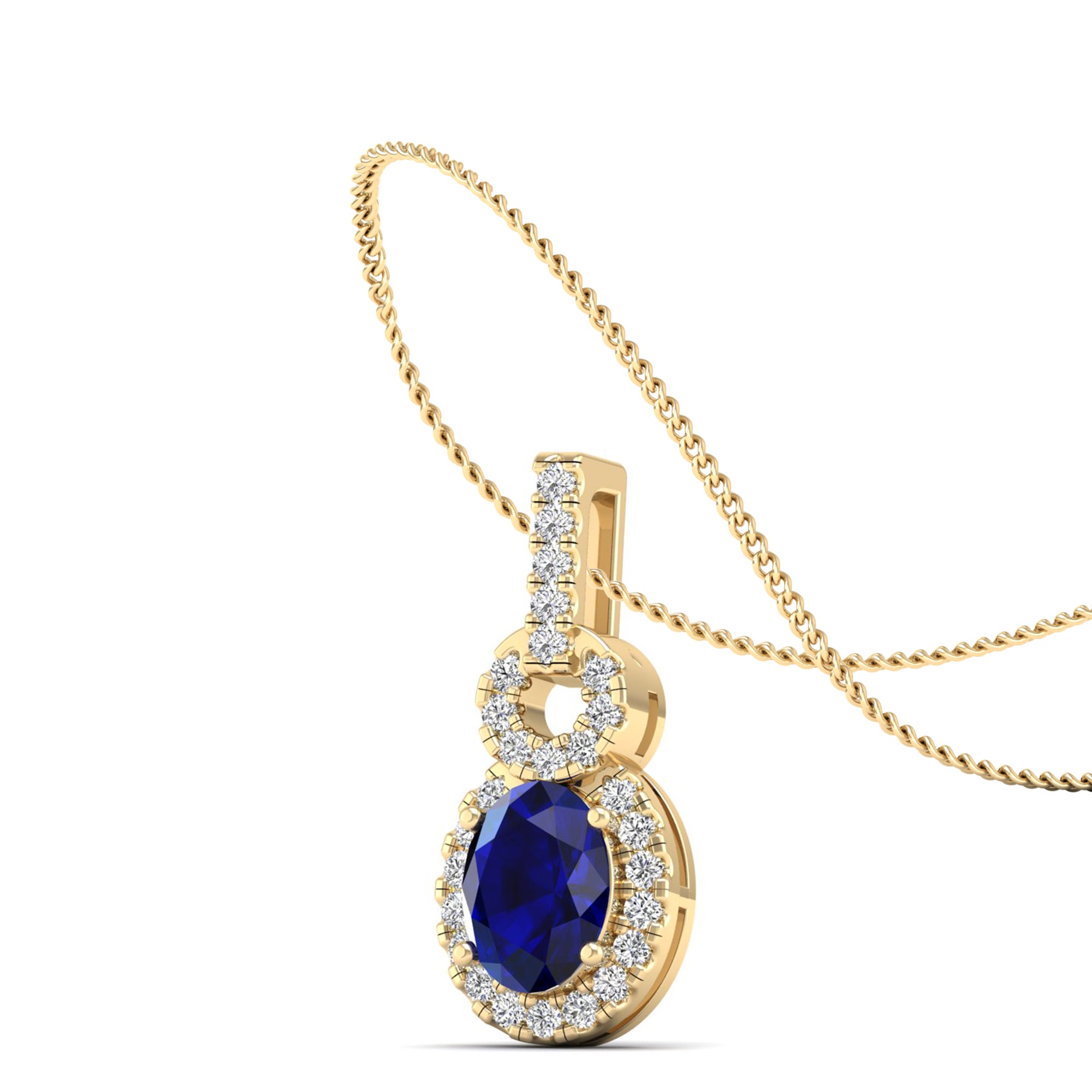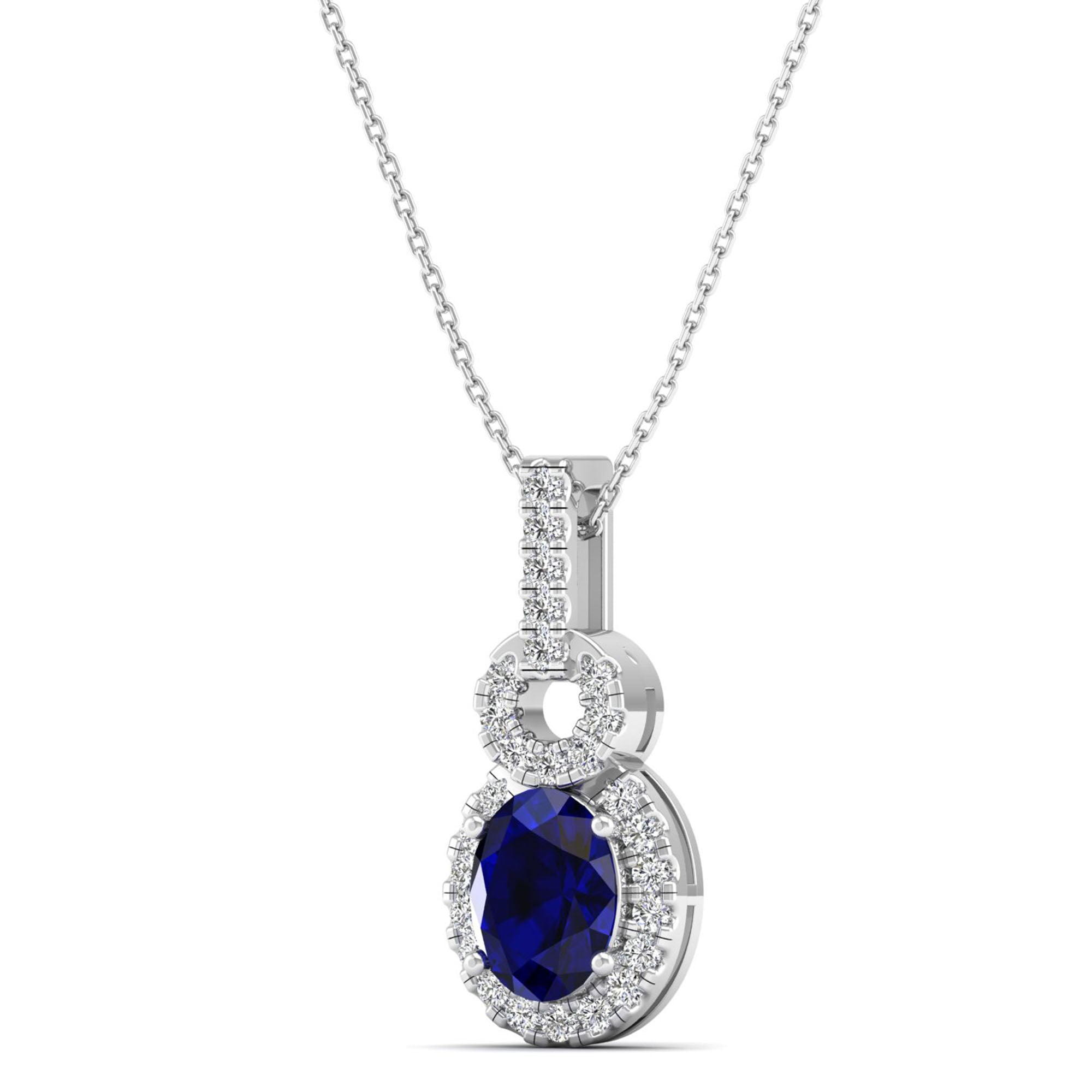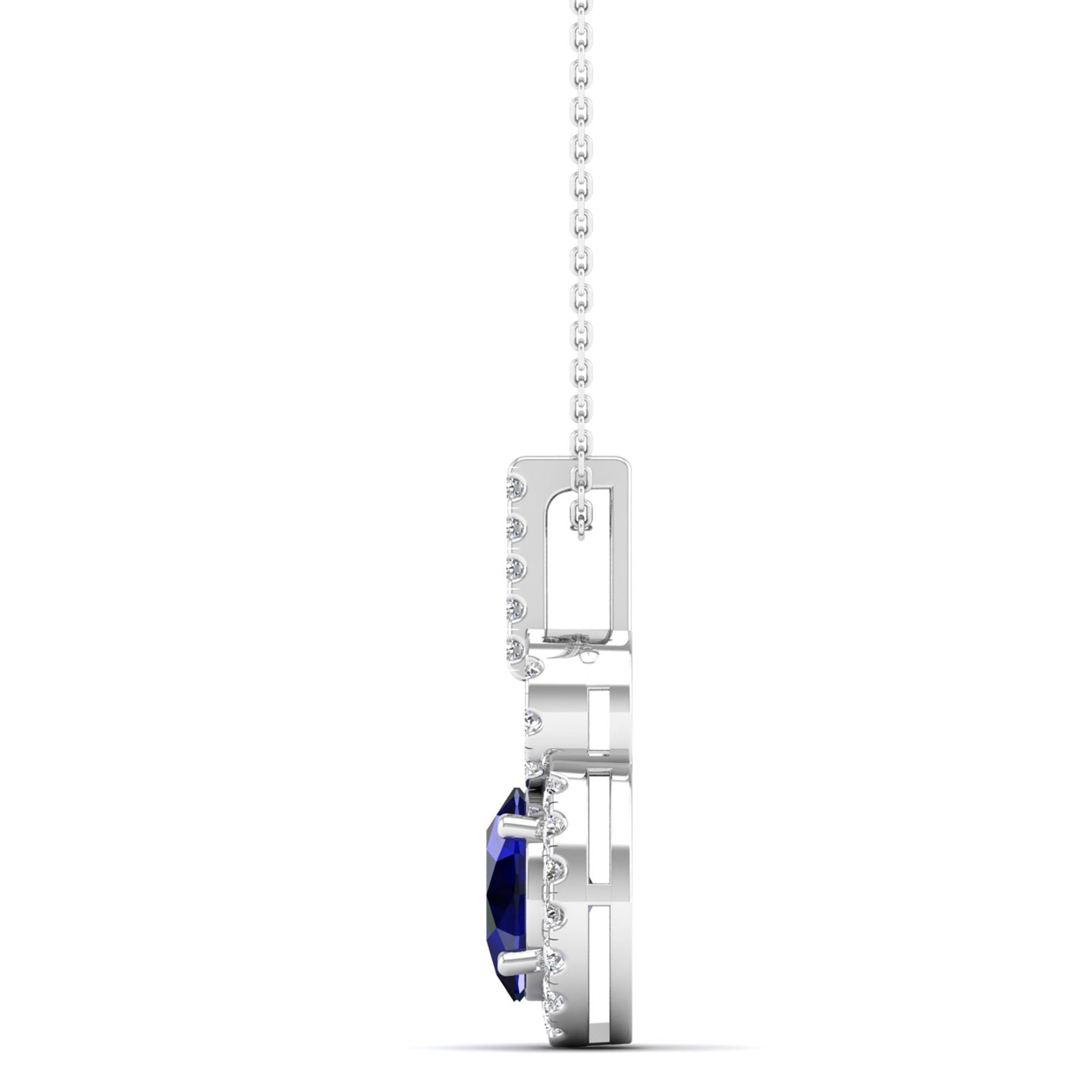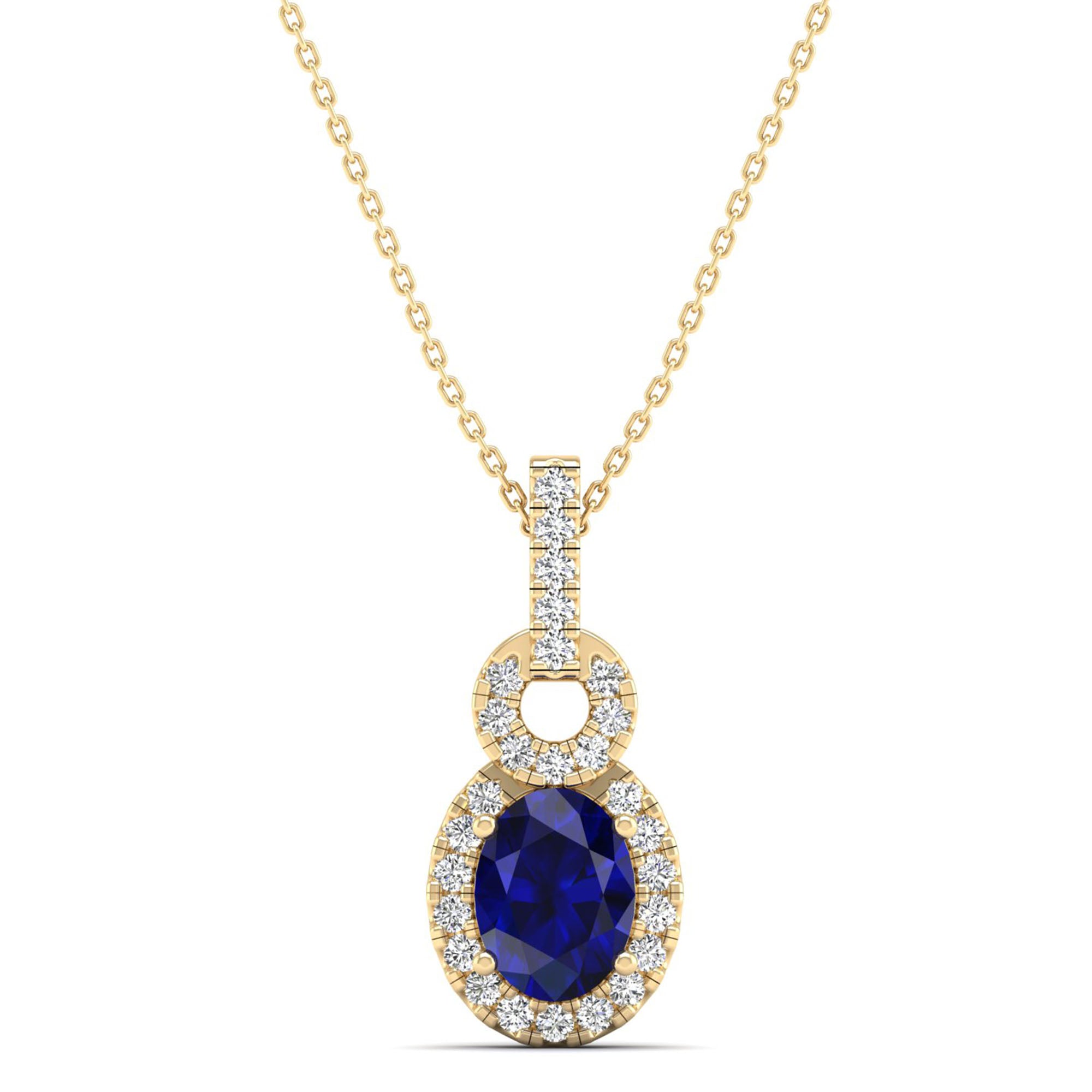 Oval Sapphire and Halo Diamond Dangle Drop Pendant