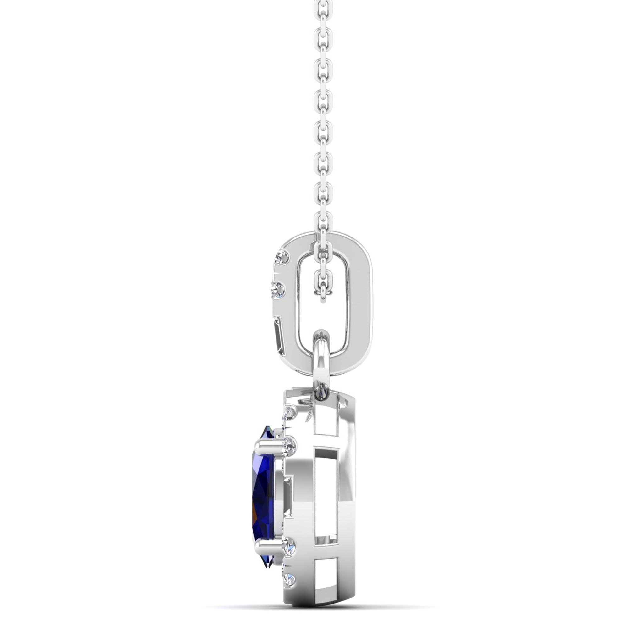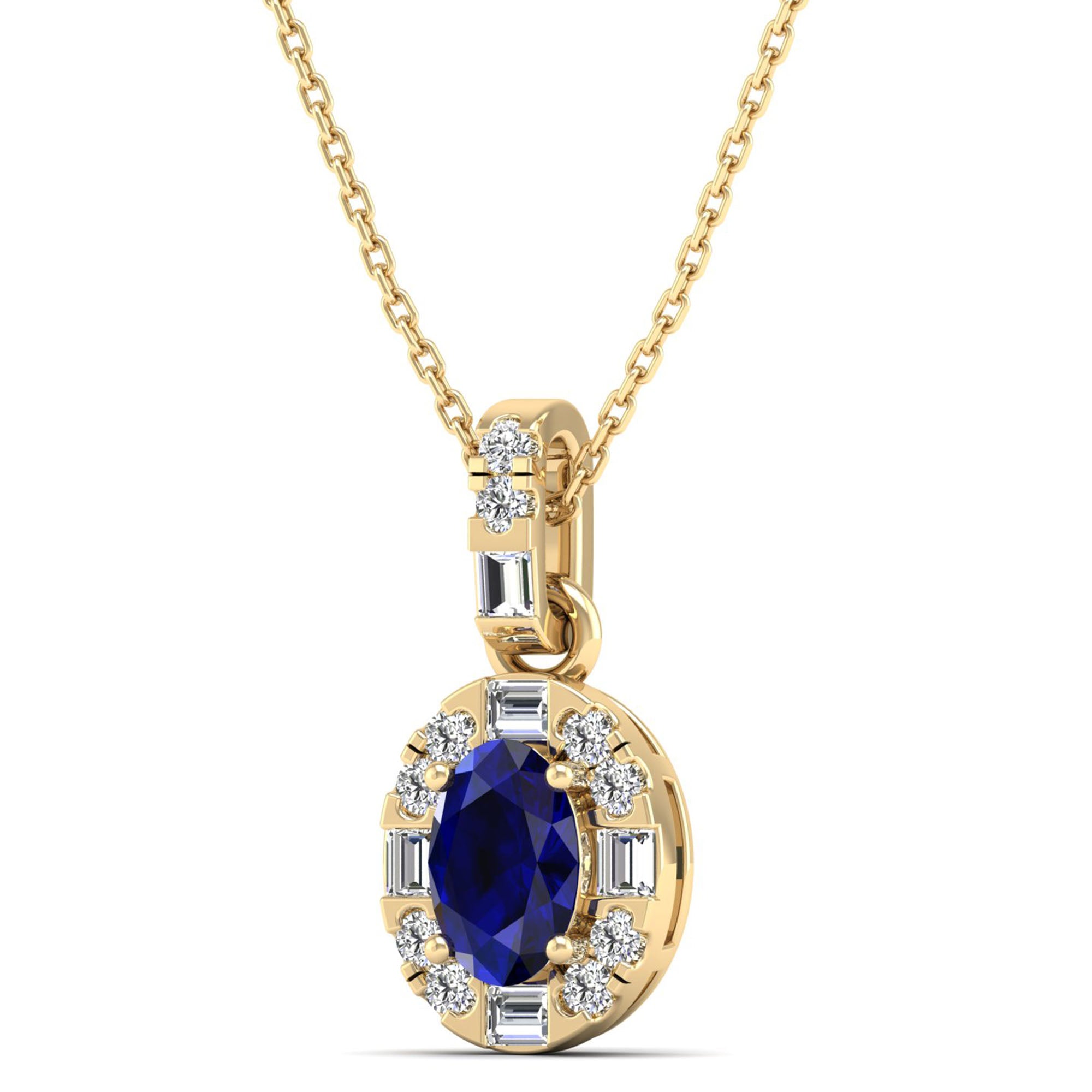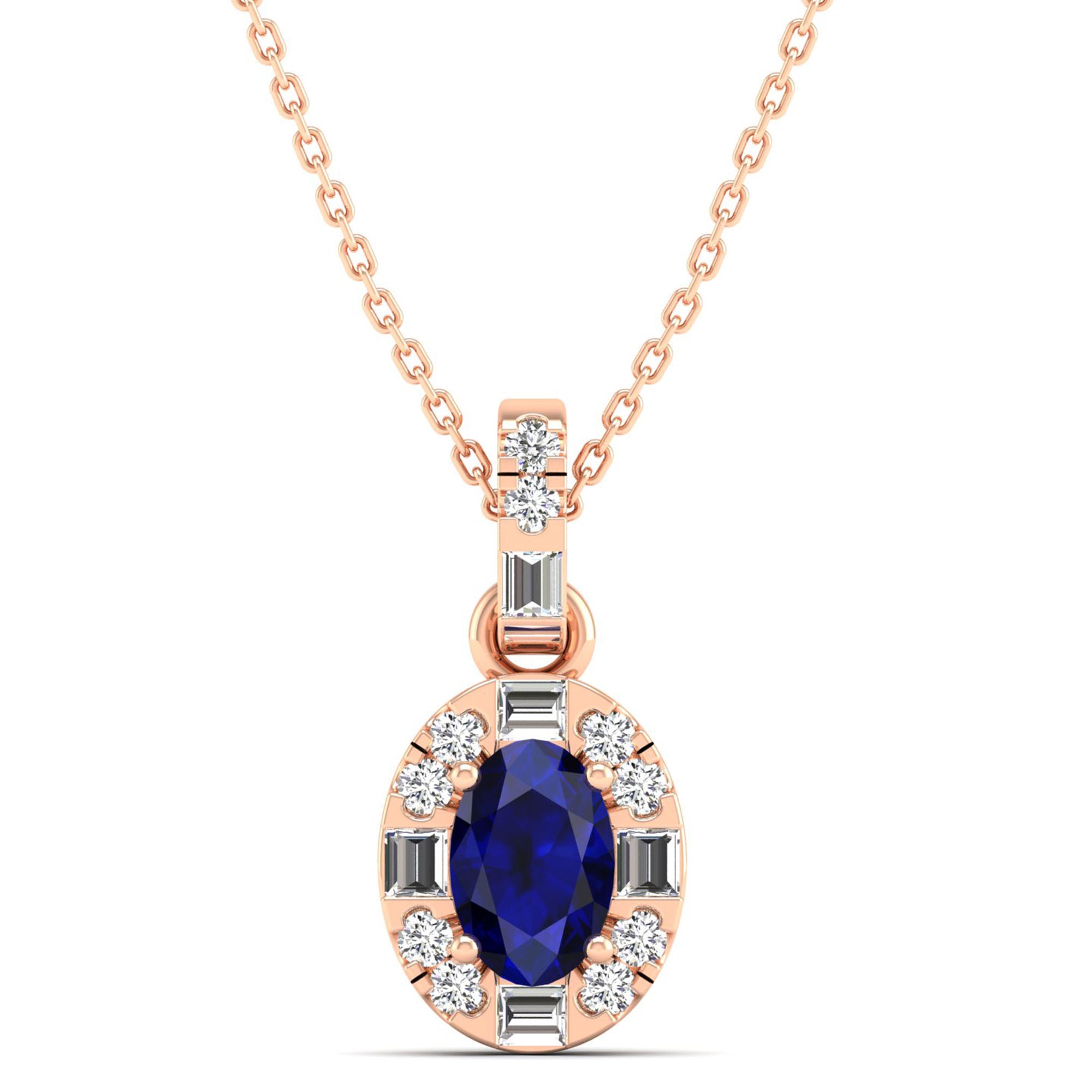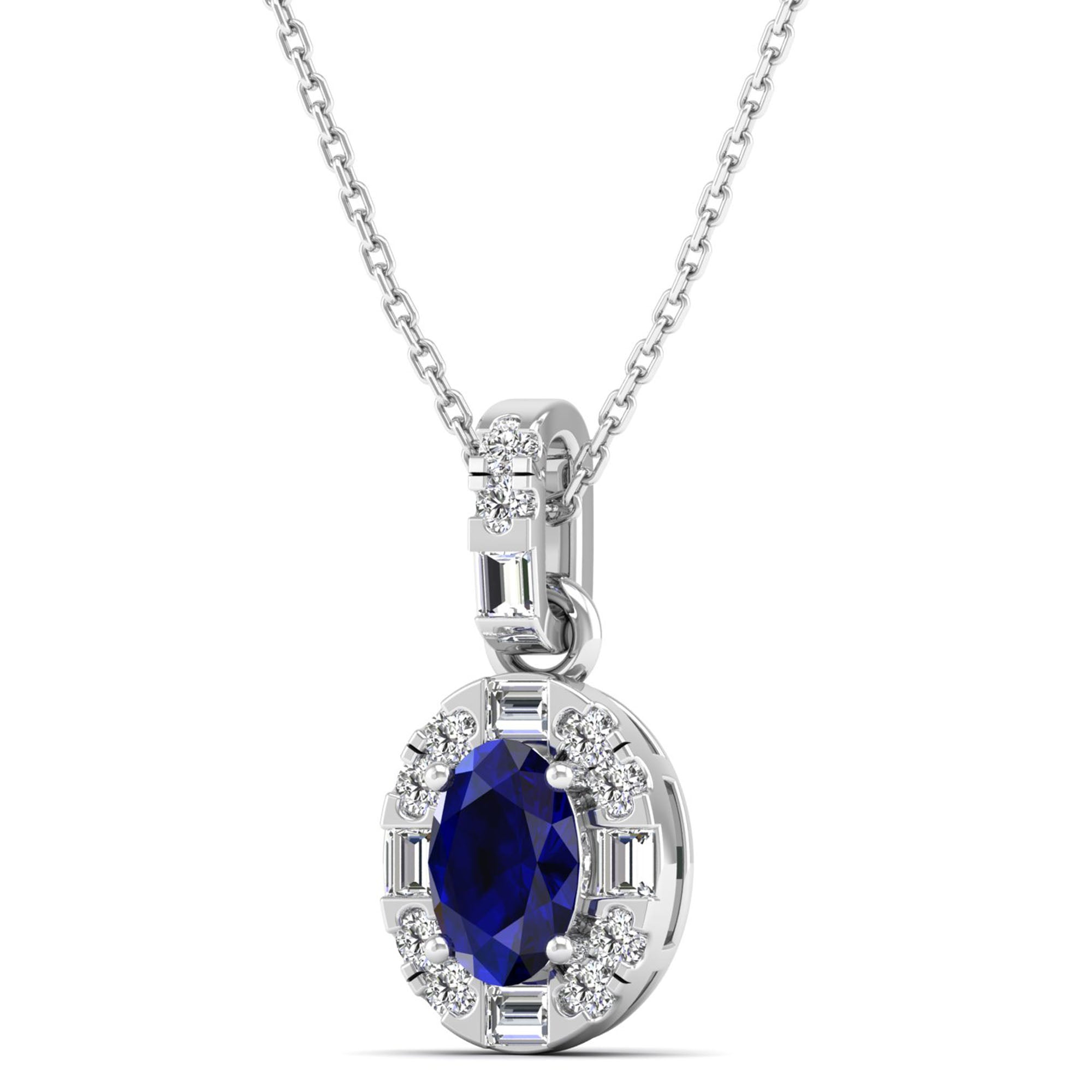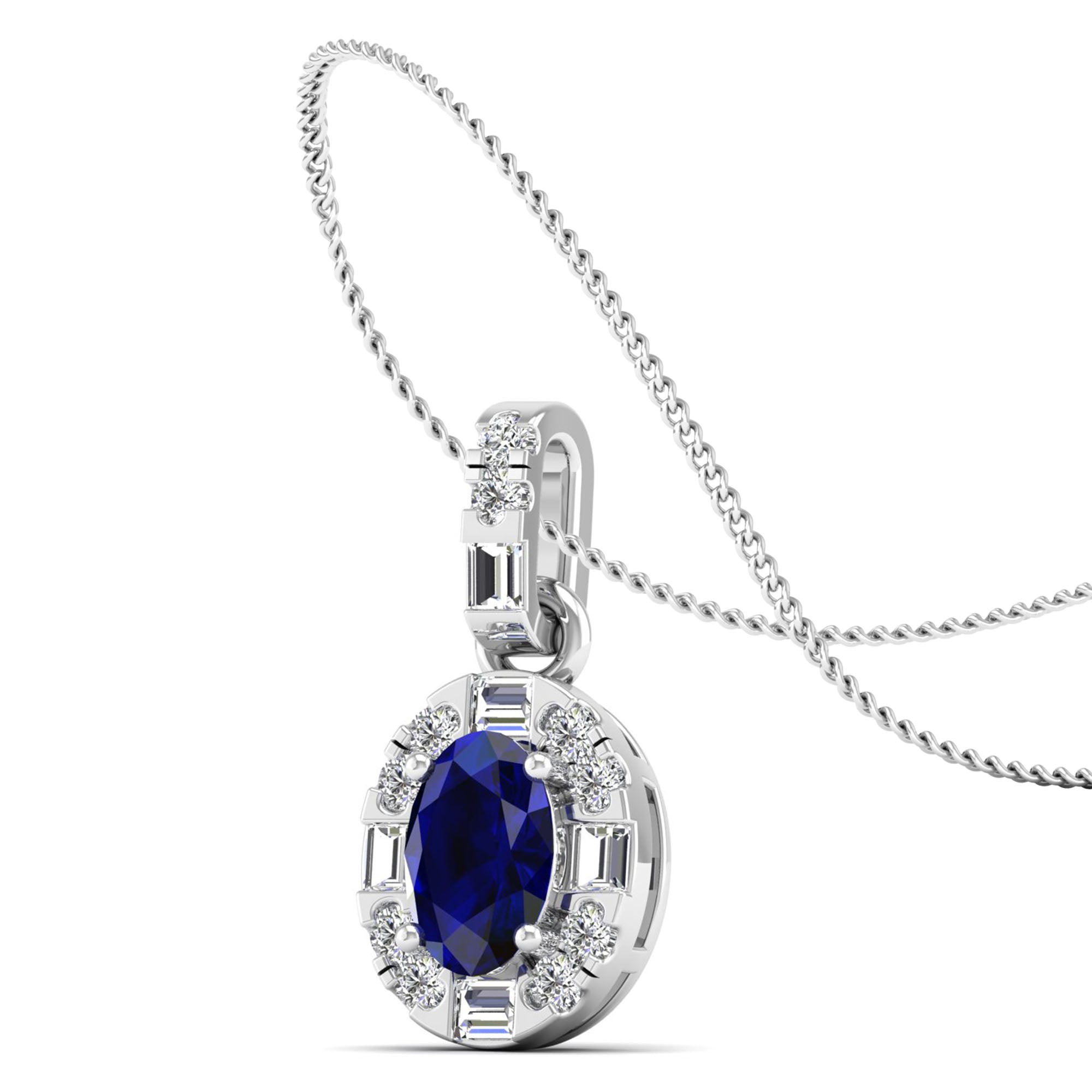 Oval Sapphire Halo Baguette and Round Diamond Pendant