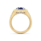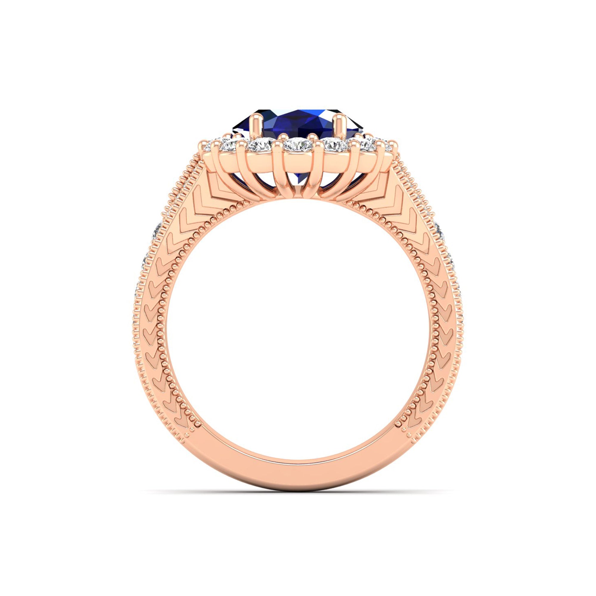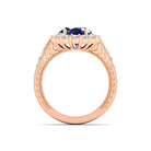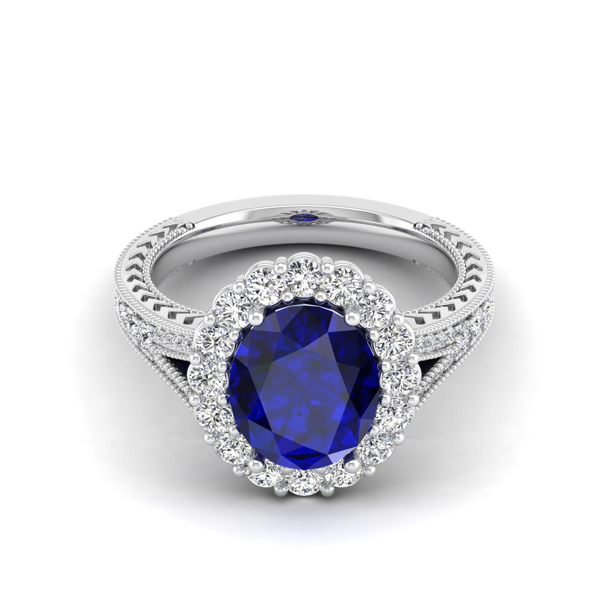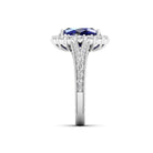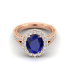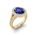 Oval Sapphire Shared Prong Halo Diamond Ring
