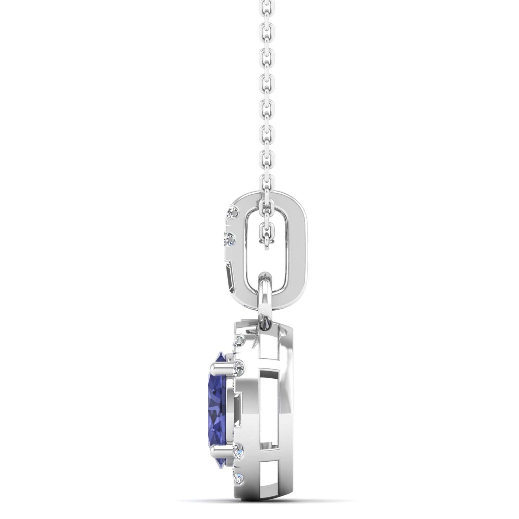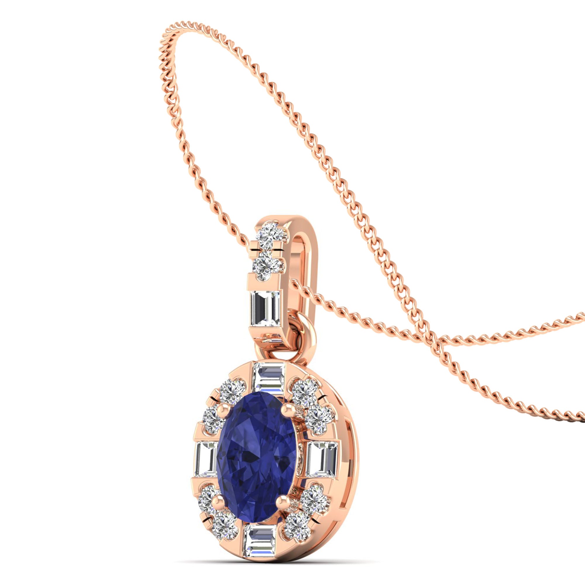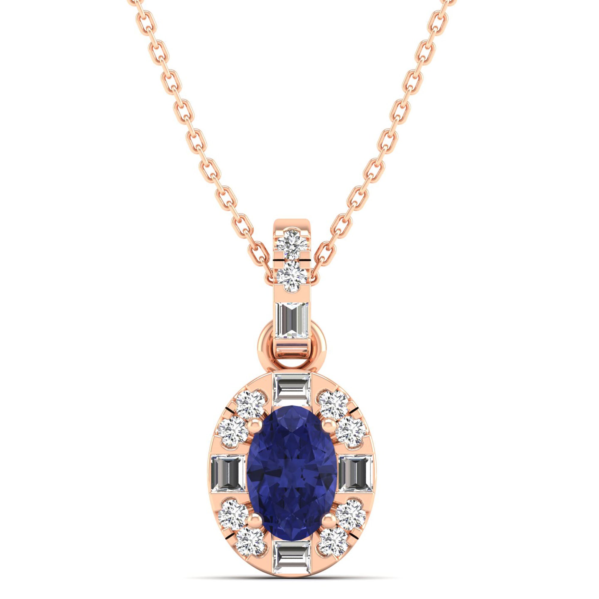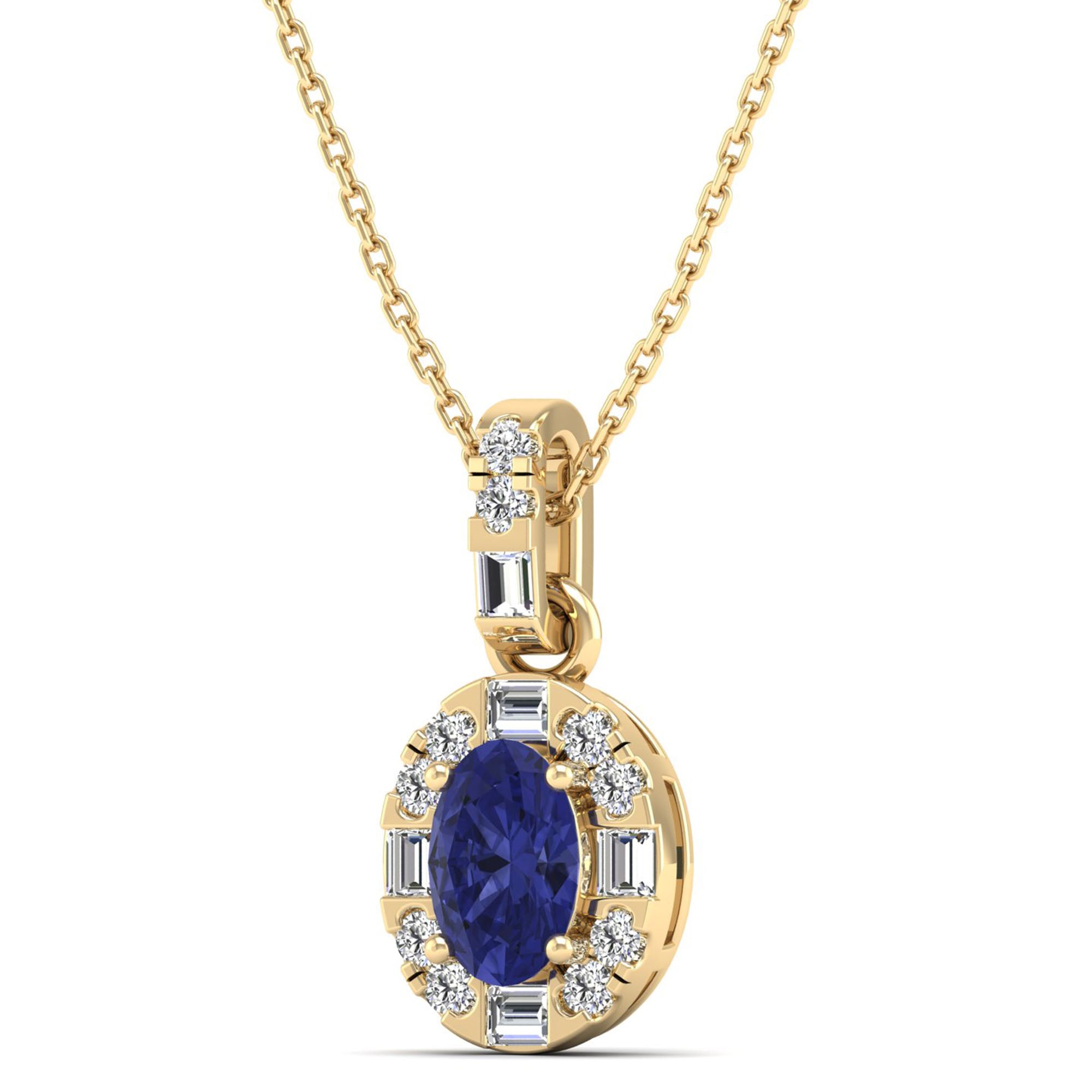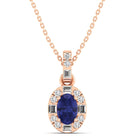 Oval Tanzanite Halo Baguette and Round Diamond Pendant