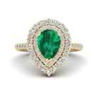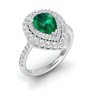 Crafted with exquisite detail, our Pear Double Halo Emerald and Diamond Ring adds a touch of elegance to any look. The pear-cut emerald center stone is surrounded by a sparkling halo of diamonds, making this ring a timeless and luxurious piece.