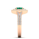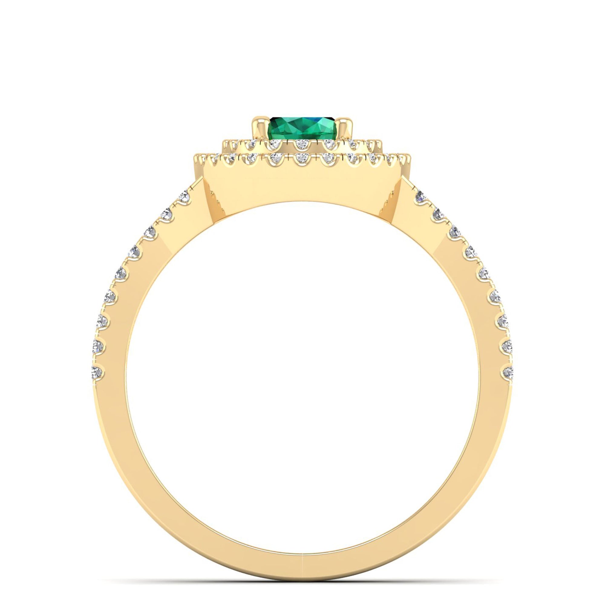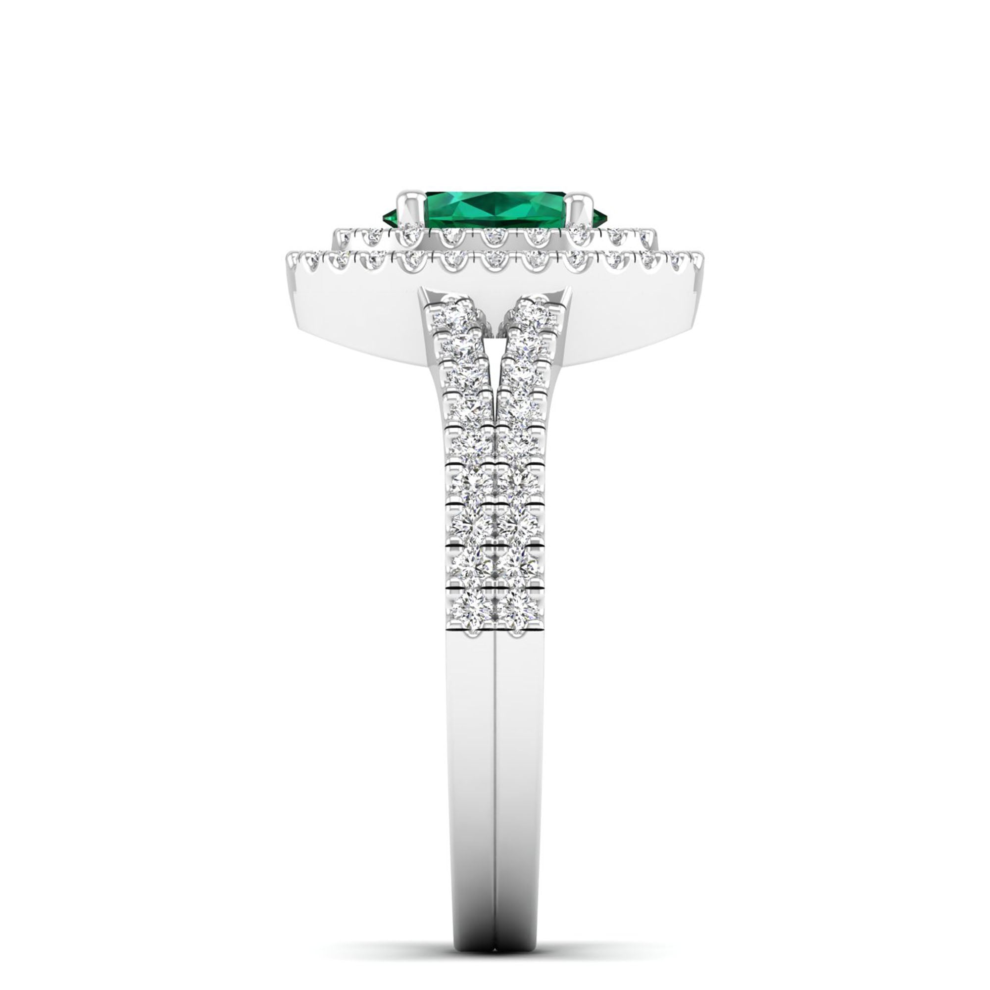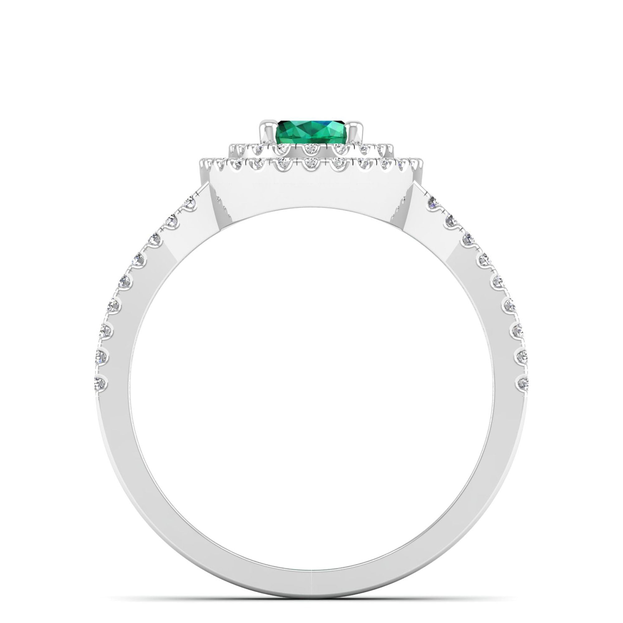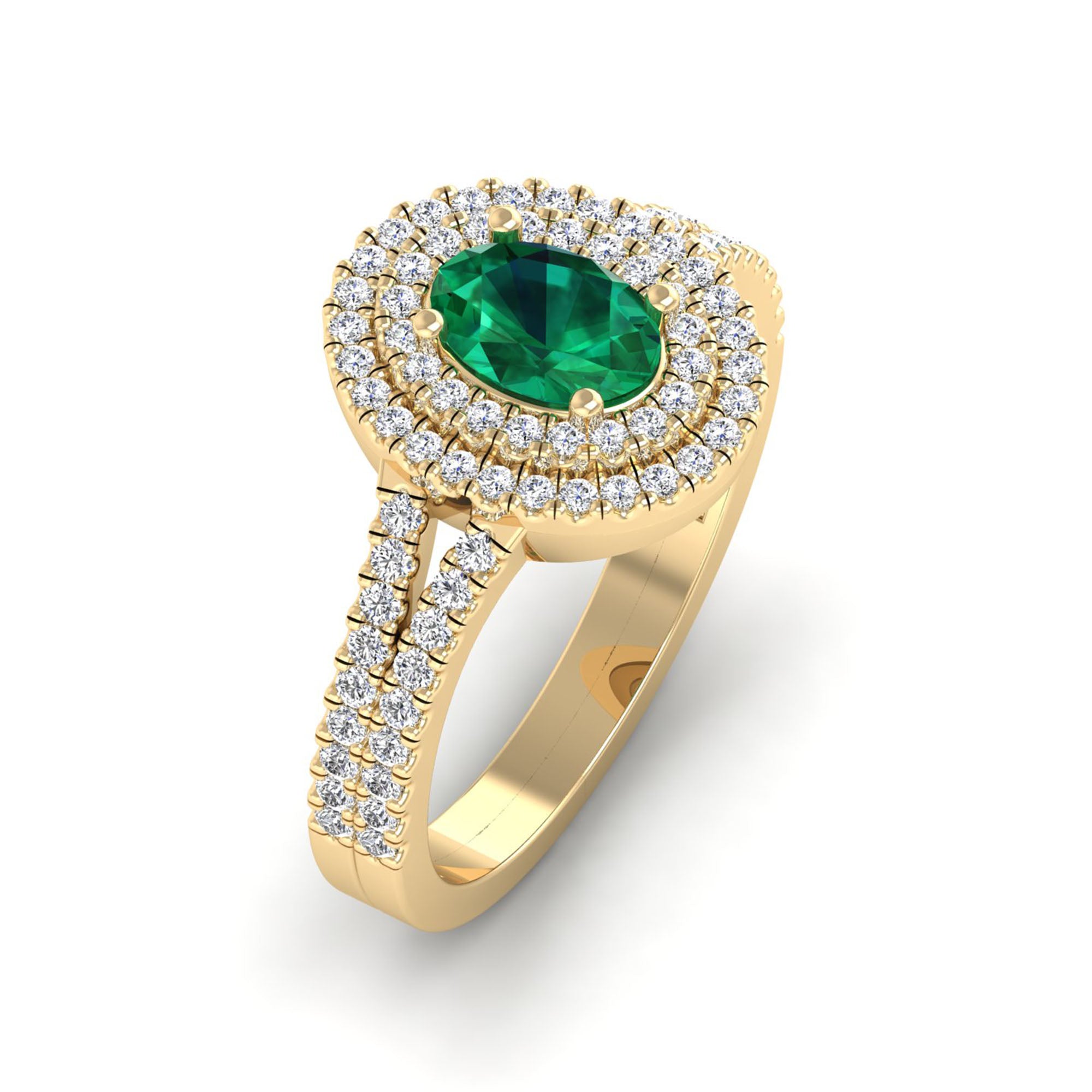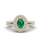Experience elegance and luxury with our Prong-Set Double Halo Oval Emerald and Infinity Diamond Ring. Designed with precision and expert craftsmanship, our ring features a stunning oval emerald stone surrounded by a double halo of sparkling diamonds.