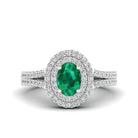 Prong-Set Double Halo Oval Emerald and Infinity Diamond Ring