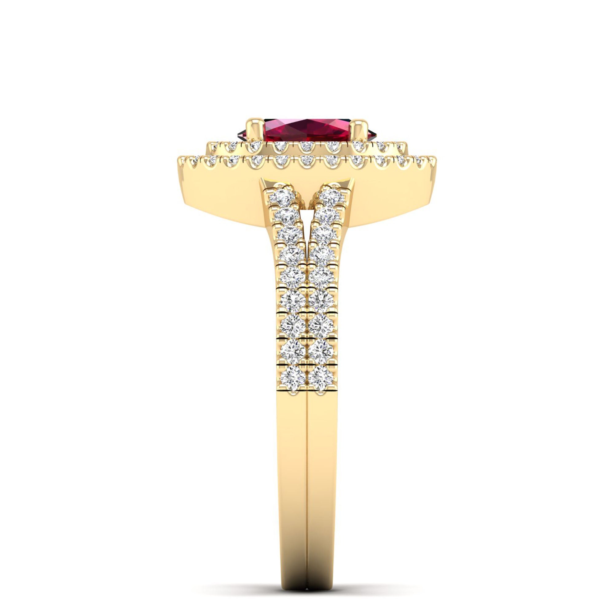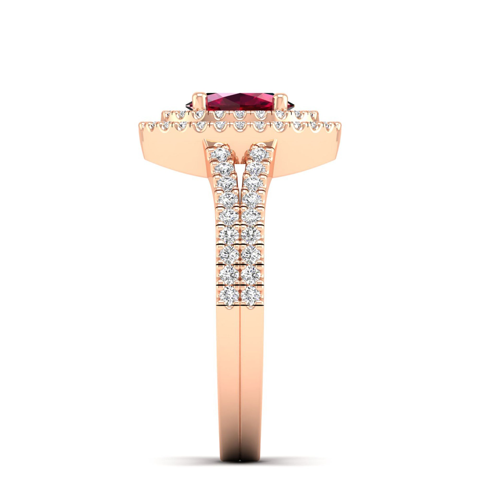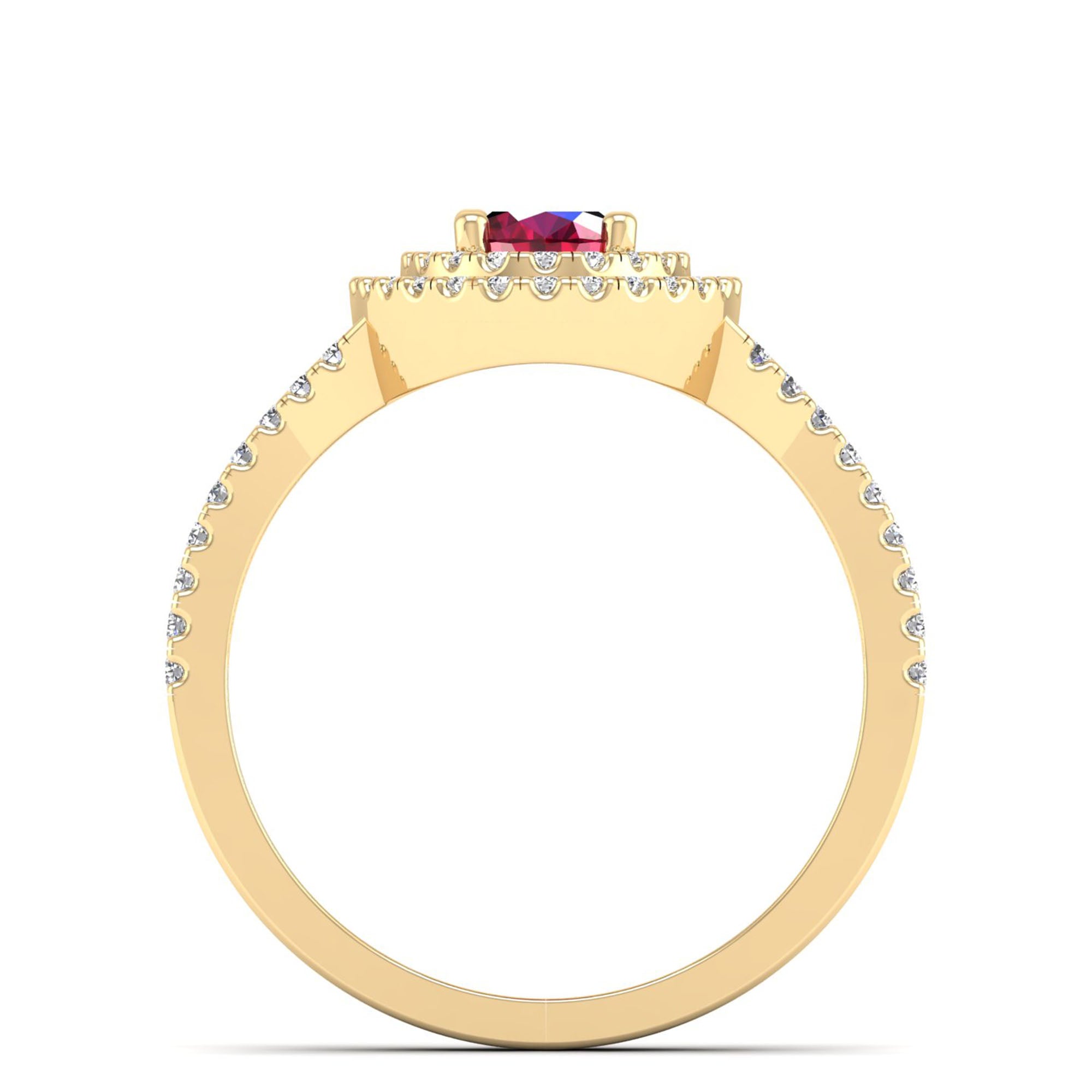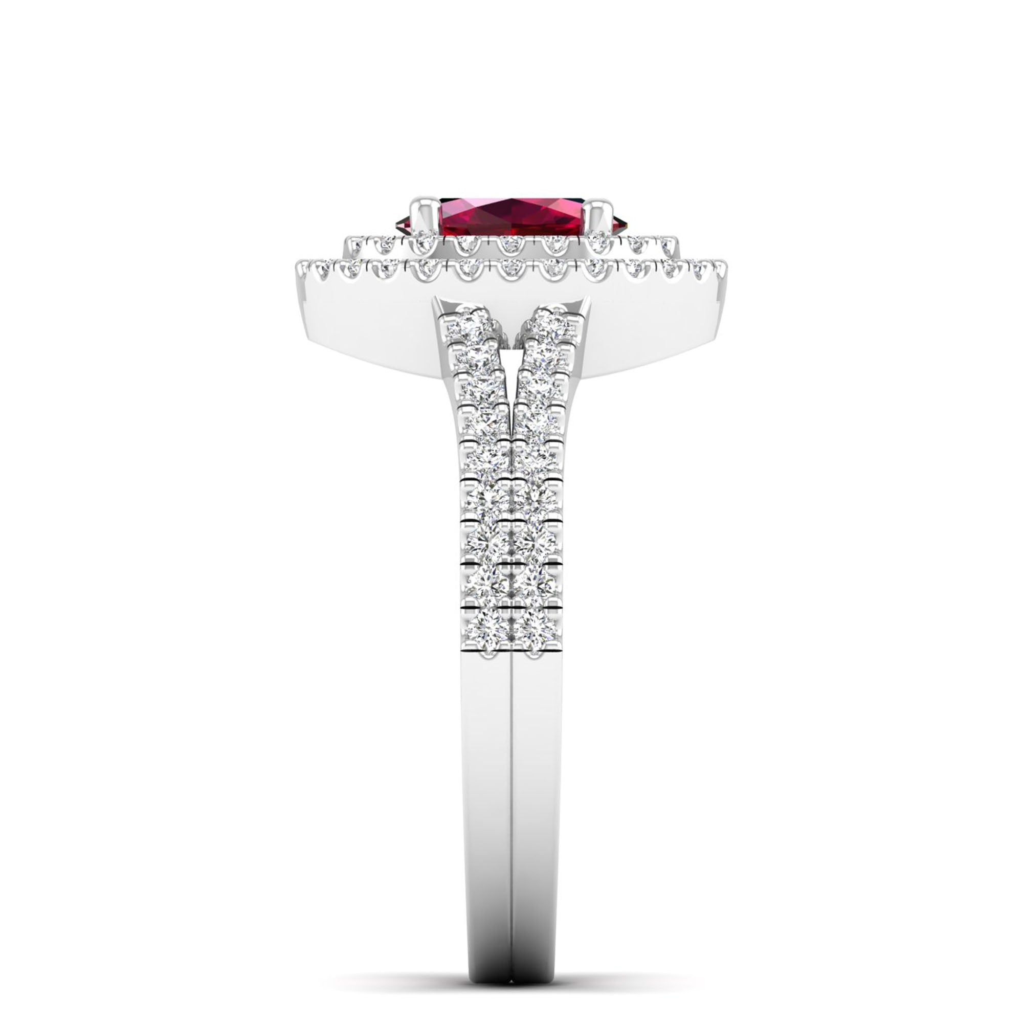 Experience elegance and luxury with our Prong-Set Double Halo Oval Ruby and Infinity Diamond Ring. Designed with precision and expert craftsmanship, our ring features a stunning oval ruby stone surrounded by a double halo of sparkling diamonds.