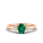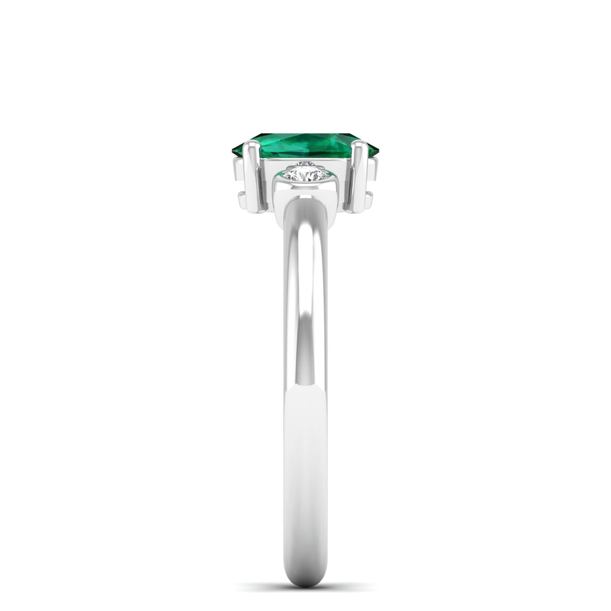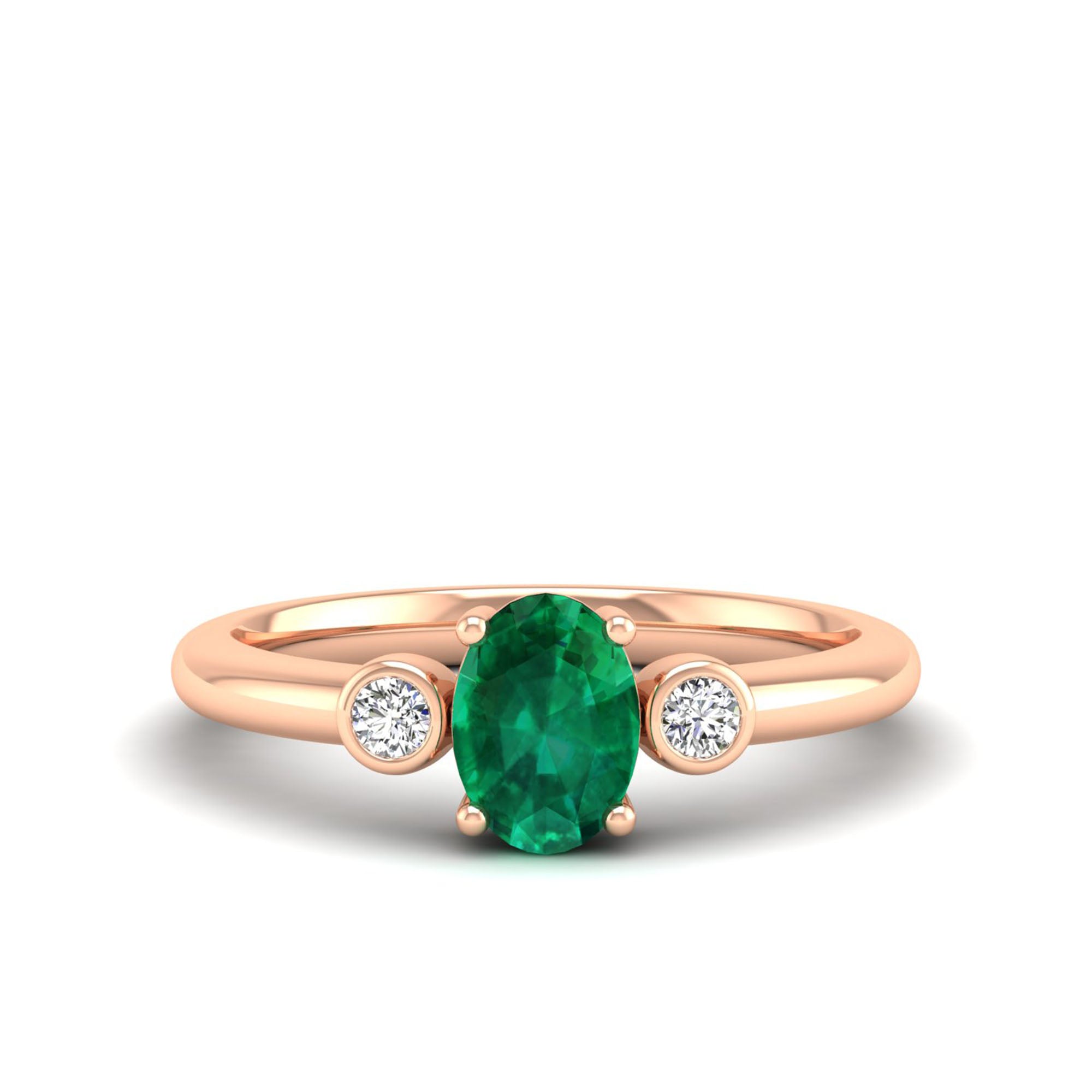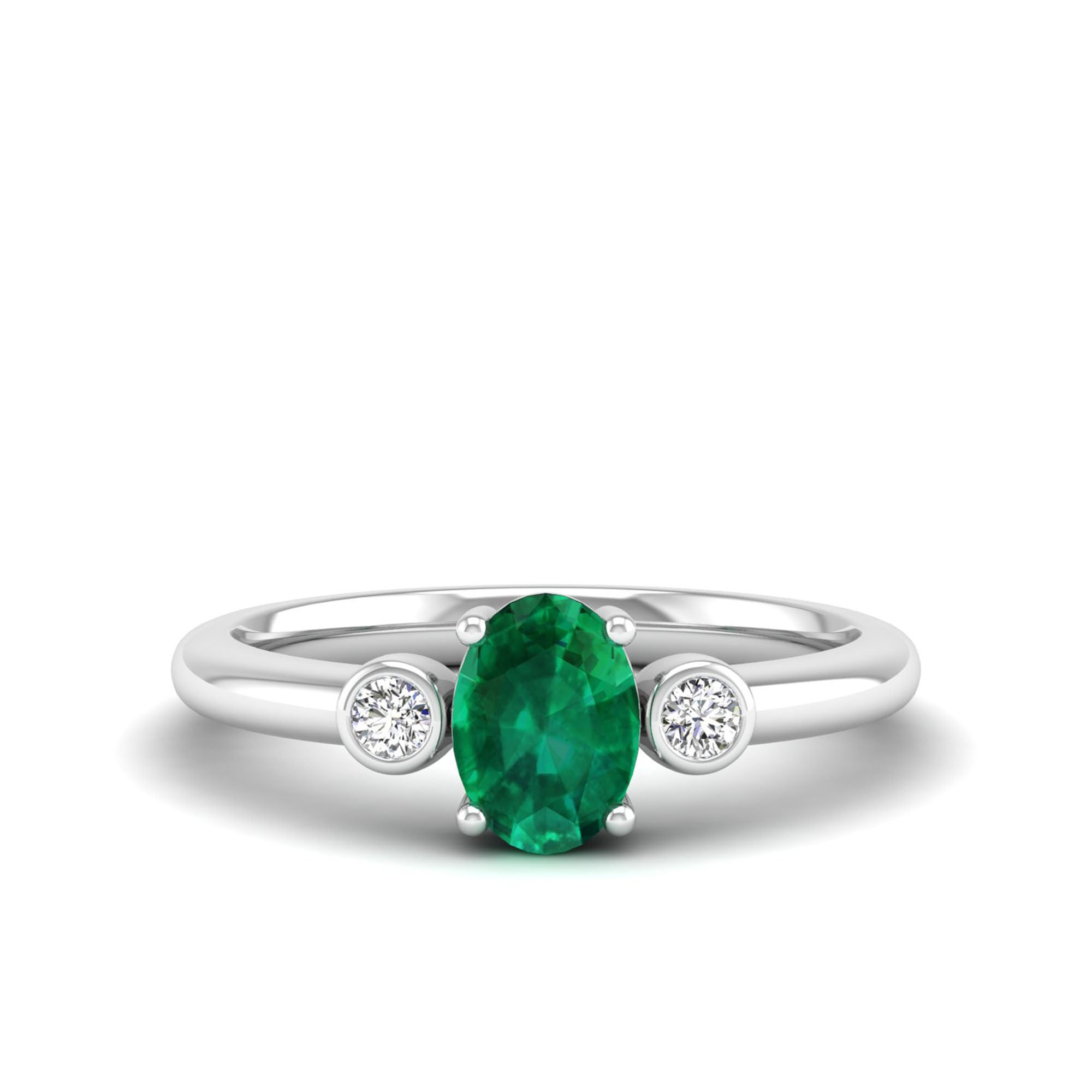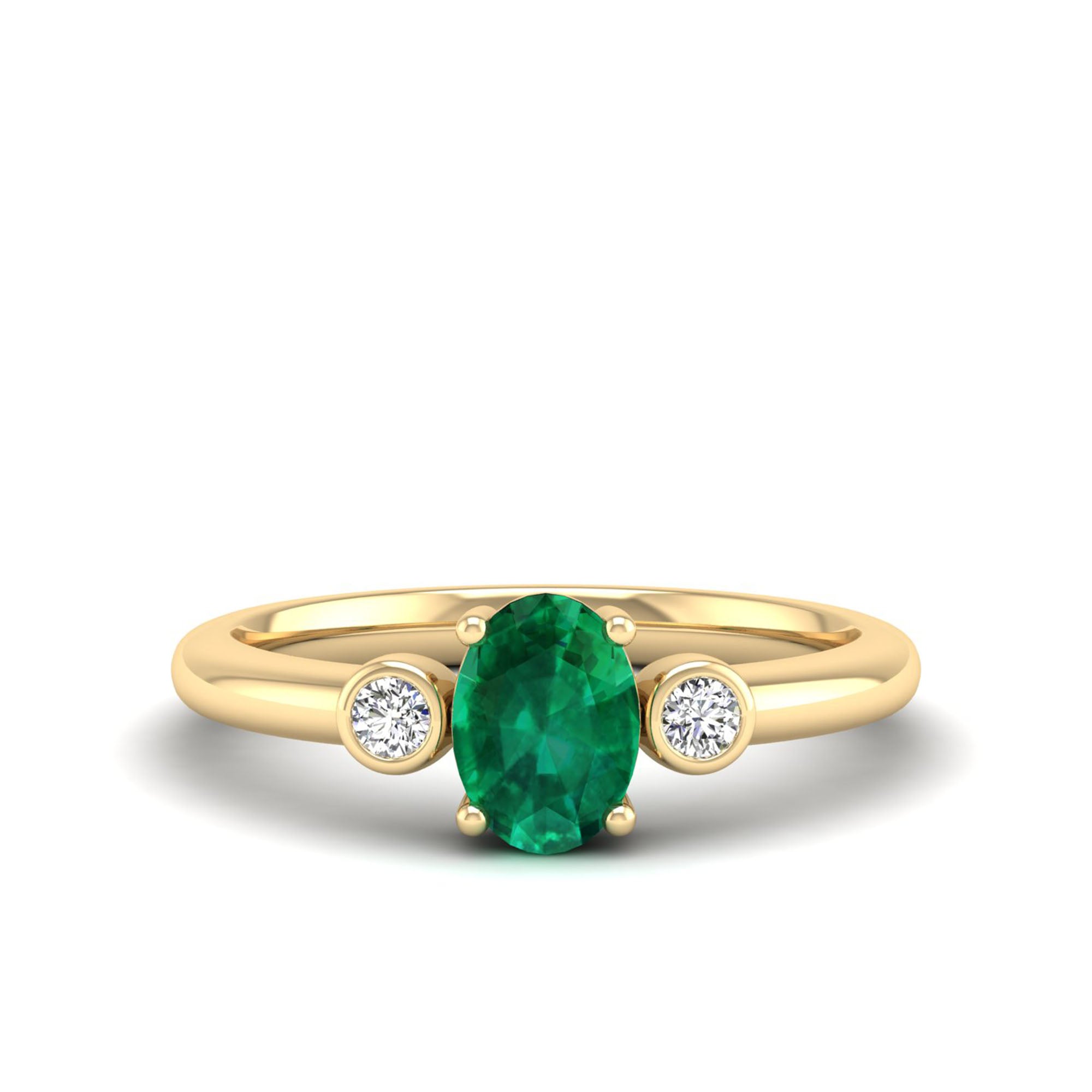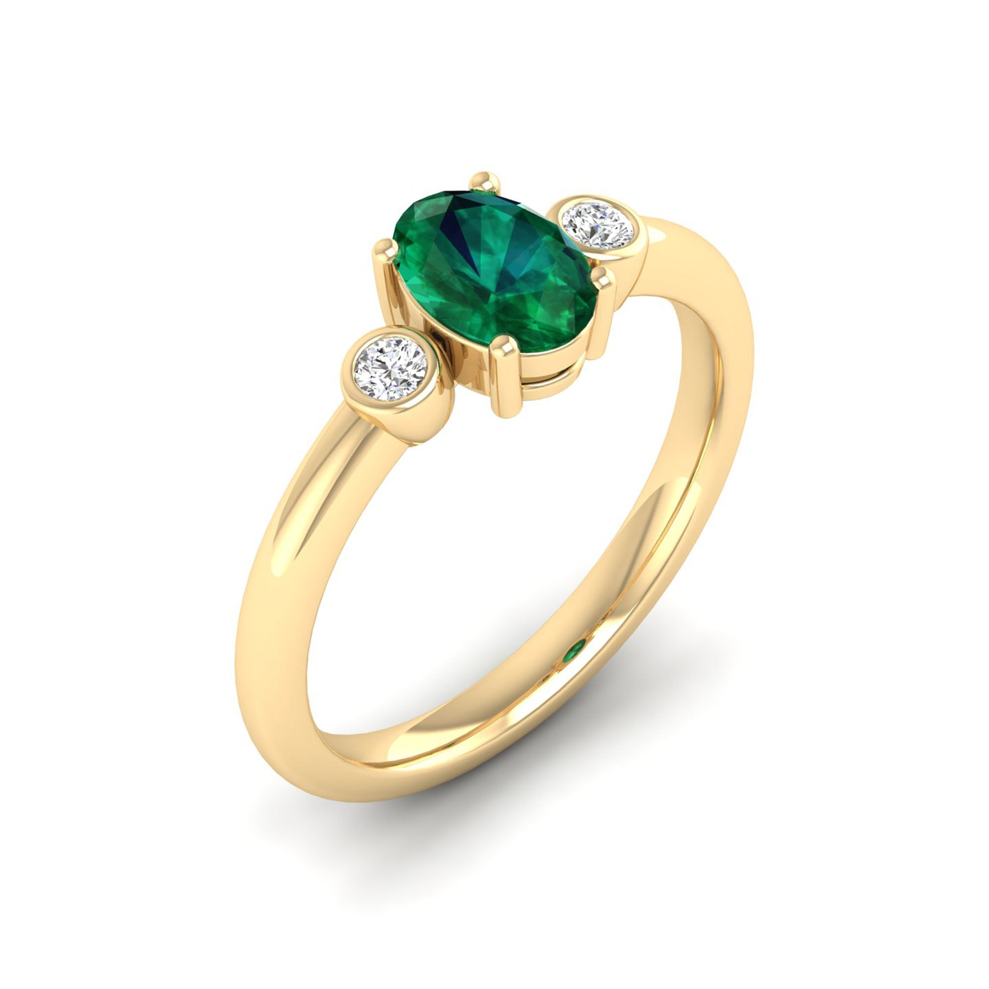 Prong-Set Oval Emerald and Bezel Diamond Ring