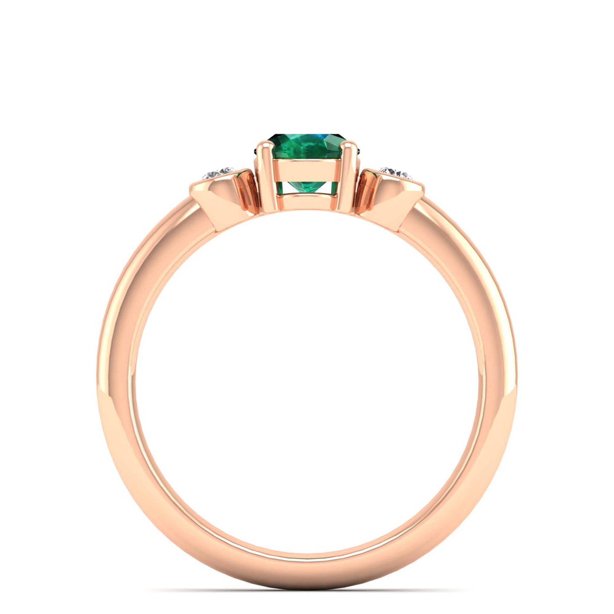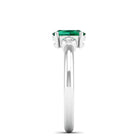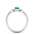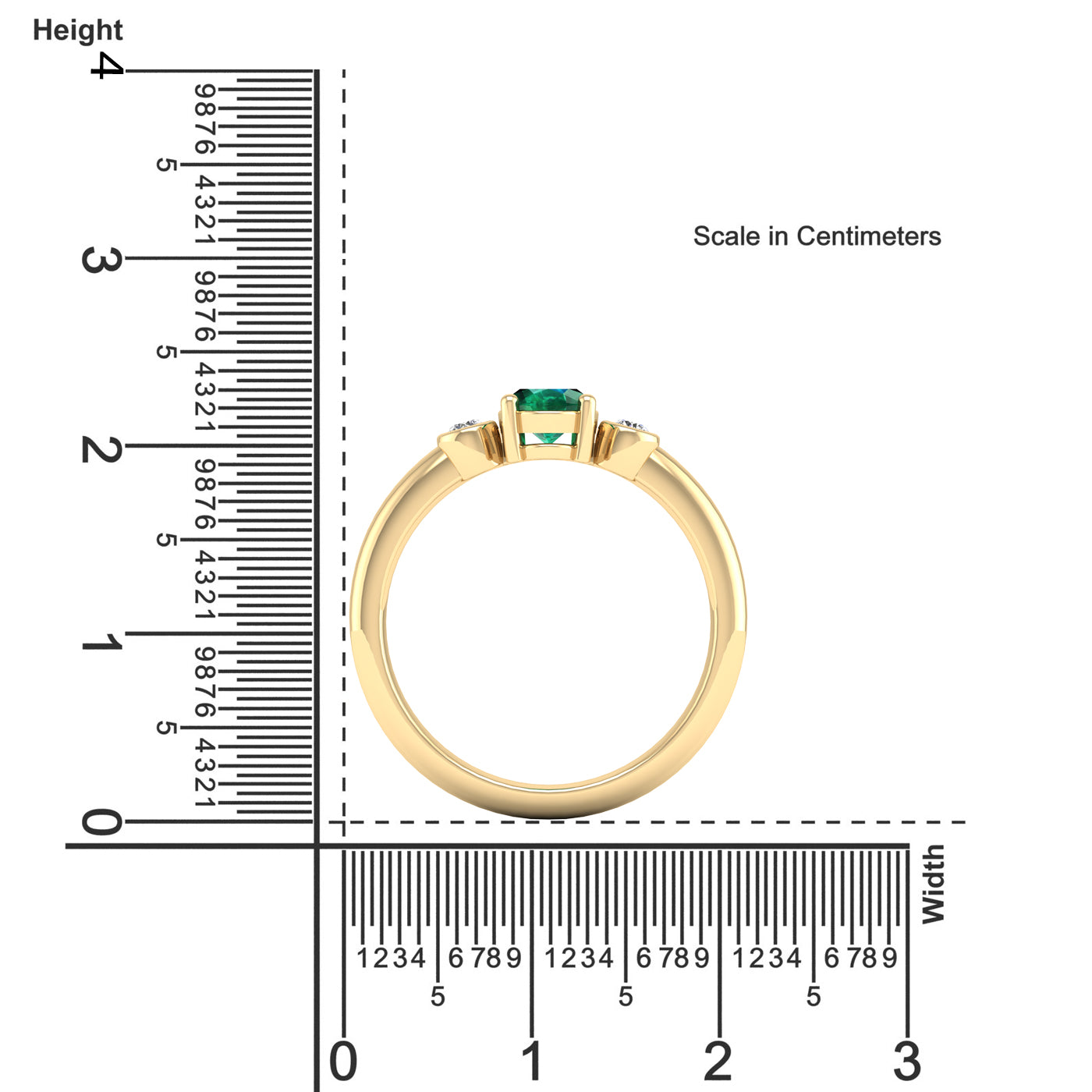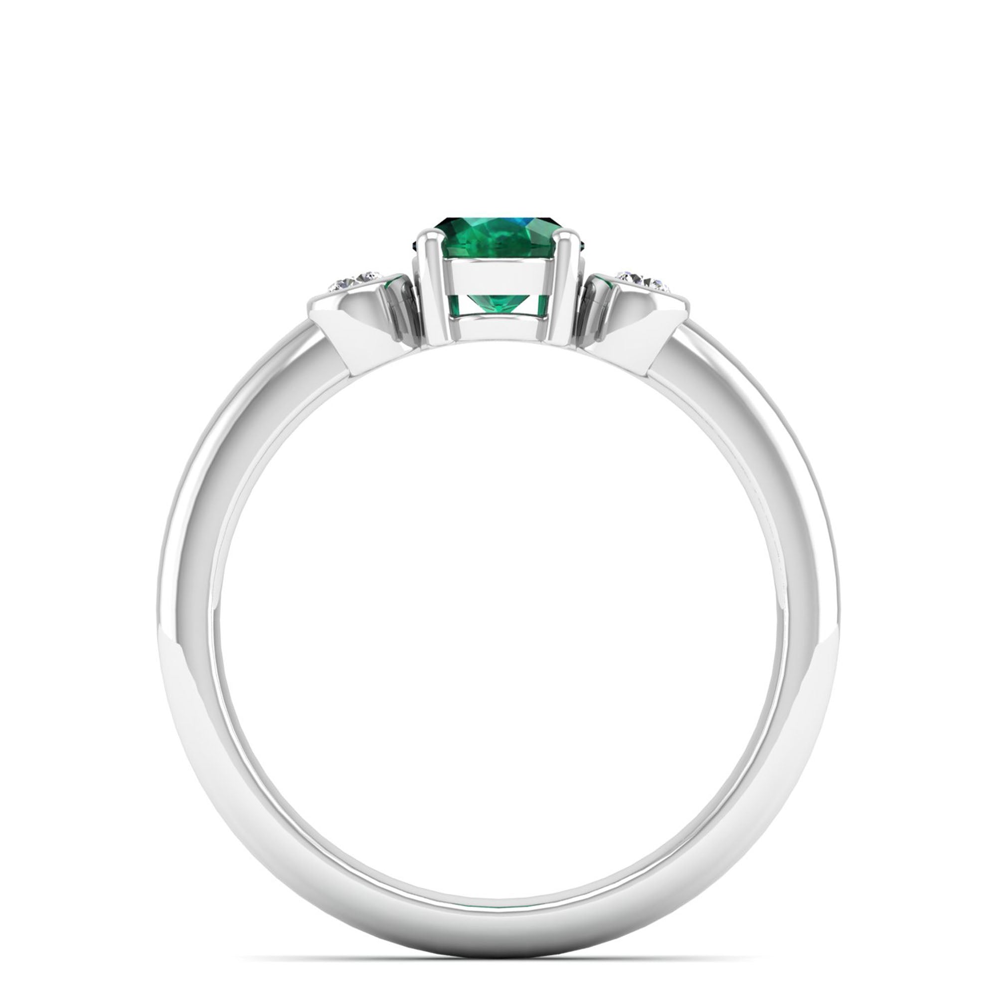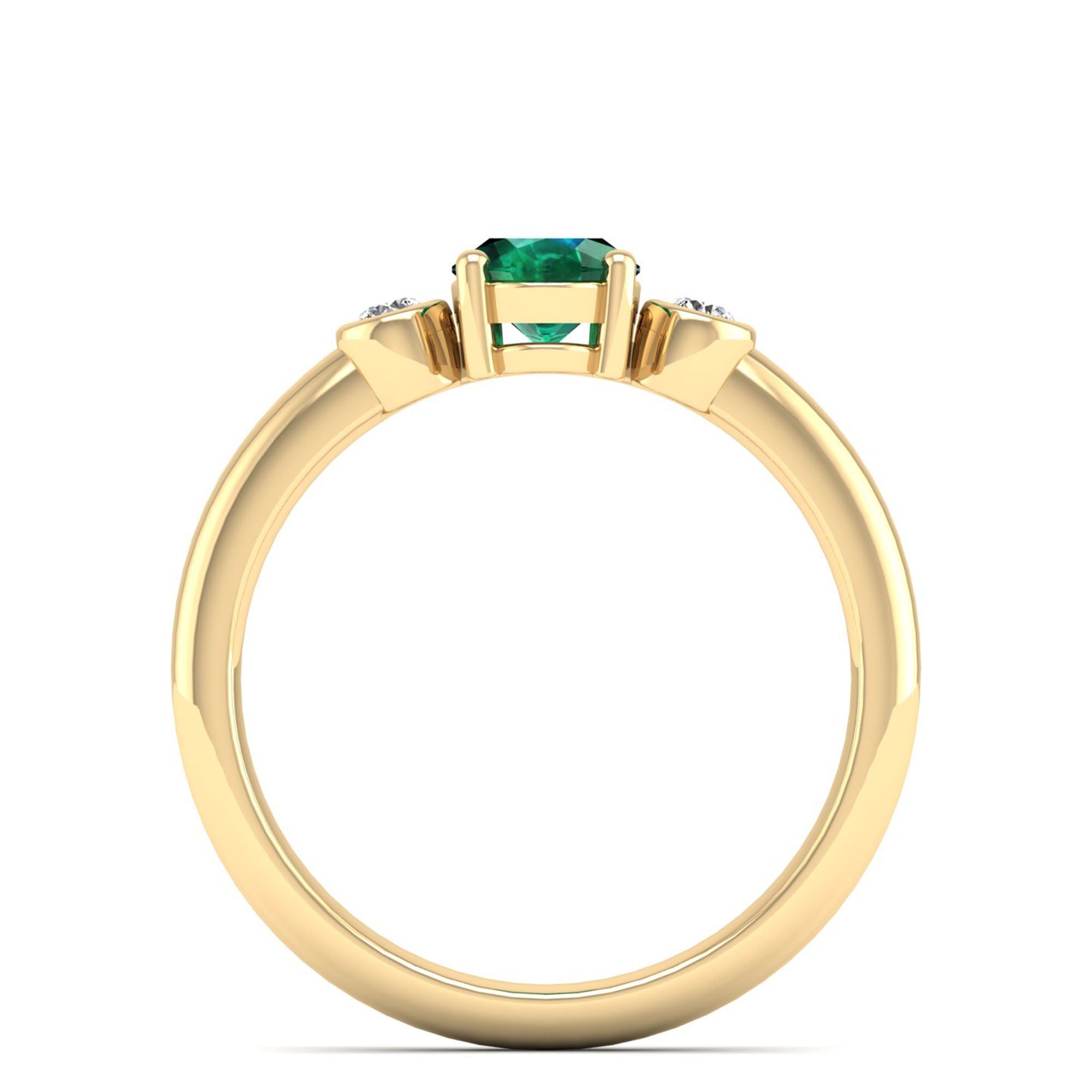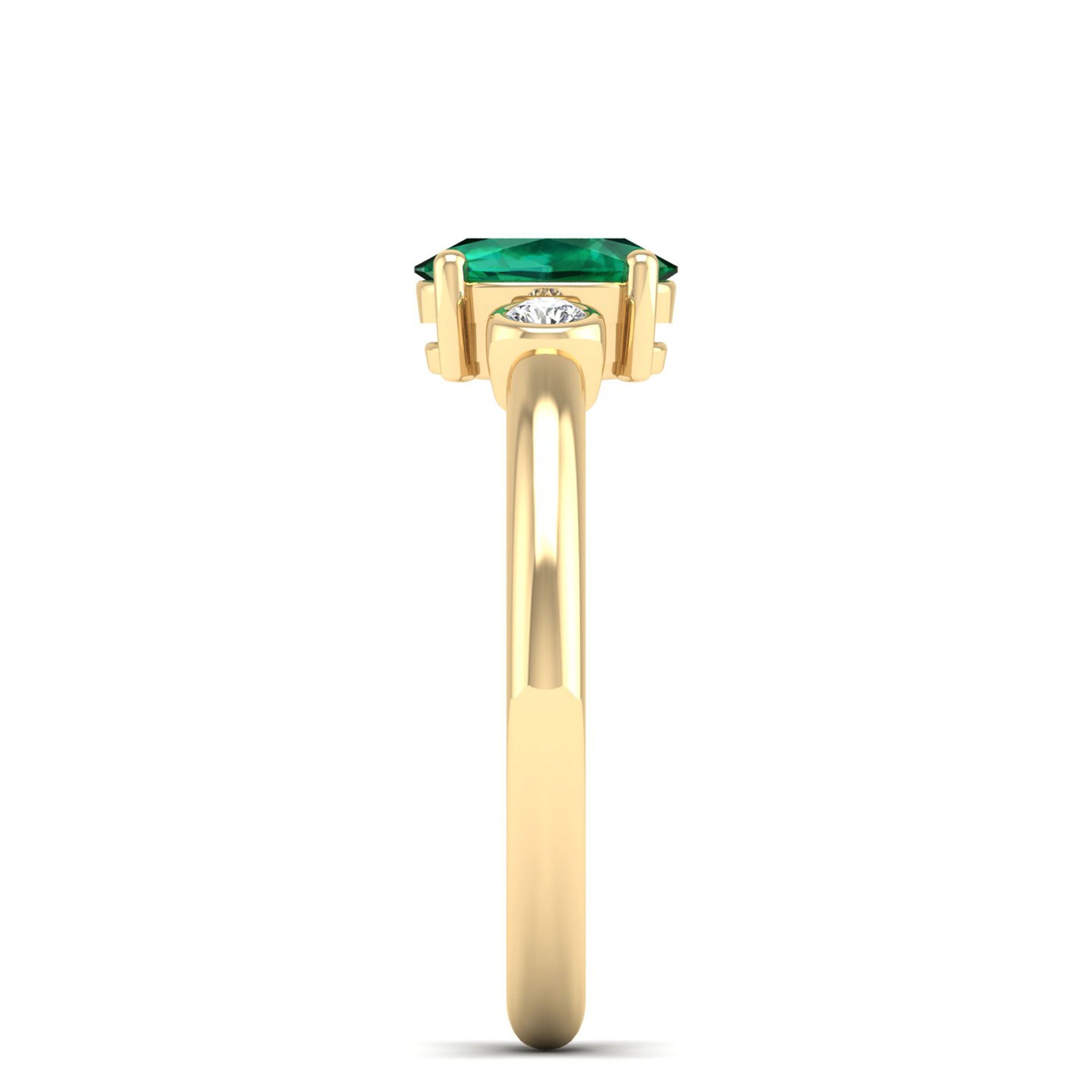 This stunning ring features a prong-set oval emerald and bezel diamond accents, making it a timeless and elegant piece of jewelry.