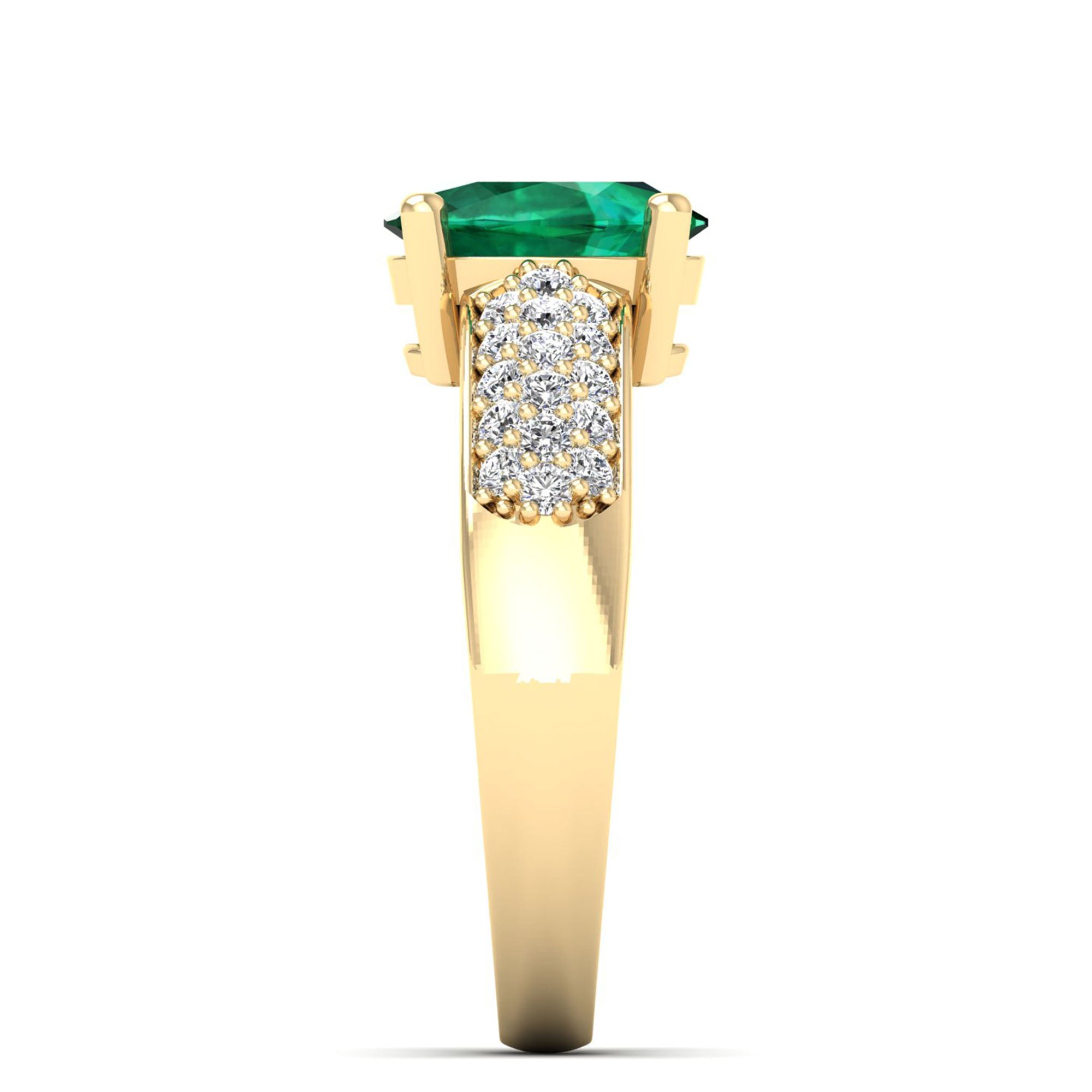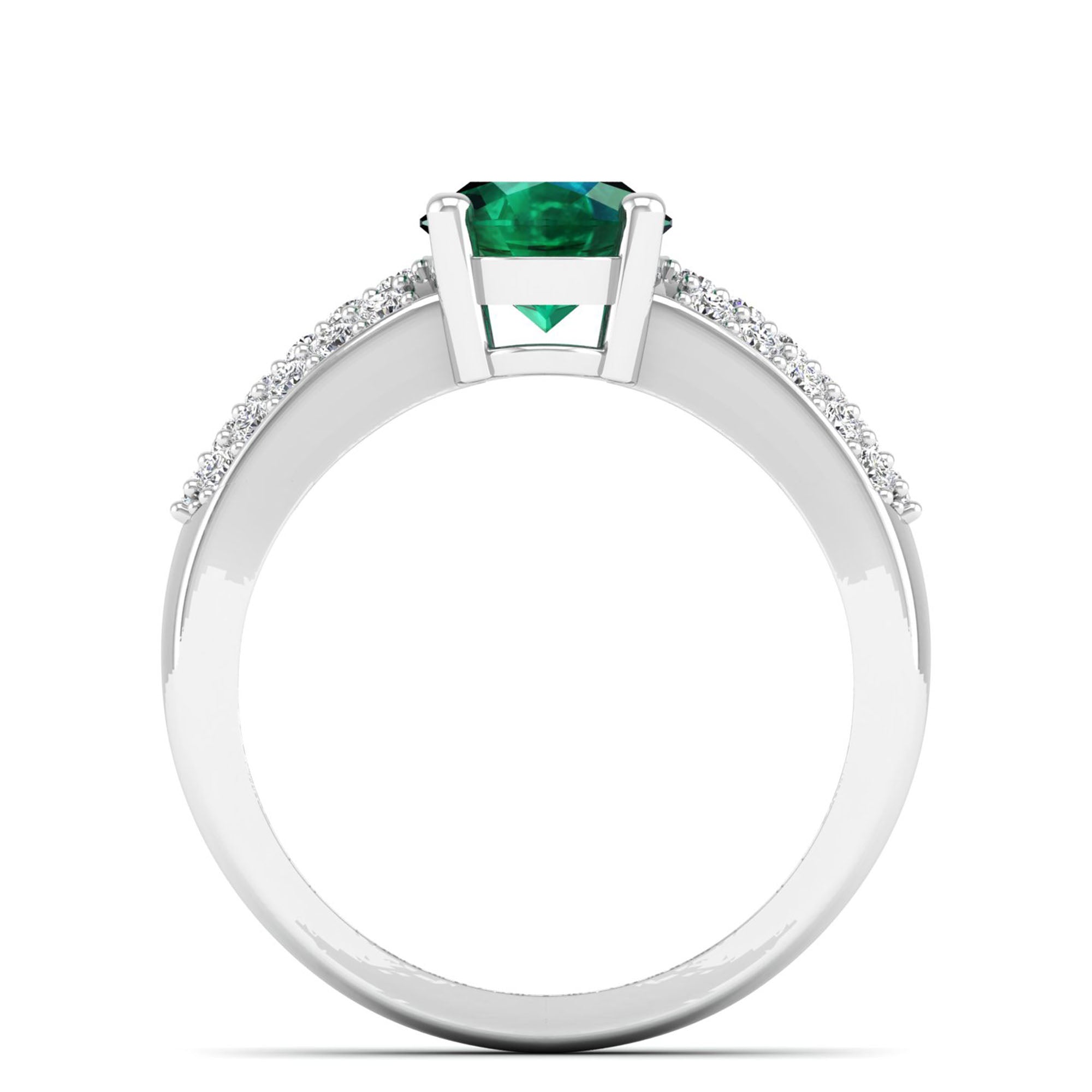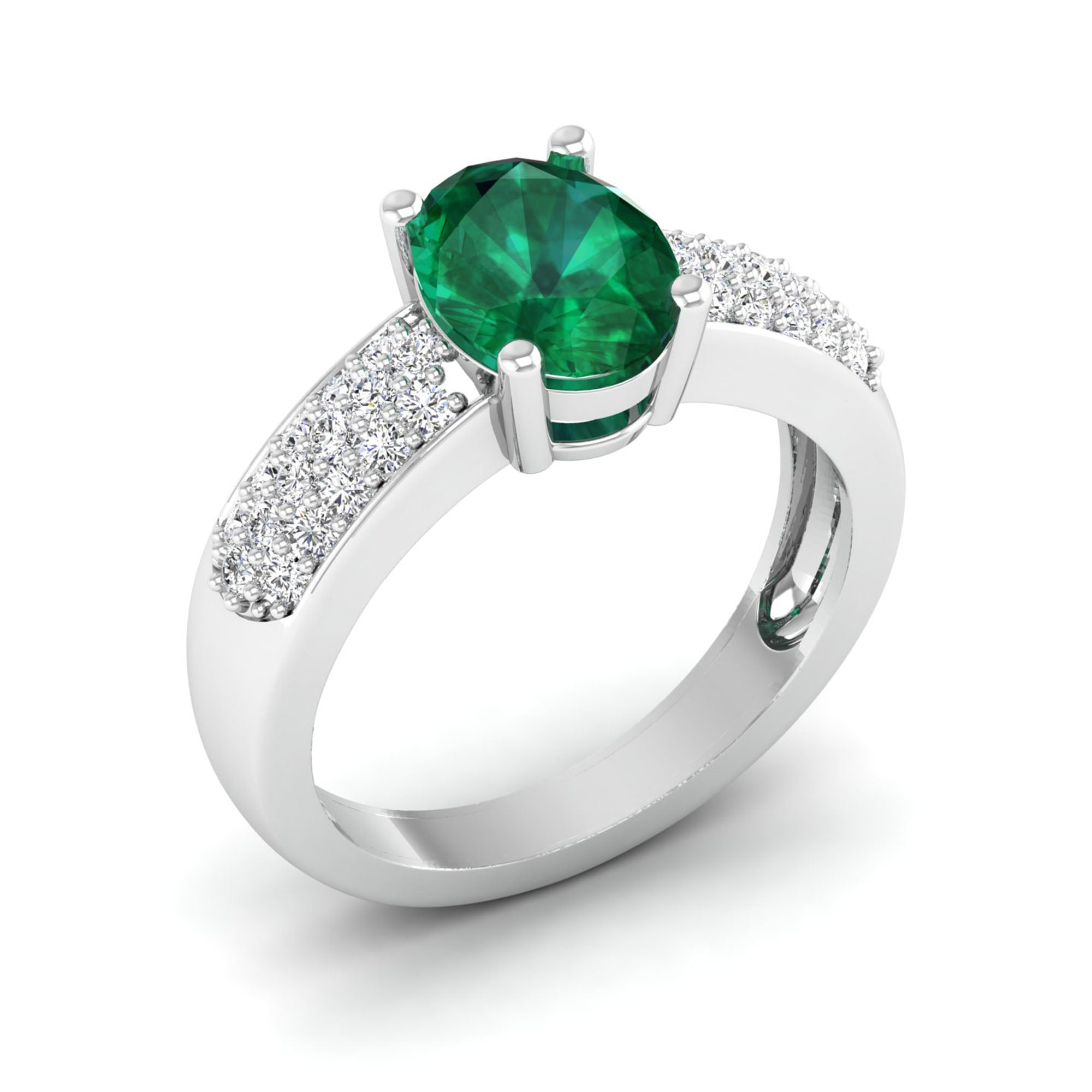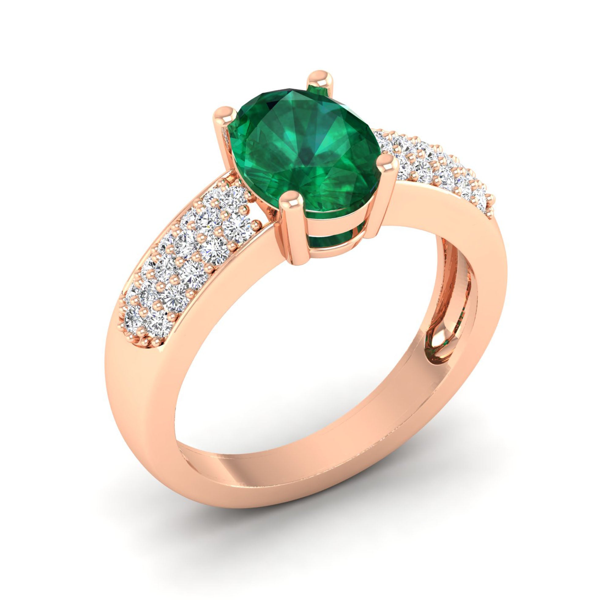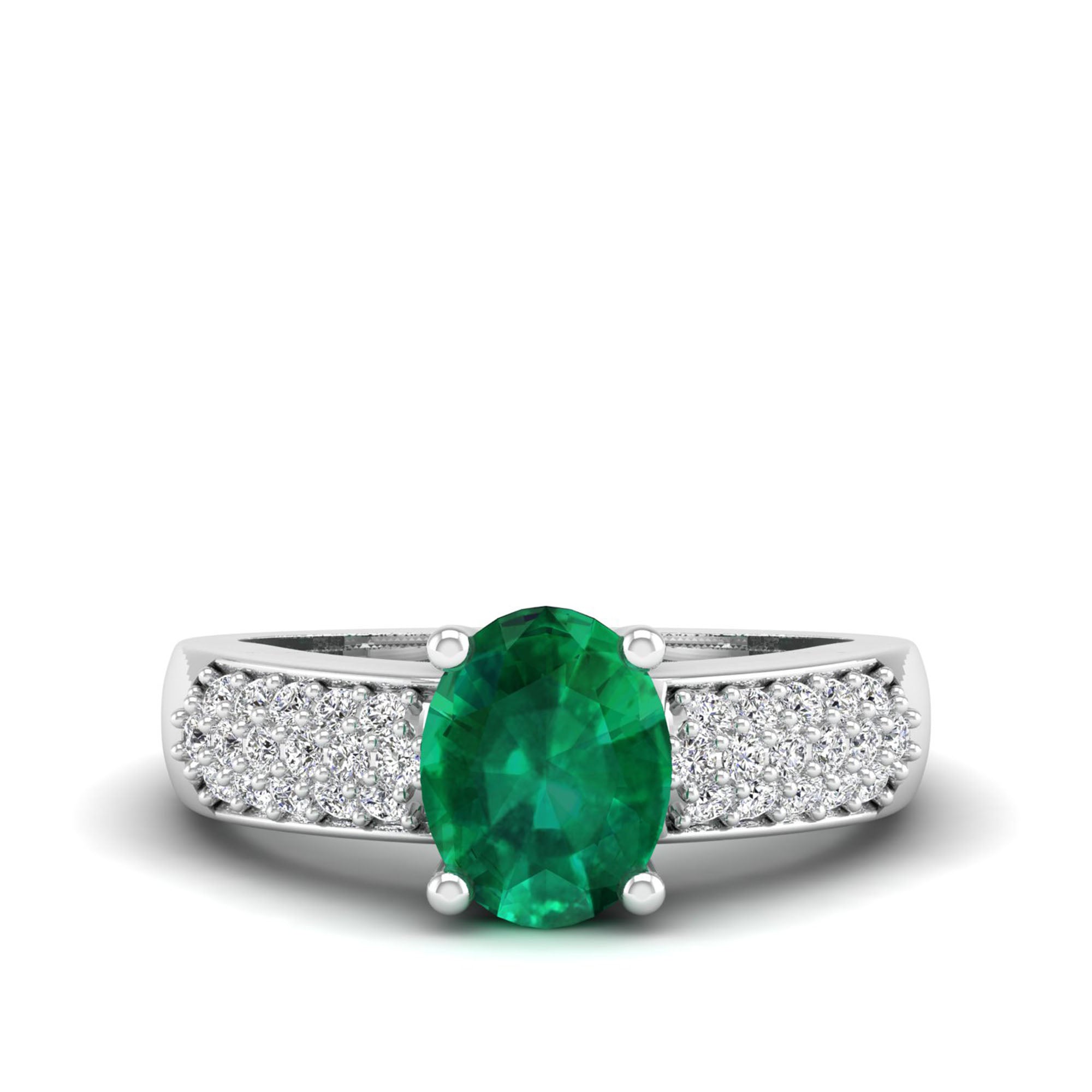This elegant Prong Set Oval Emerald and Diamond Ring features a sparkling emerald stone and stunning diamond accents. The prong setting ensures a secure fit for everyday wear. Perfect for adding a touch of timeless sophistication to any outfit.