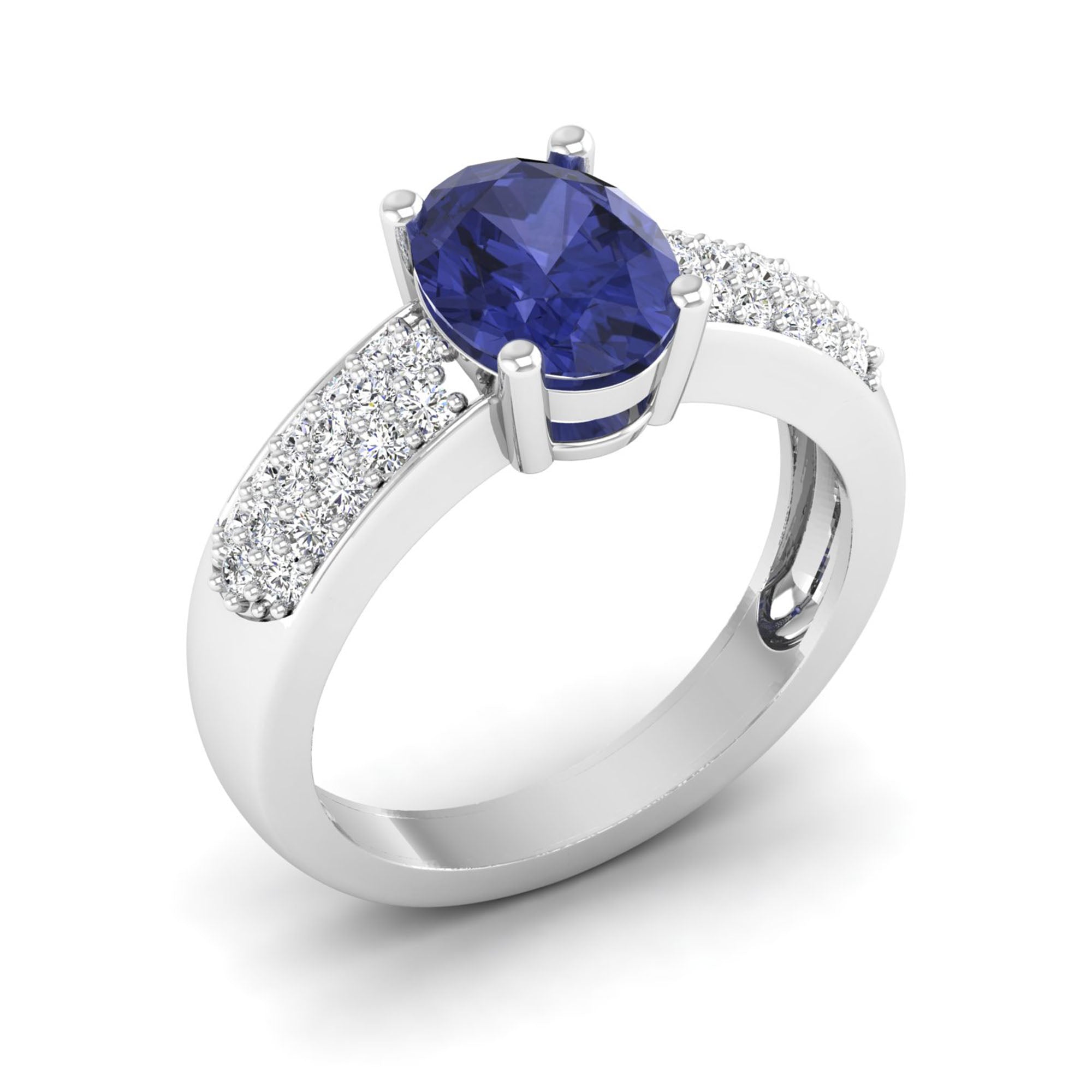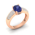 Prong Set Oval Tanzanite and Diamond Ring
