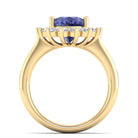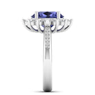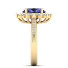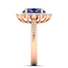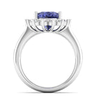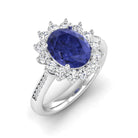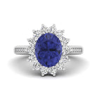 Prong Set Oval Tanzanite Sunburst Diamond Halo Ring