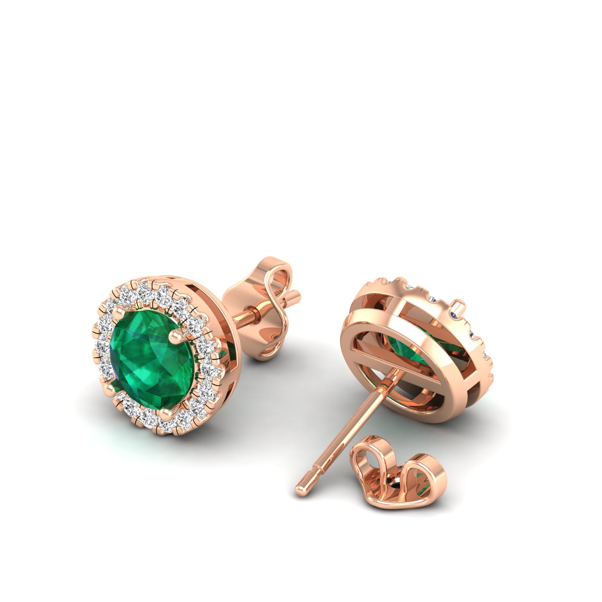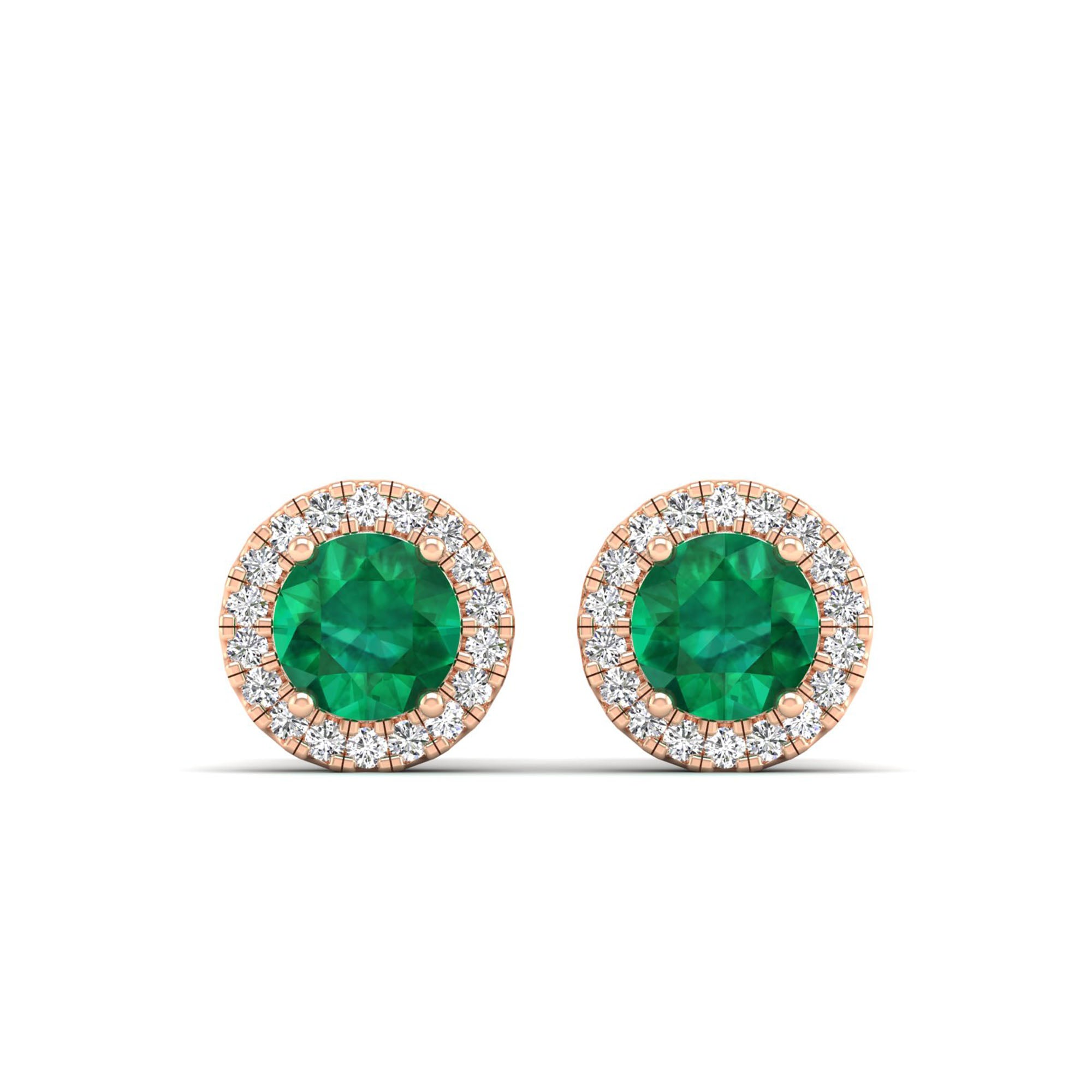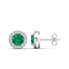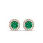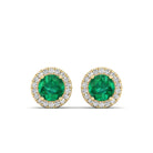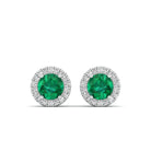 Round Emerald Halo Diamond Stud Earrings