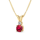 Add a touch of elegance to your look with our Round Ruby and Diamond Pendant. Made with high-quality materials, this pendant features a stunning ruby gemstone surrounded by sparkling diamonds.