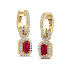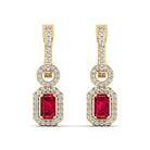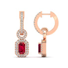 Ruby and Halo Diamond Dangle Earrings
