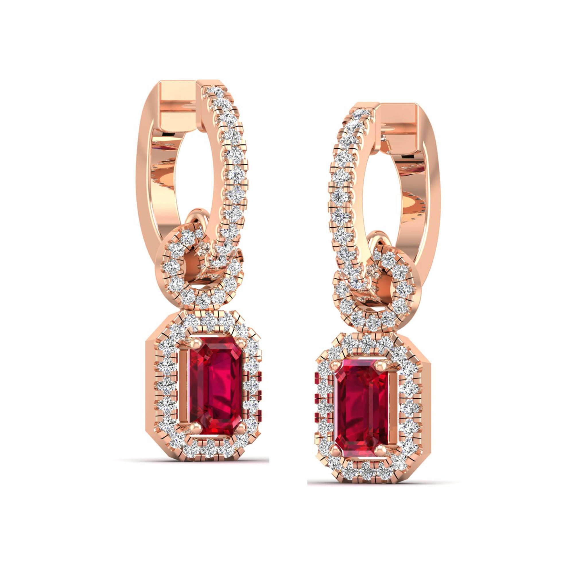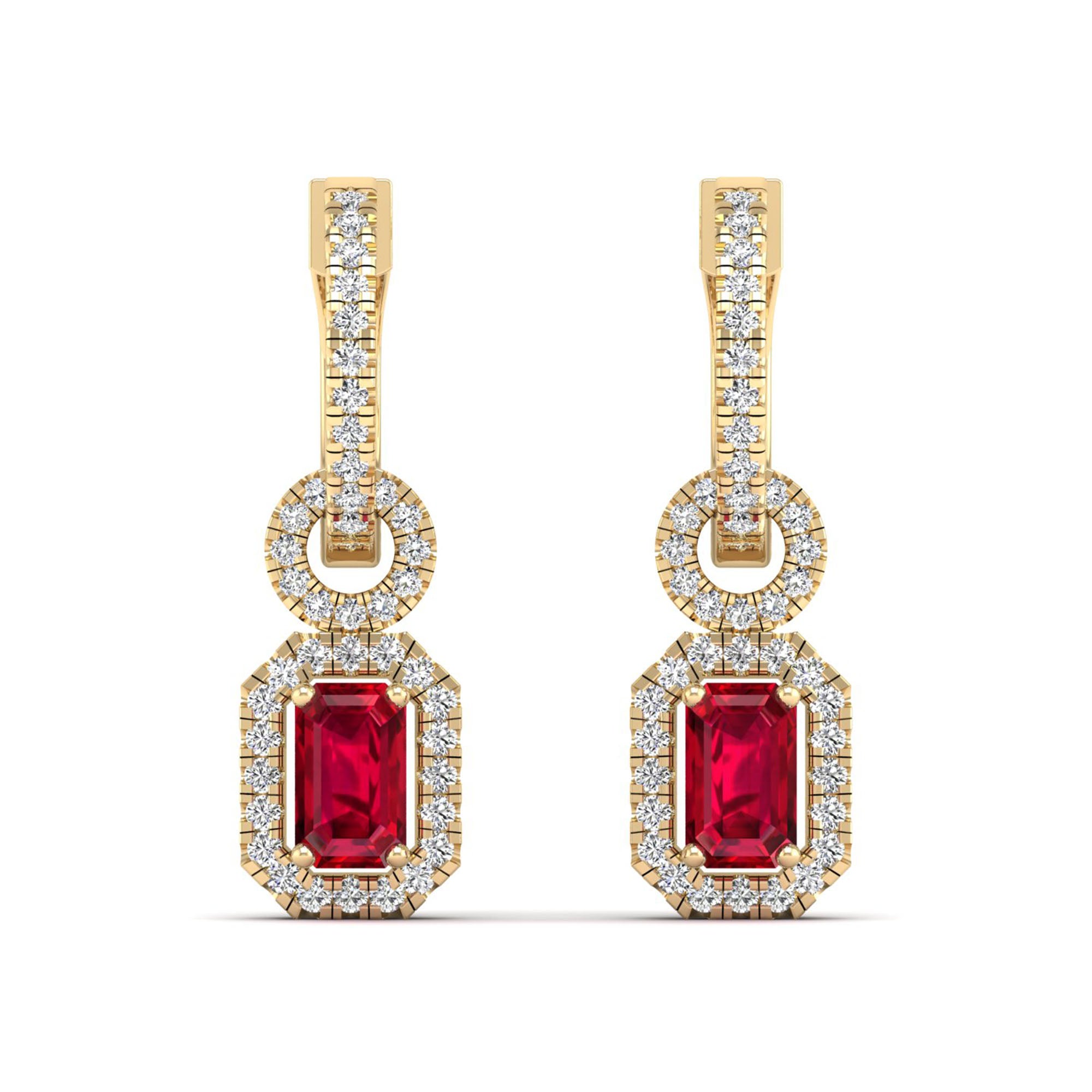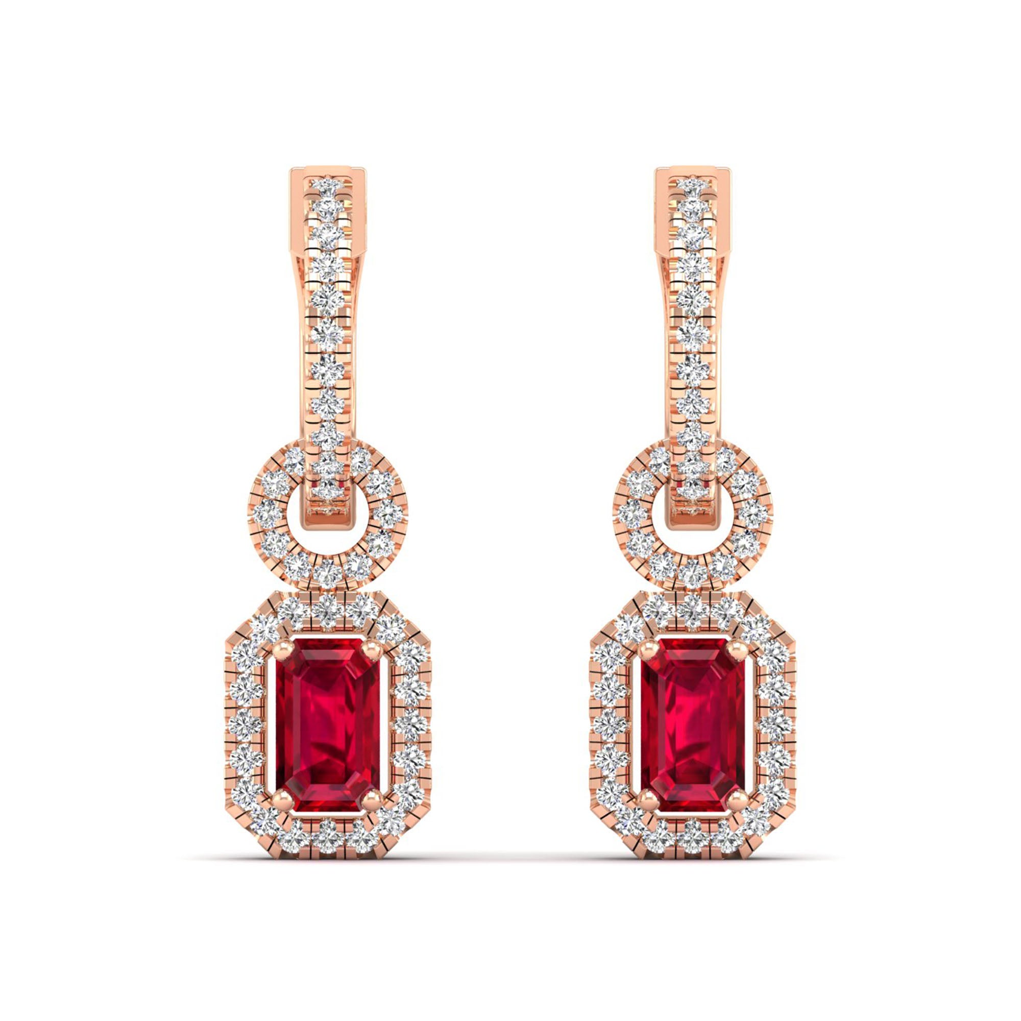 Expertly crafted from brilliant ruby and halo diamonds, these dangle earrings are a showstopper. With exceptional sparkle and radiance, they add a touch of elegance and sophistication to any outfit.