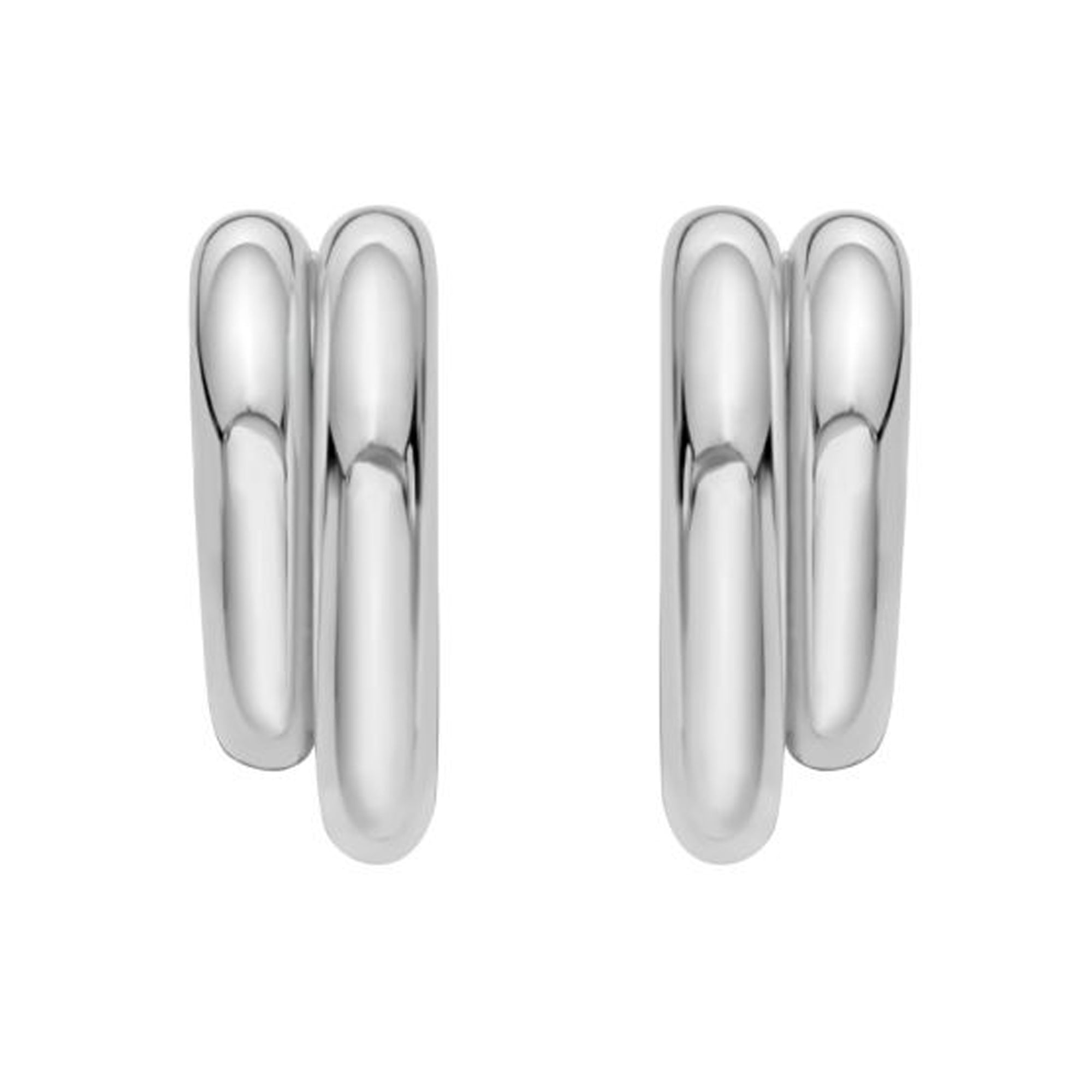 Sterling Silver Double Row Big & Small Round Hoops with Push Back Clasp