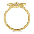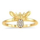An eye-catching diamond Petite fashion ring, this captures your attention as soon as you lay eyes on it. The ring features a bumble bee motif centerpiece that is not only beautifully cutout but is also elegantly decorated with diamonds to add to its aesthetic appeal. While the upper body of the bee, along with its wings is plain gold, the lower body that is the abdomen is embellished with 14 pave set round cut diamonds. A plain gold straight shank completes the ring, which is styled in 14 karat yellow gold.