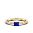 This stackable band showcases a beautiful arrangement of sapphires and diamonds set in an east-west orientation. The unique design allows for easy stacking and versatility in styling, making it a perfect addition to any jewelry collection.