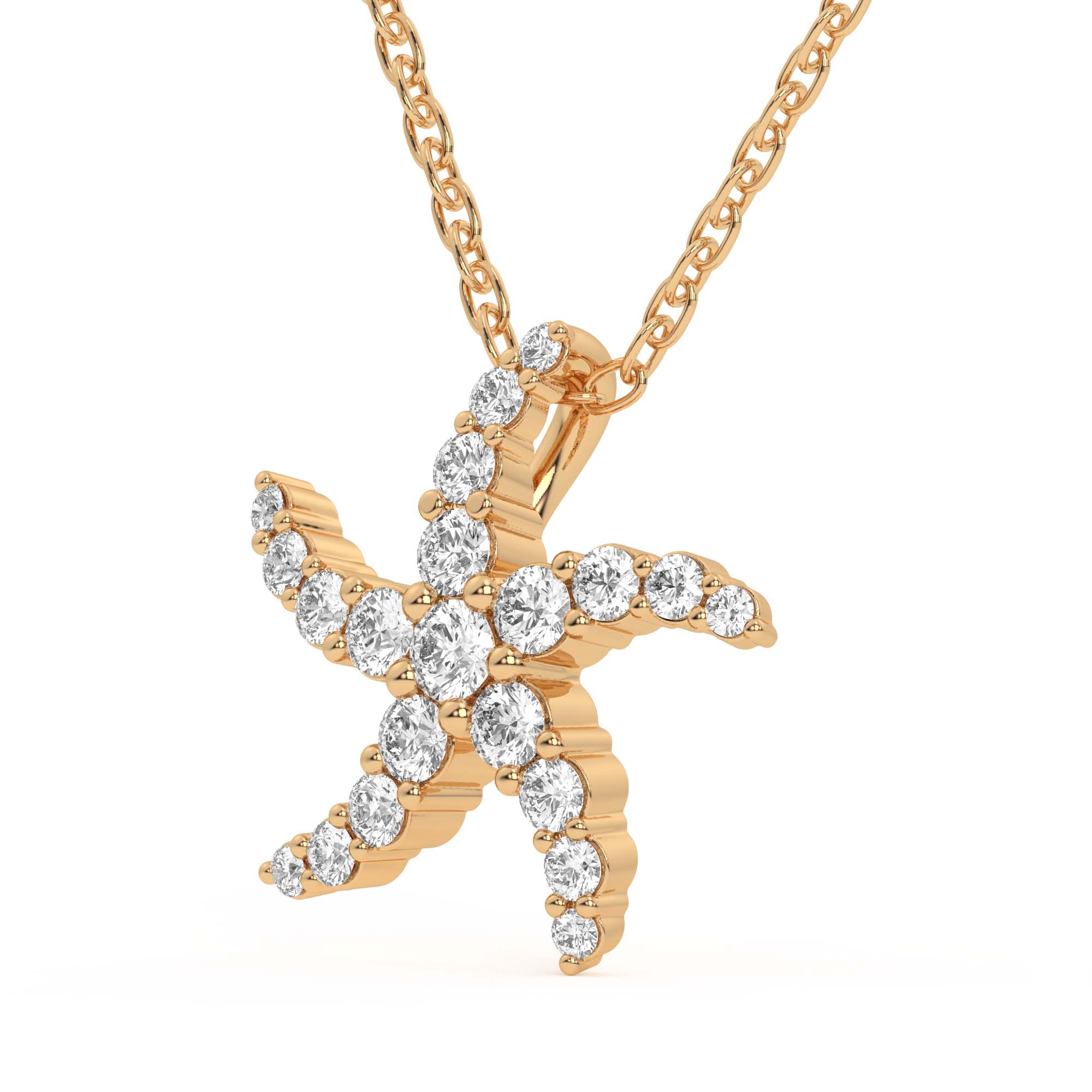 Elevate your elegance with the Starfish Diamond Pendant, expertly crafted to capture the delicate beauty of the ocean. Featuring precisely set diamonds that enhance its shimmering appeal, this pendant offers a refined statement piece suitable for both everyday wear and special occasions.
