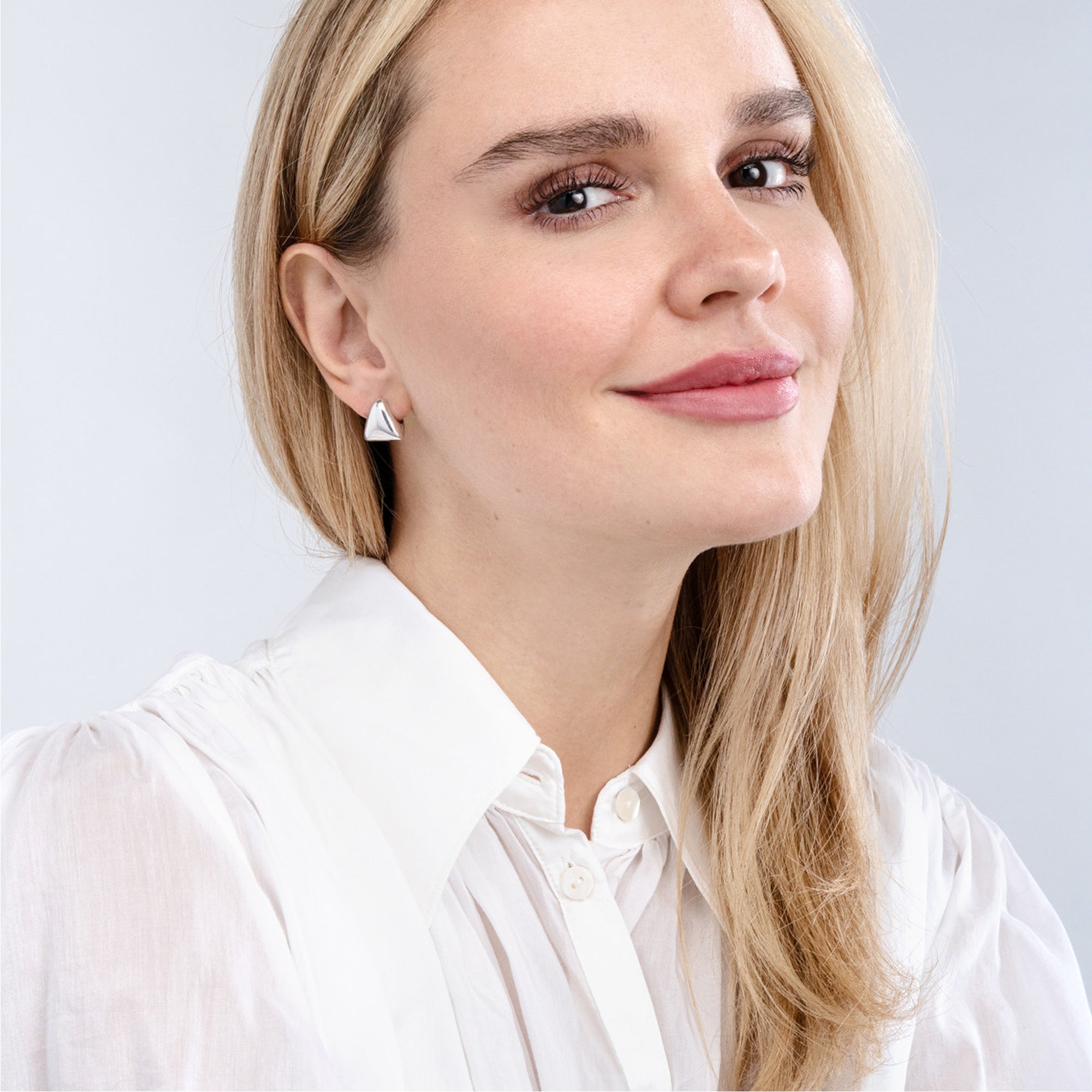 Soft and bold Square hoops to elevate your ear stack. These hoops secure with comfort and are crafted in sterling silver.