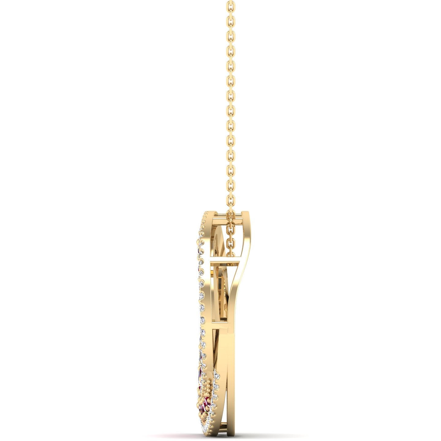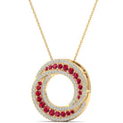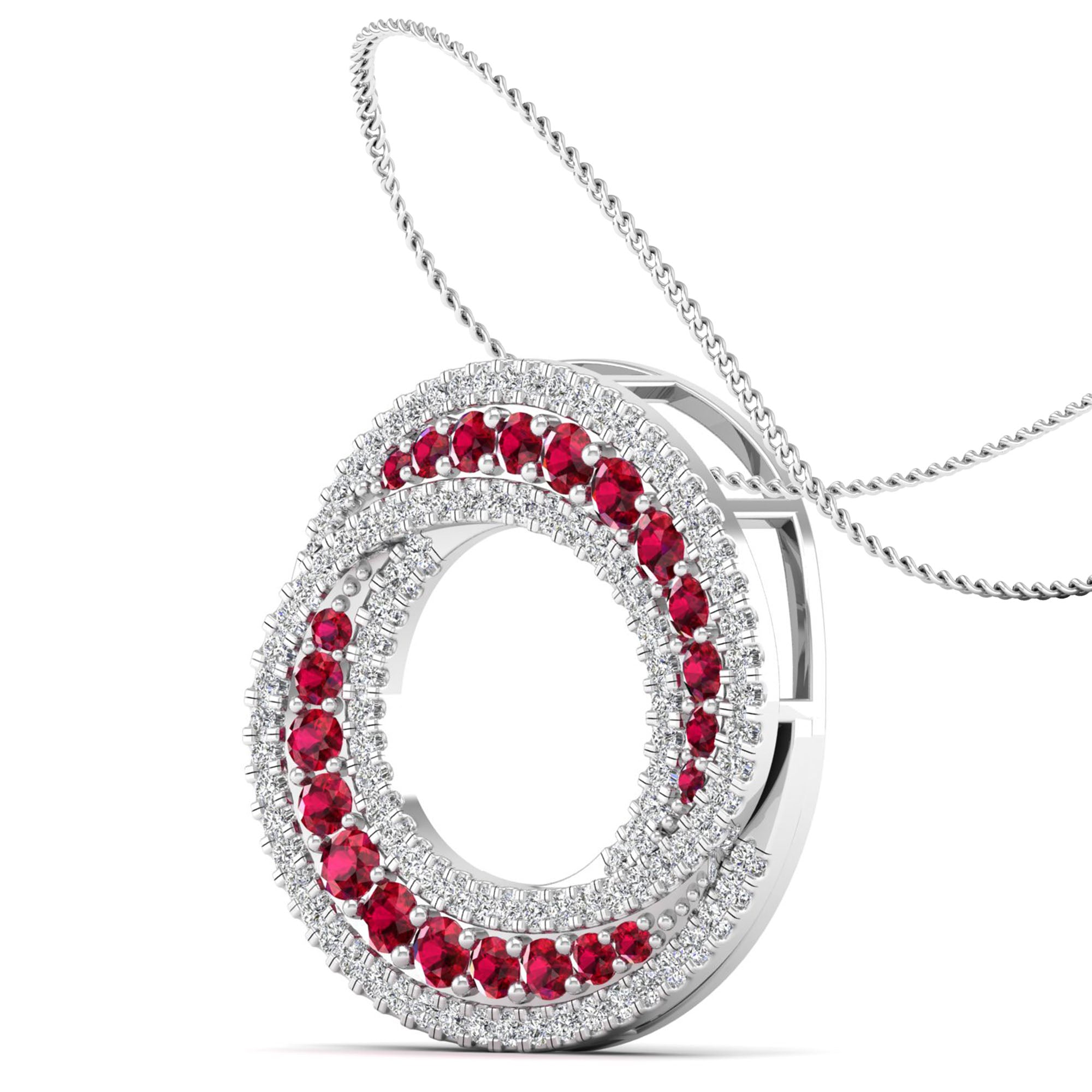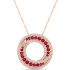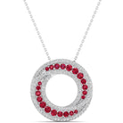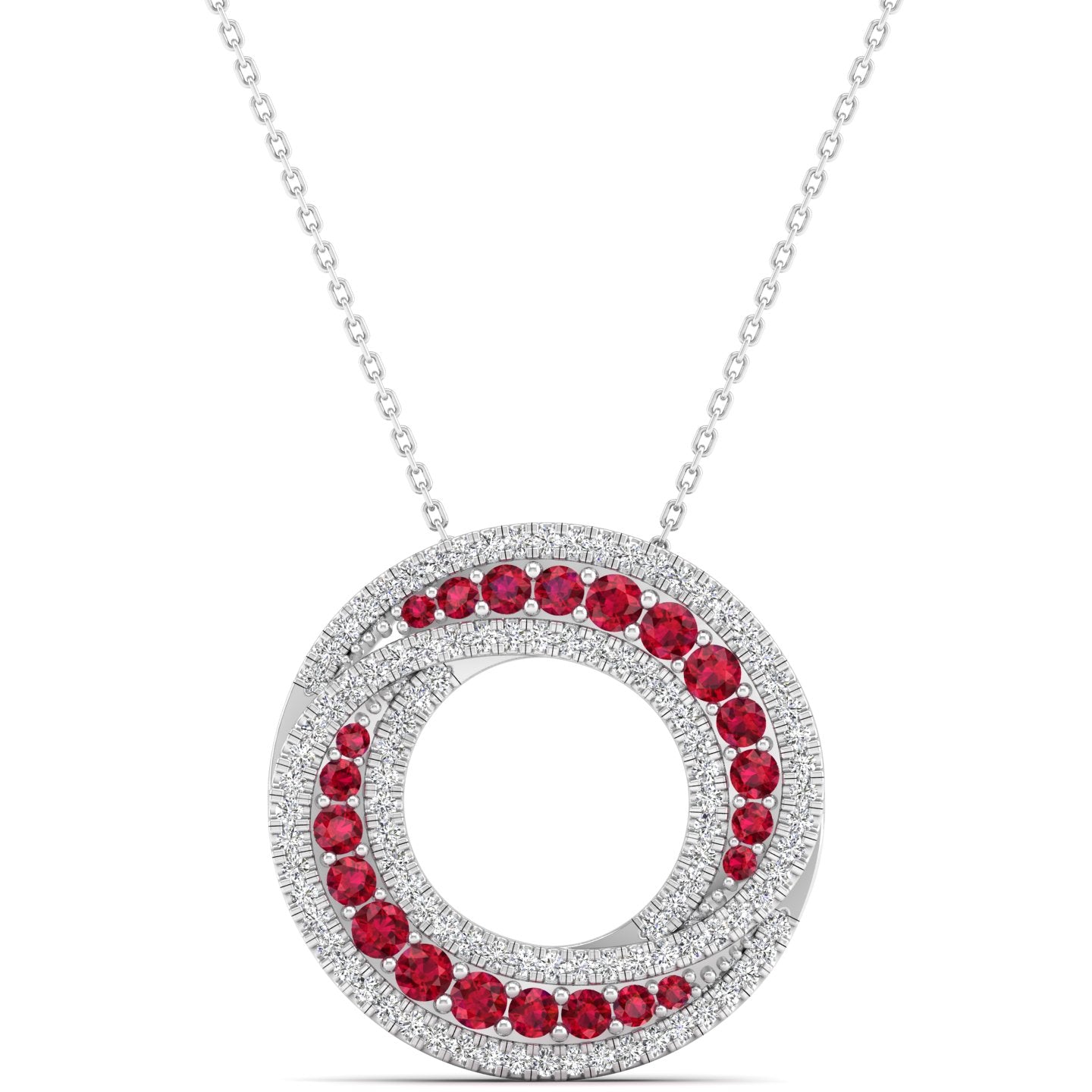 Expertly designed and crafted, our Swirl Halo Ruby and Diamond Pendant showcases a stunning mix of elegance and brilliance. This pendant features a swirling halo of diamonds surrounding a vibrant ruby, creating a look that is both captivating and luxurious.