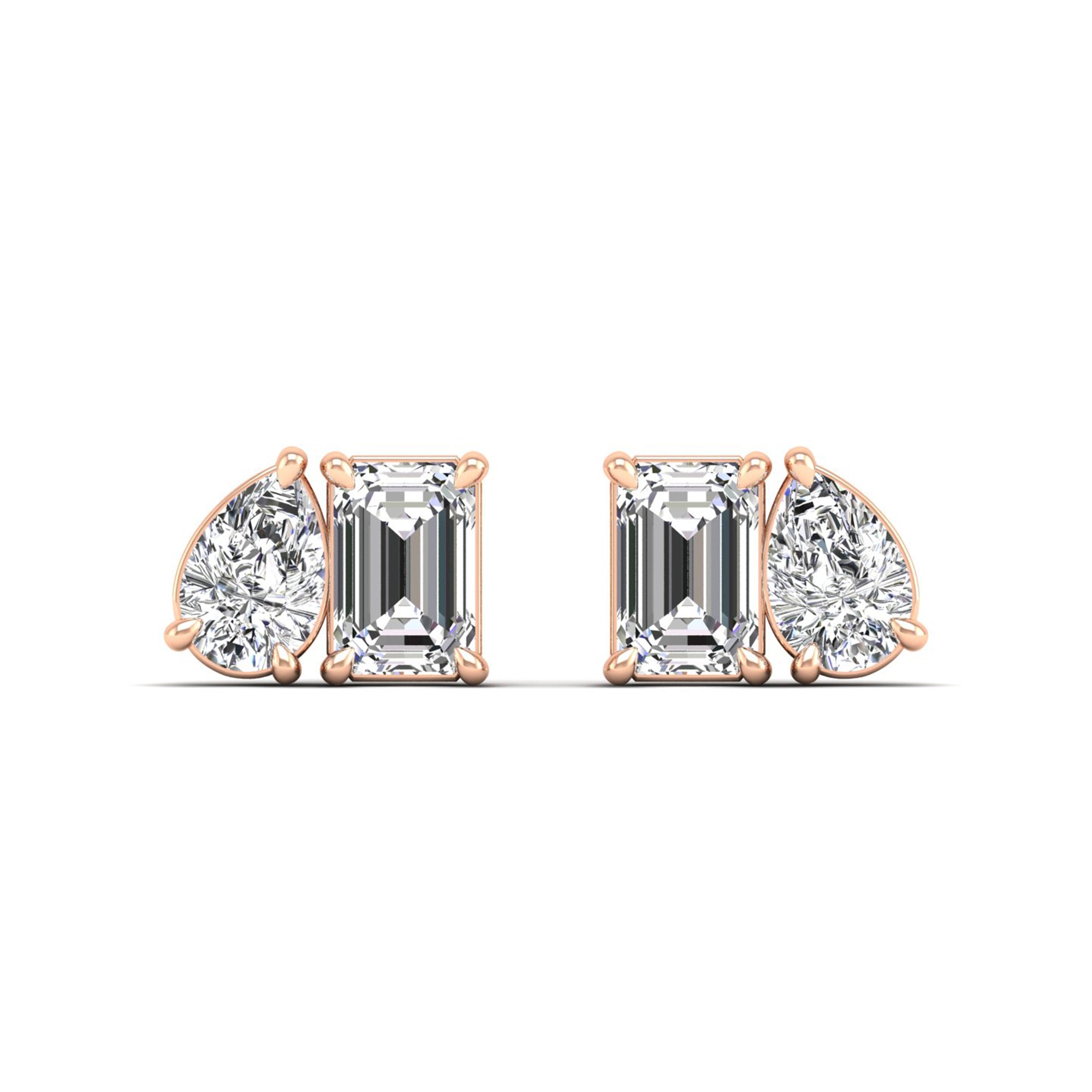 Introducing our exquisite emerald cut and pear-shaped diamond stud earrings, a timeless addition to any jewelry collection. Crafted with precision and elegance, these earrings feature emerald cut with pear-shaped diamonds that are renowned for their unique shape and exceptional brilliance.