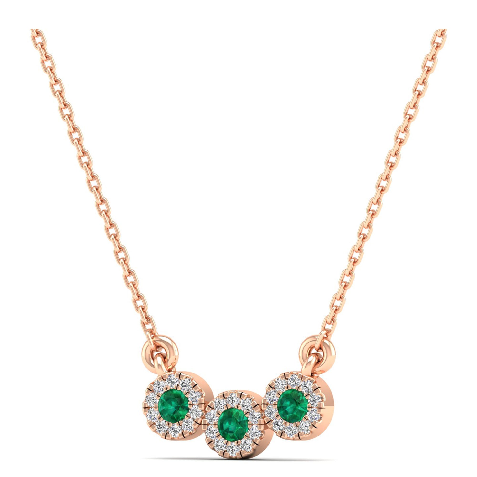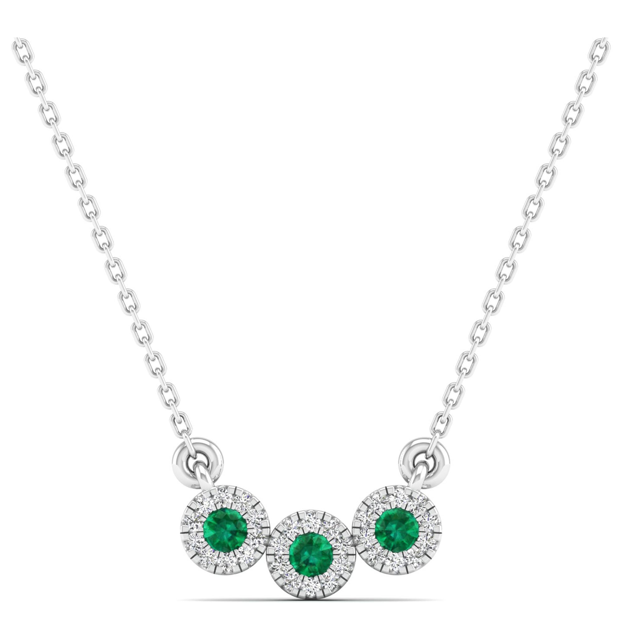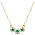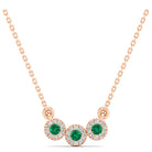 Trio Emerald and Diamond Halo Necklace