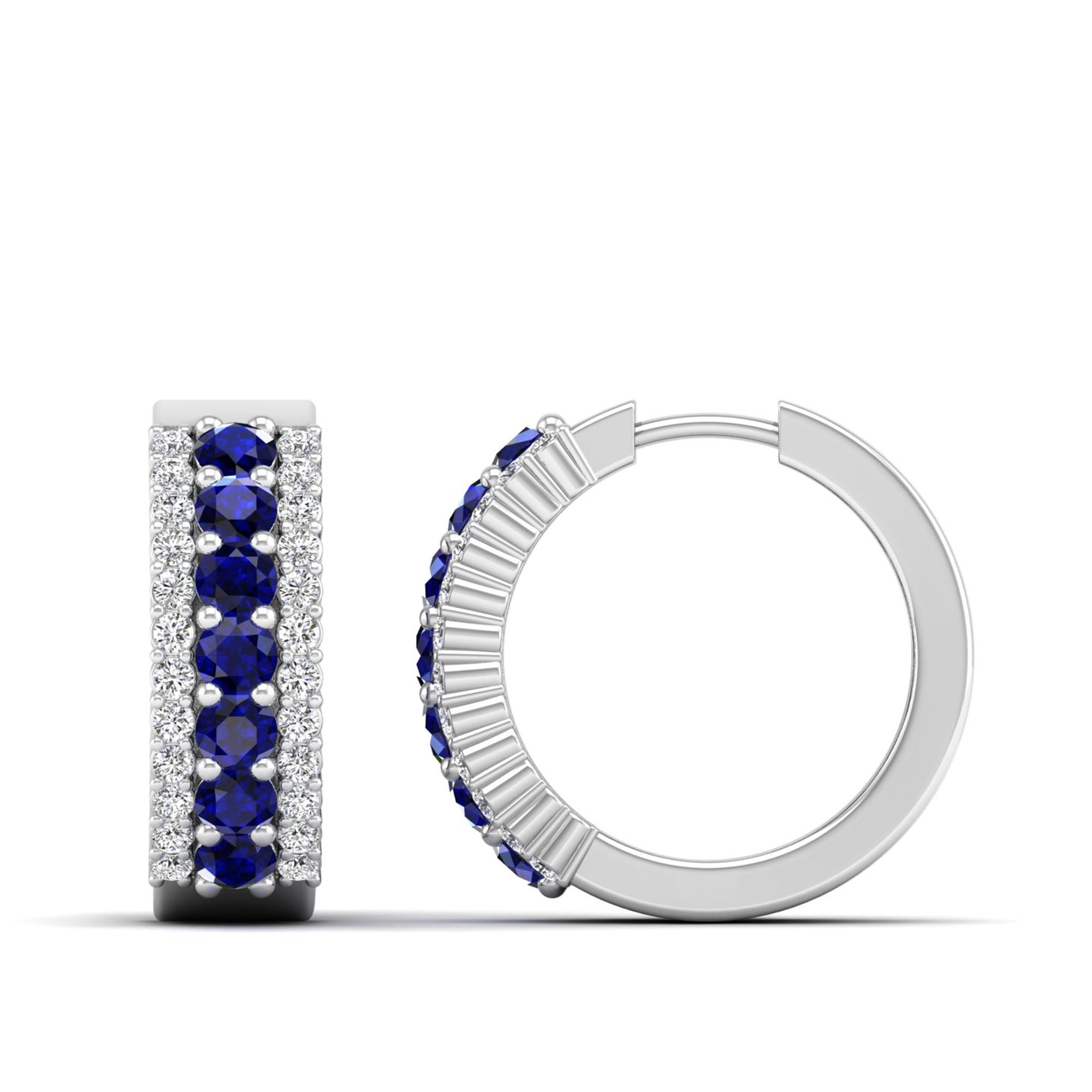 Introducing our Tripple Row Sapphire and Diamond Hoops - a stunning combination of elegant sapphire and sparkling diamonds.